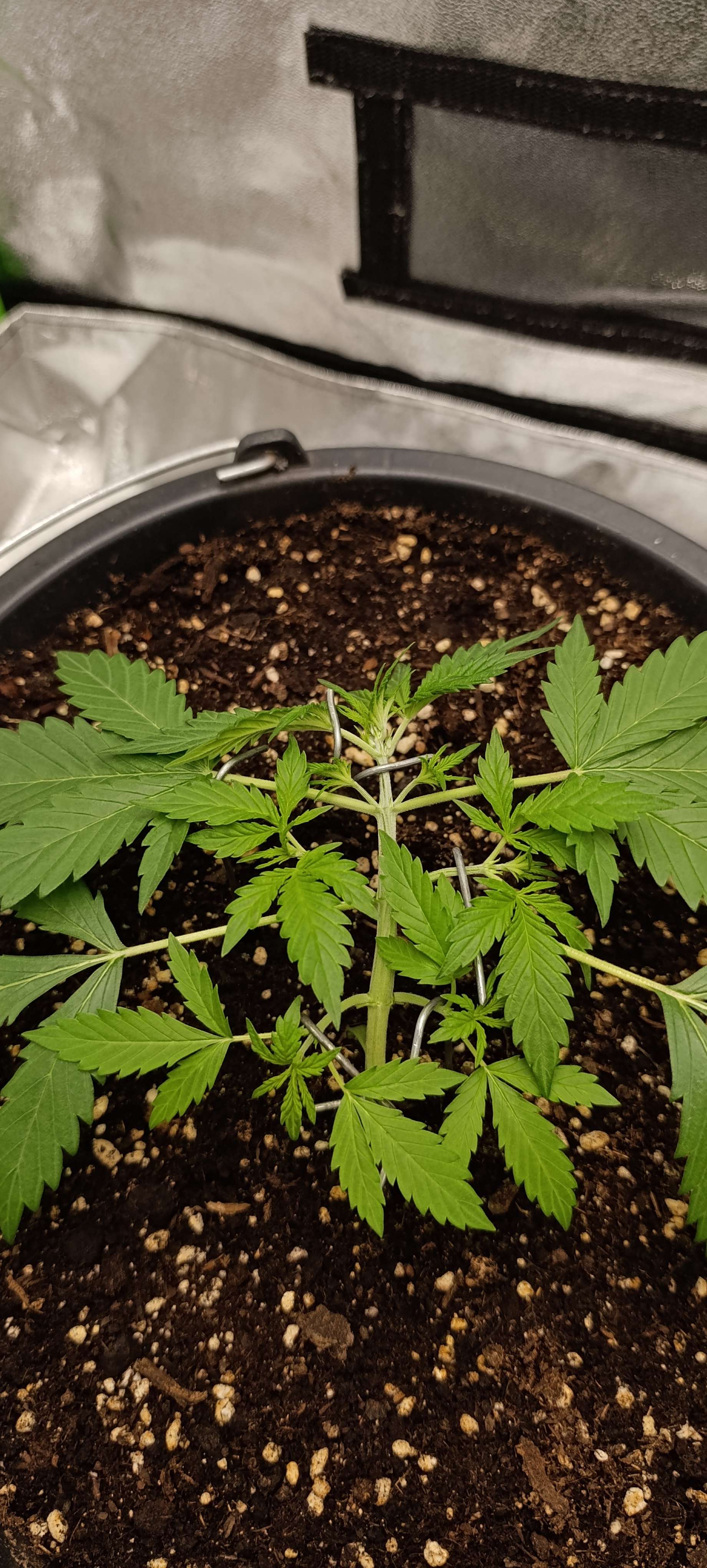 Неделя началась с небольших тренировок. Решили не тянуть т.к. стебель начинает крепнуть и набирает упругость. Свет 20 000 LUX.
