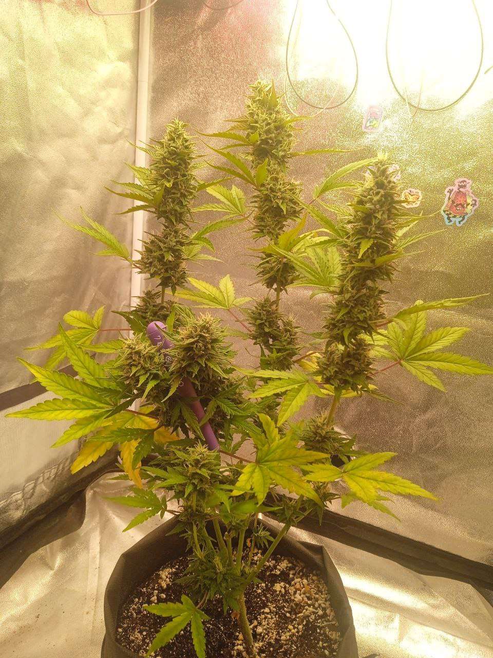 На девятой неделе колы всех кустов (кроме третьего - ещё не оправился от стресса) начали бухнуть прямо на глазах - видно растихам понравился прикорм. Даже танджи, которая стояла скромная в углу внезапно дала напомнить о себе плотными бутонами и вытягиванием вверх. В целом растения чувствуют себя хорошо, жара прошла, теперь осень - можно держать температуру в комфортном режиме. Главная потенциальная проблема теперь - это плесень. Осушителя нет, надо придумать вариант на коленке, если планирую 3 куста довести до нормального харва. Куст под номером 4 будет захарвлен через 2-3 недели для заполнения ожидания до харвеста. Попутно уже была снята проба и по эффекту хорошая успокаивающая индика. Покататься на коврике, размять кости, порисовать картину, поесть - это всё про карамель. Хороший эффект для вечернего покура.