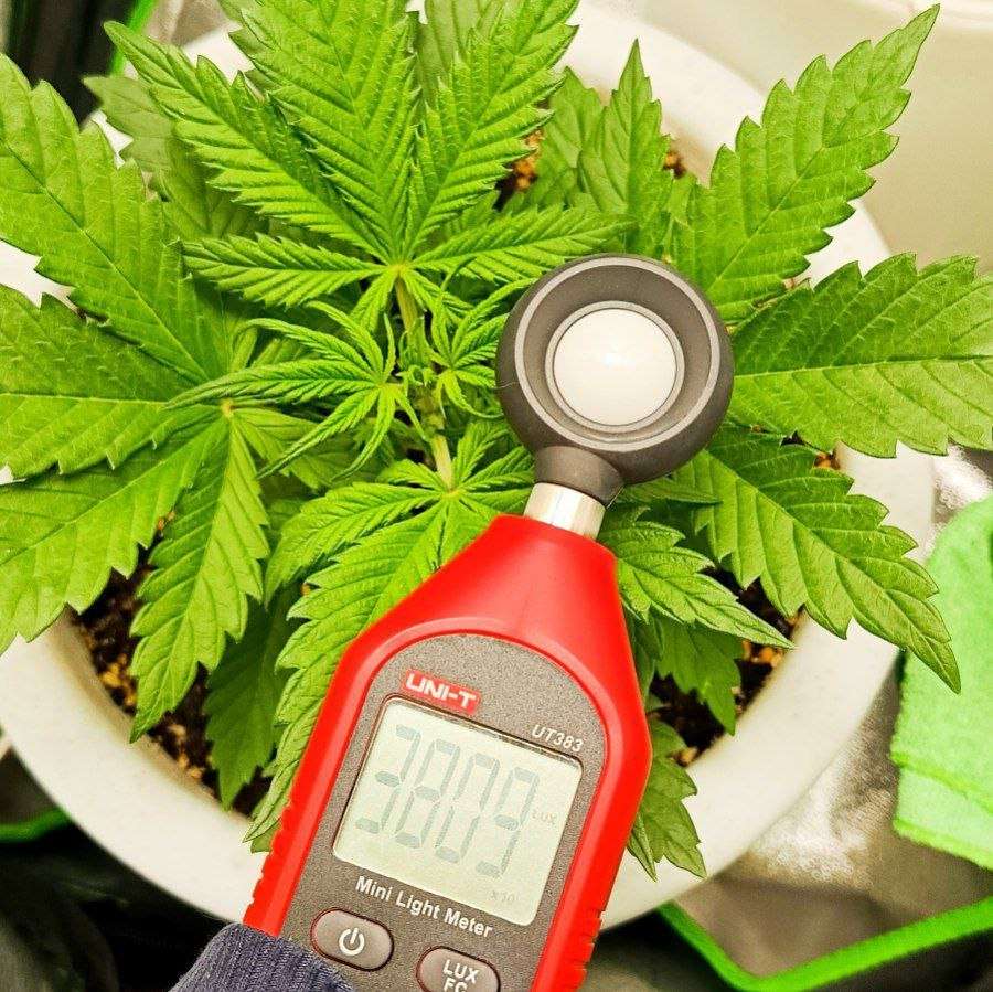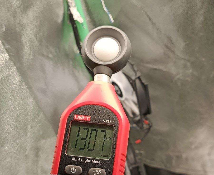 Добавлю фото показателей люксов у макушки куста и прям почти под лампой, пусть будет.