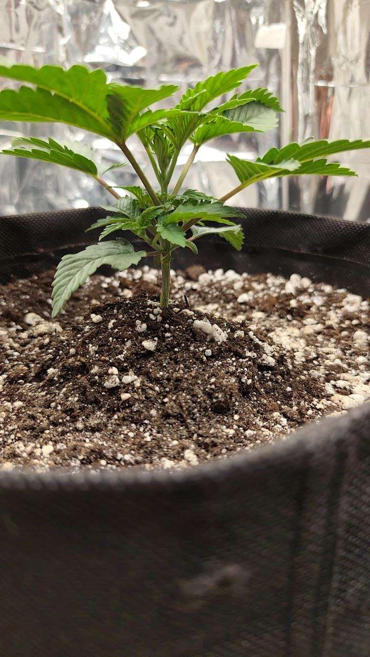 пересадил в 15л мешки, всё прошло отлично, поливаю по 250мл по краям и 20 под ростихи.