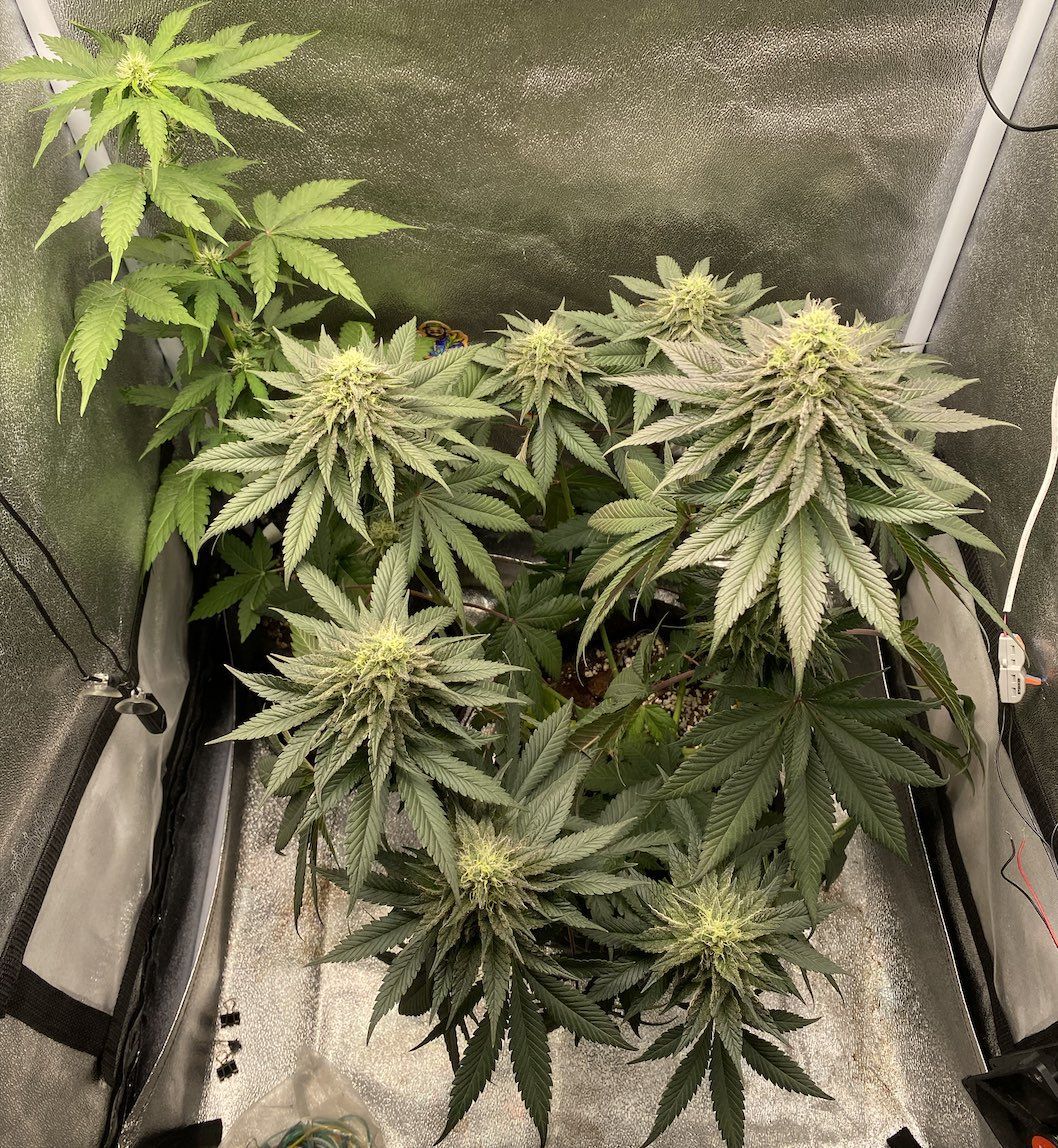 Хоть и не планировал, но добавил 60вт света (минифермер 1,6u), досветив тем самым шишки пониже. теперь у них 40-50к lux, у центральной 65к lux.