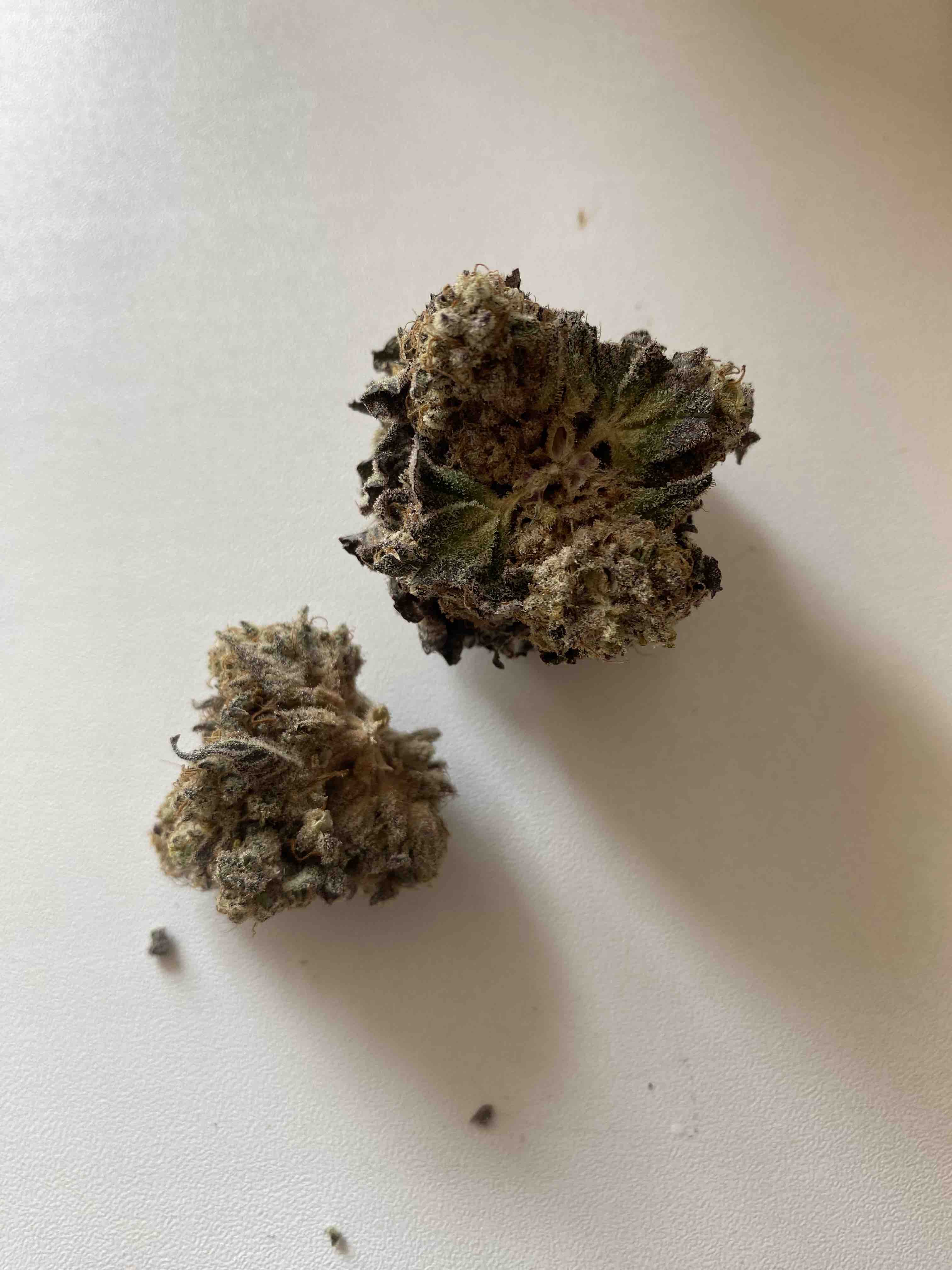 Текстура шишки сильно отличается. Стаф при измельчении получается рассыпчатым и не склеивается в один комок.