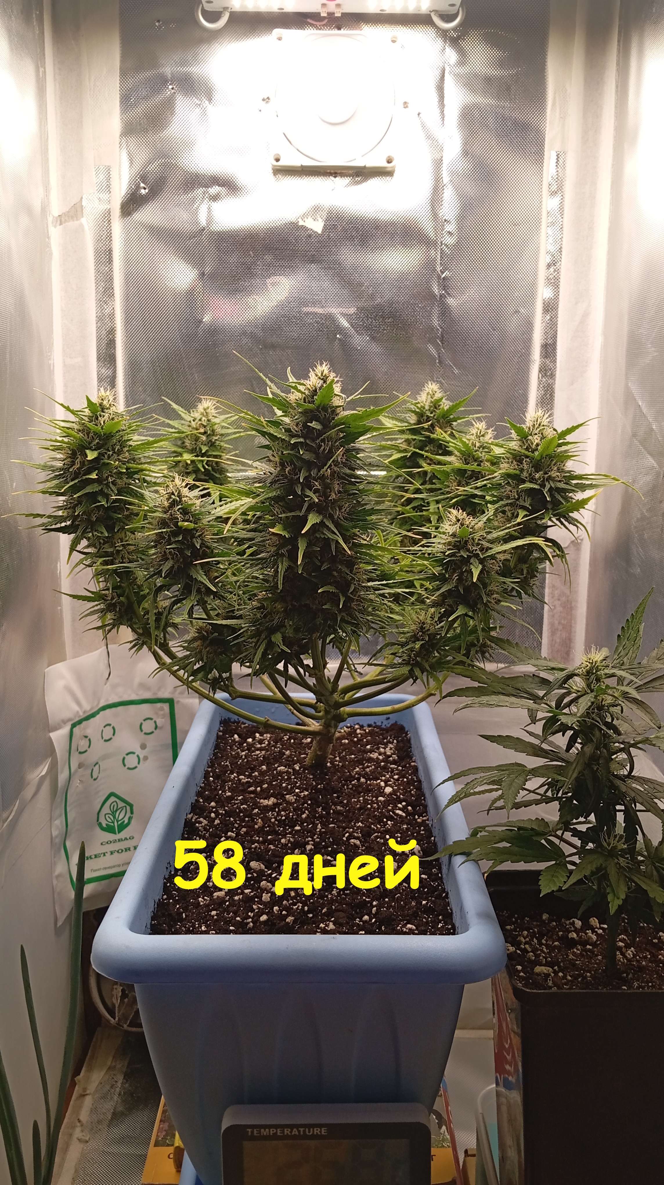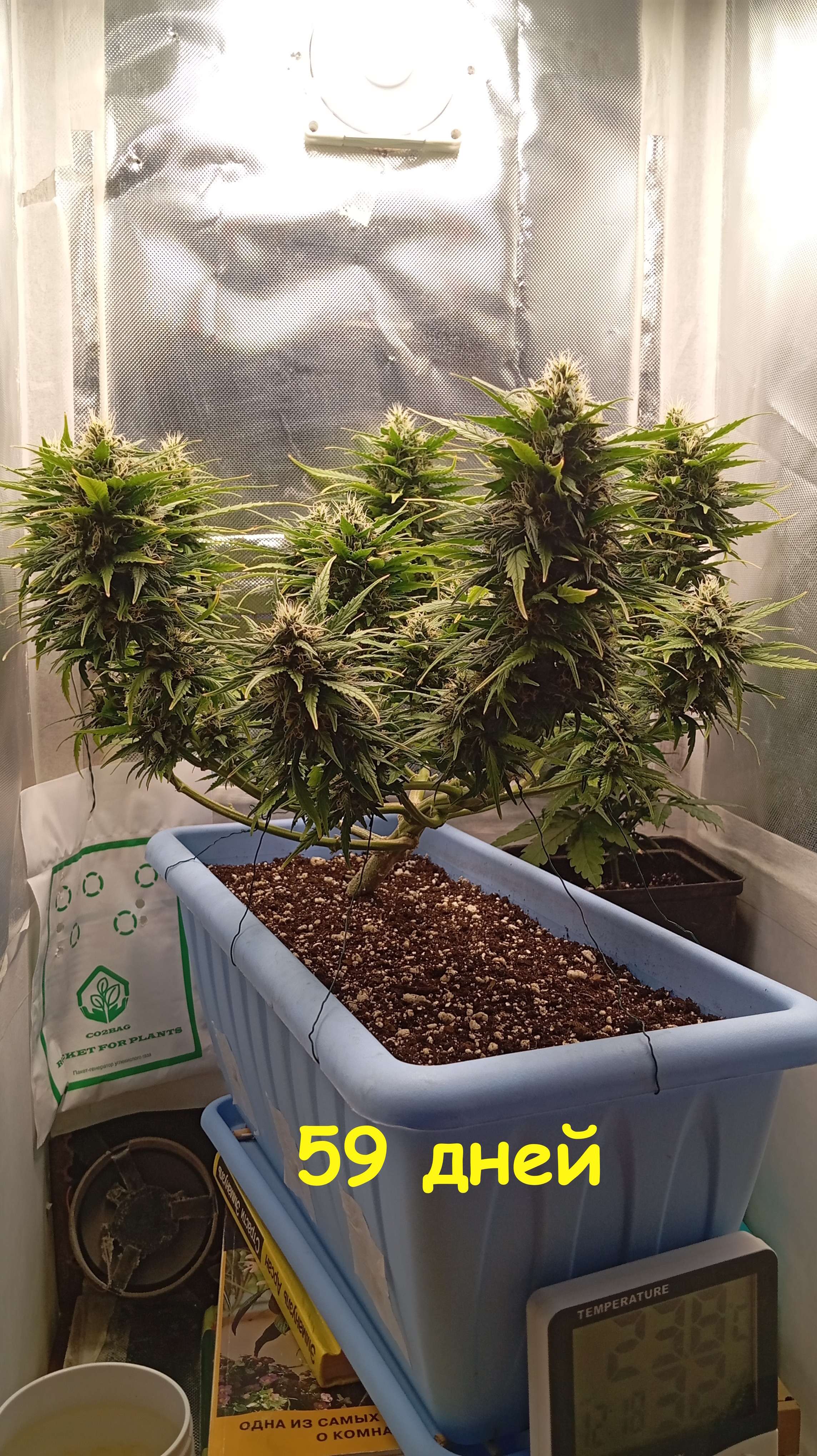 На этой неделе стриг мелкие отводки с основных кол по низам. так называемый лоллипоп. Так же практически ежедневно убираю листву, в дни поливов больше, в обычные дни - меньше. На этой прошедшей неделе было подряд 2 полива с удобрениями - 1 литр в дозировке 9 недели Биобизз. (58 и 61 дни.)