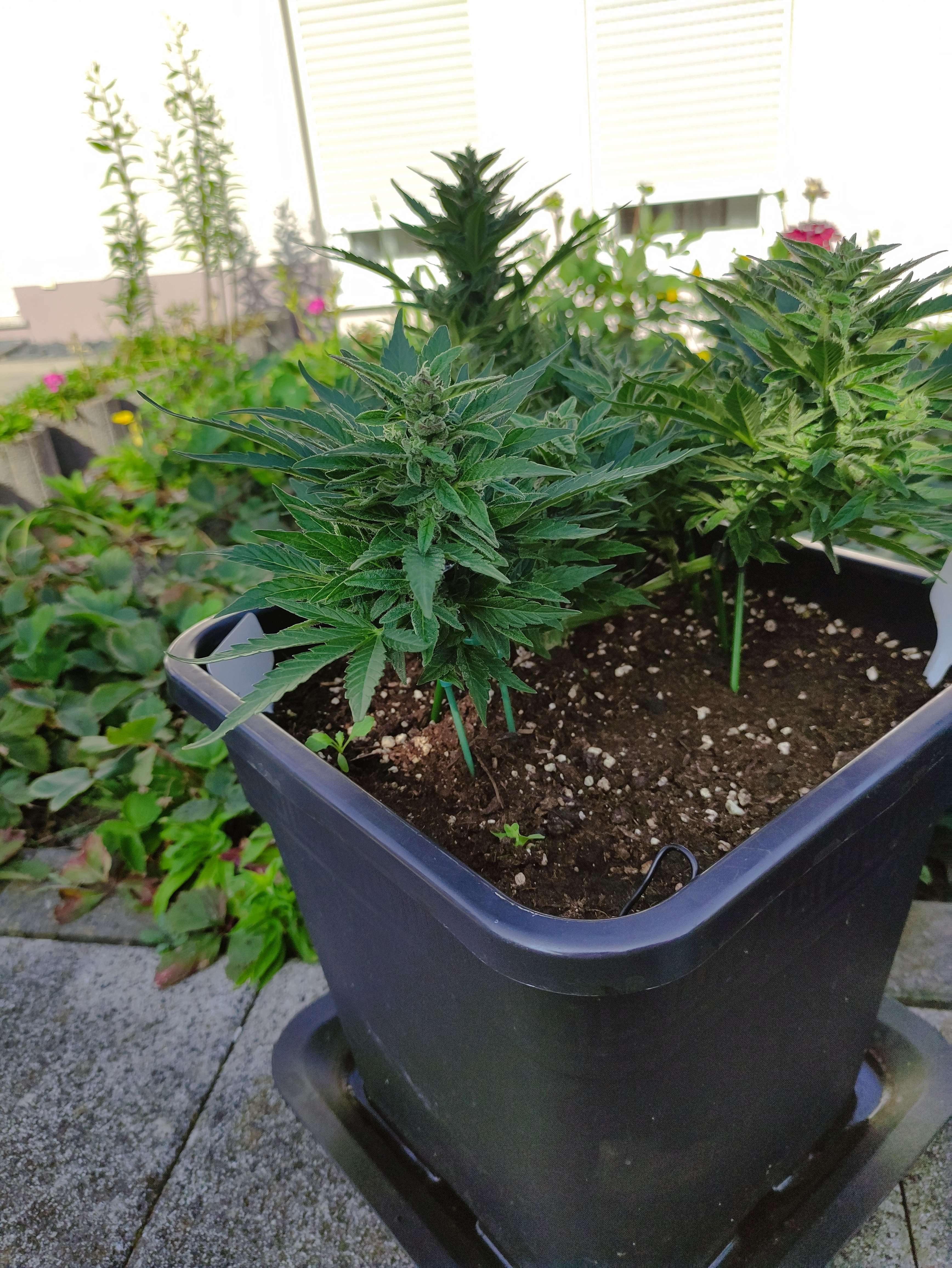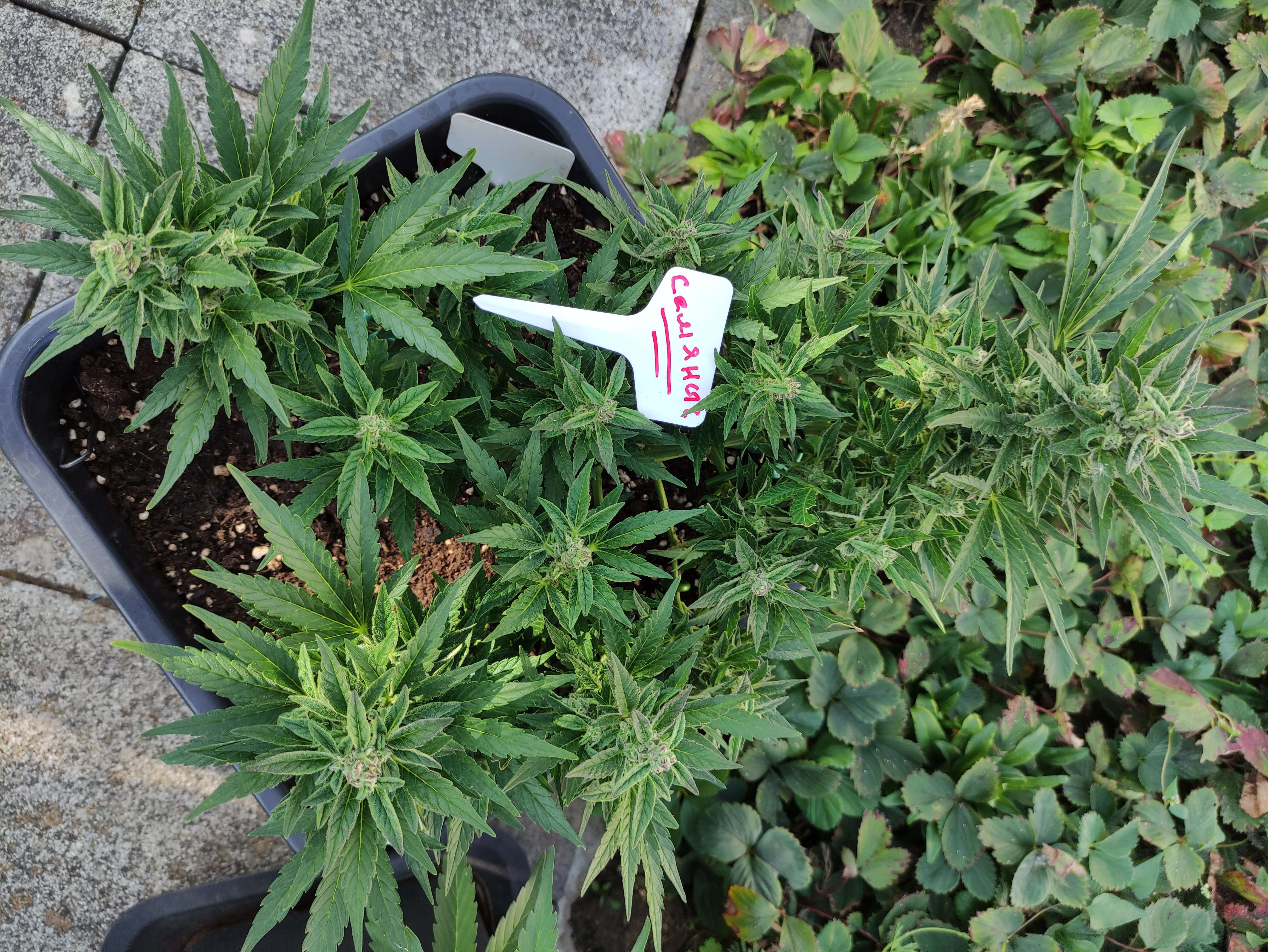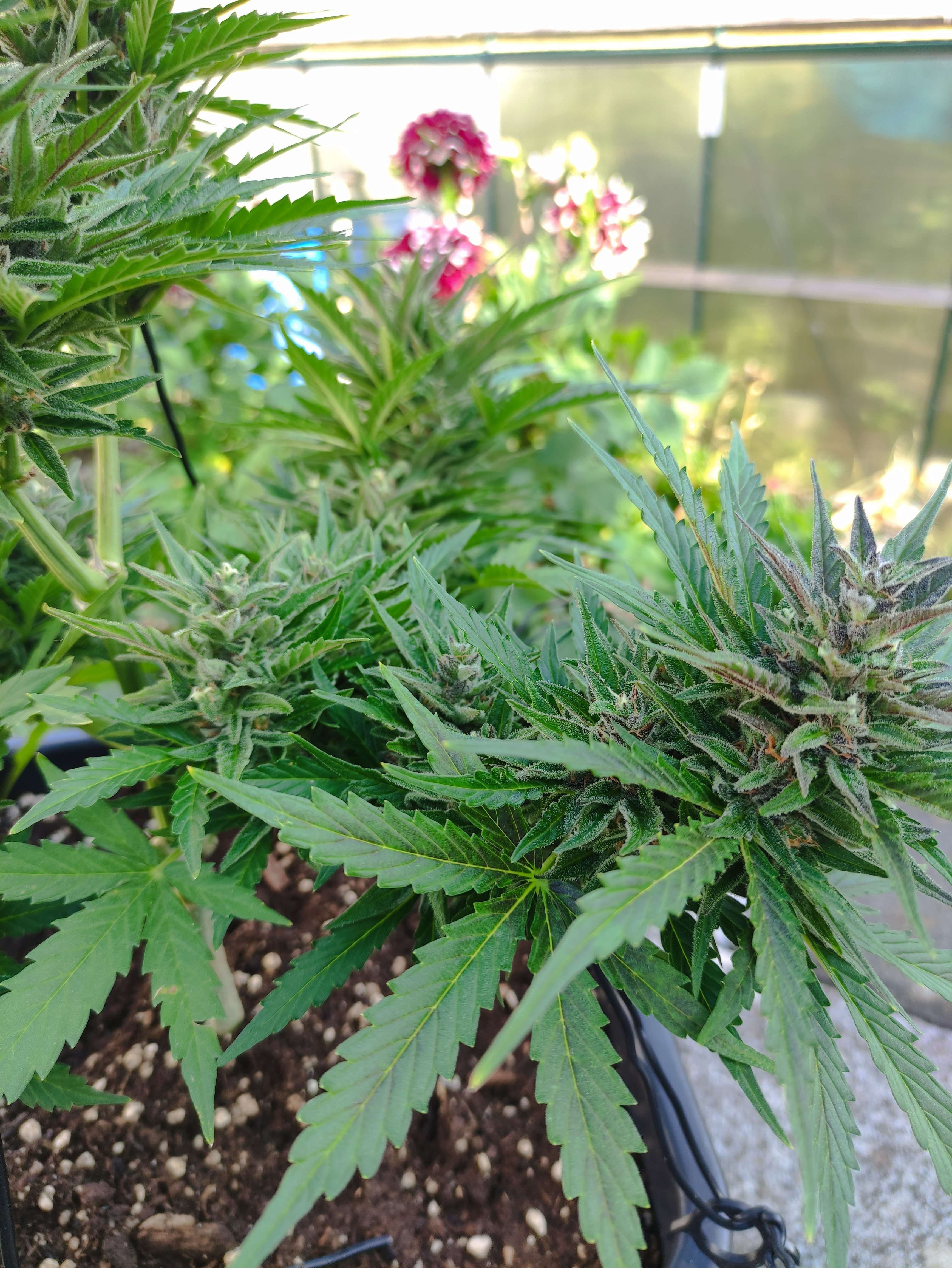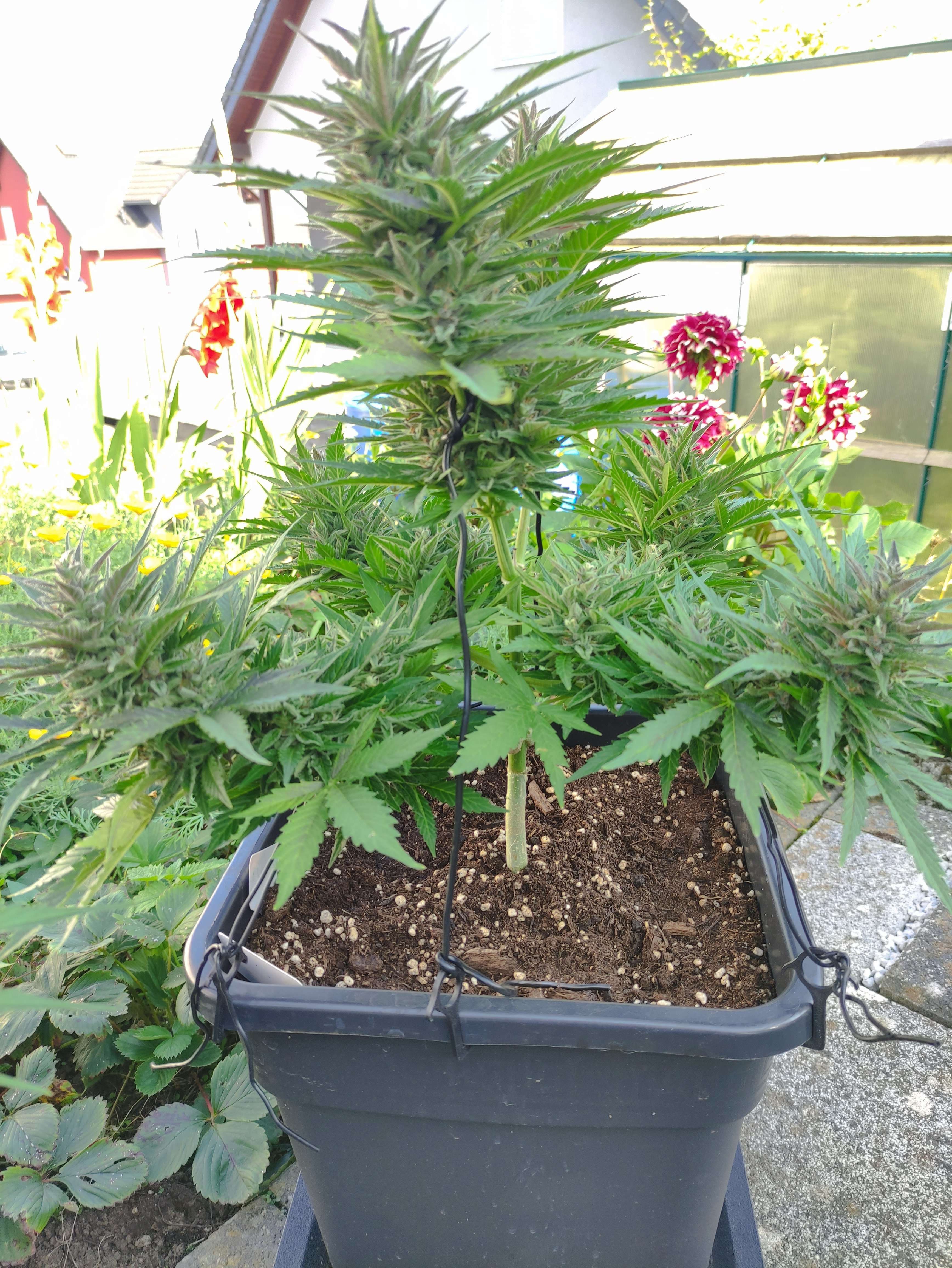 Попкорн уже и попкорном назвать нельзя — развиваются полноценные шишки, куст уверенно заливается смолой. LST отработан, макушки равномерно в свету. Листва здоровая, цвет ровный, без признаков дефицитов.