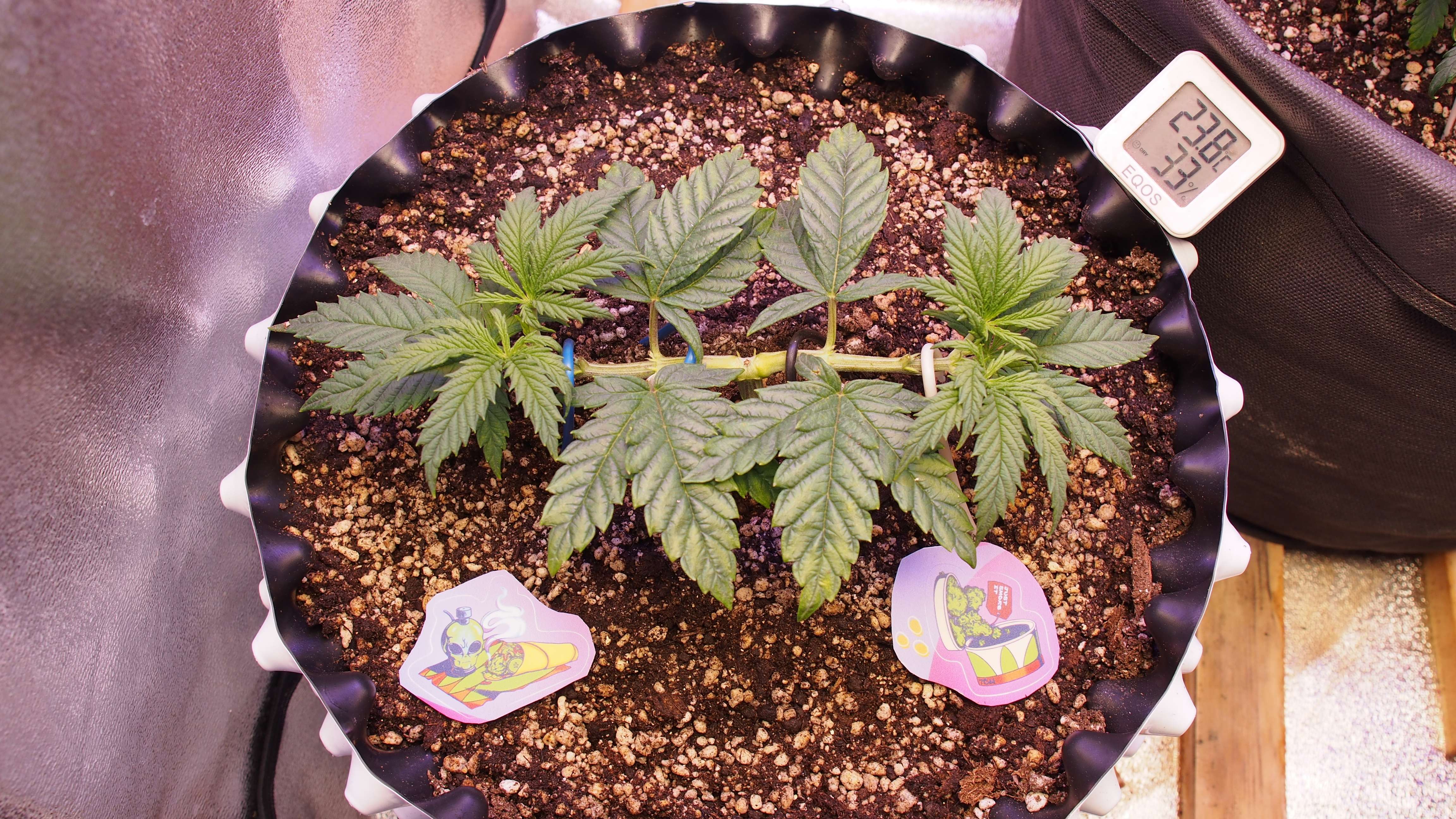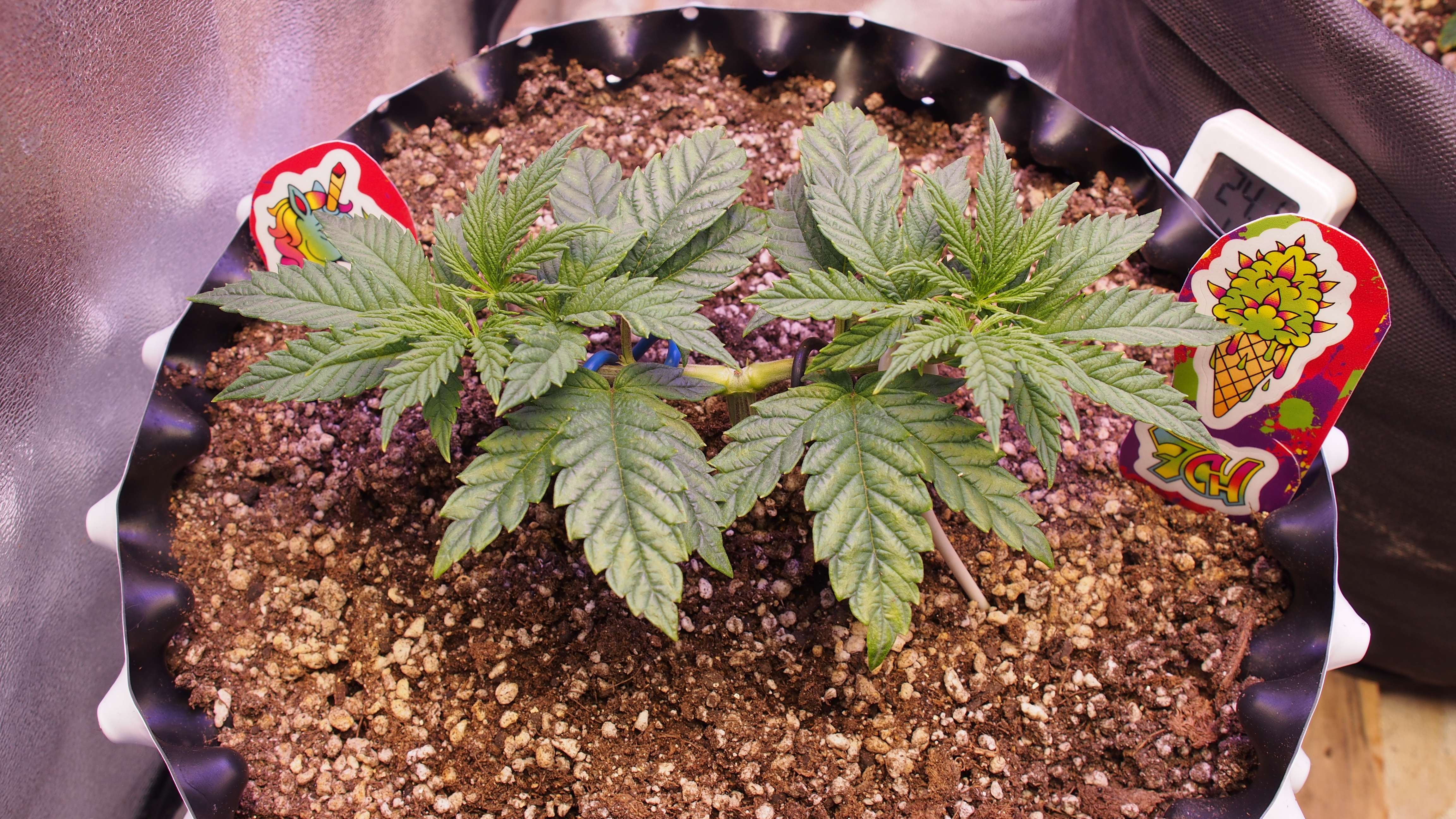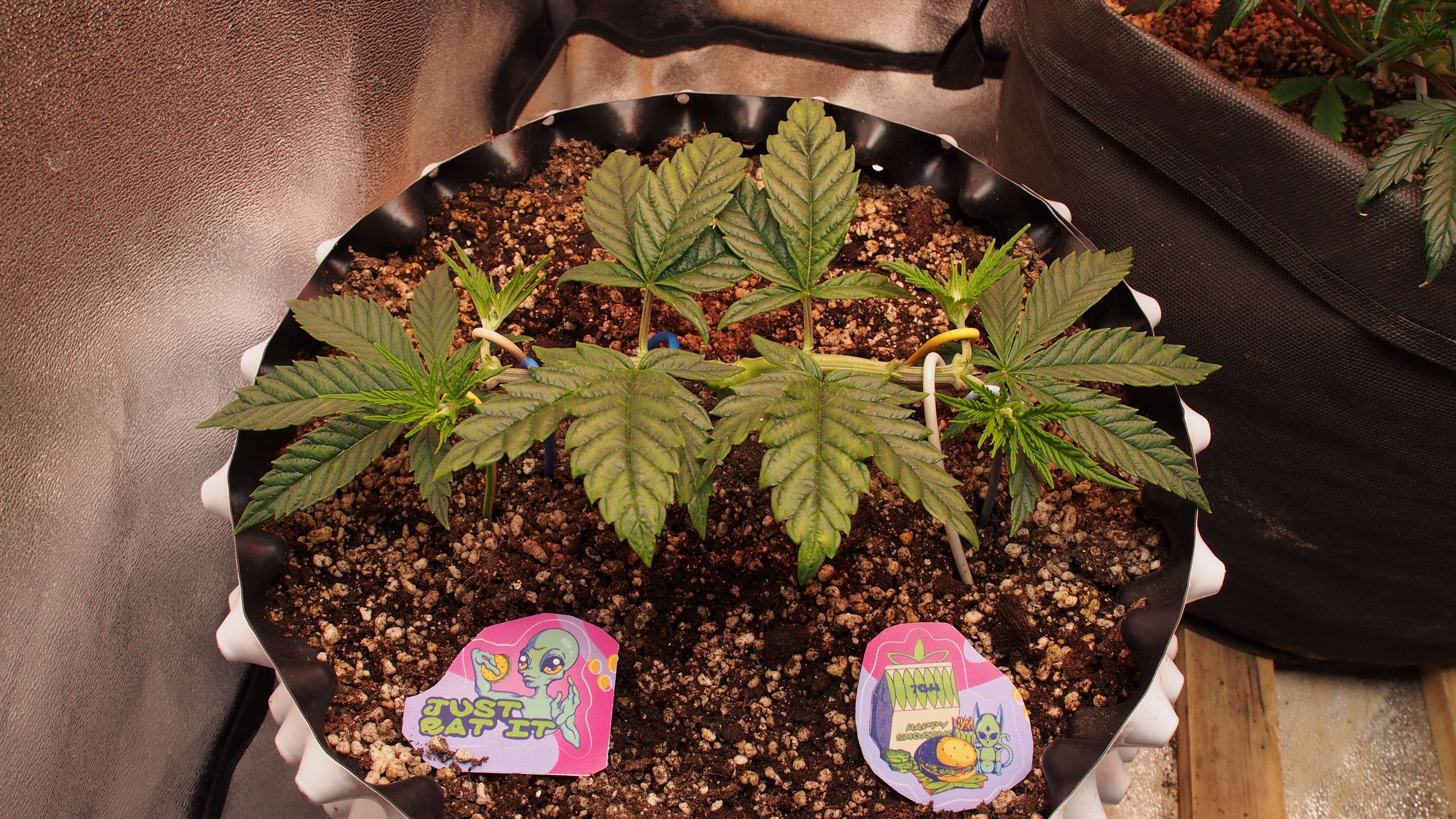 P.S. Сразу отвечу на вопрос: зачем оставлены листья в центре? Сейчас они не мешают и выполняют роль фотосинтезирующих панелей. Стресс с ними поменьше у растишки после постоянных топингов. Позднее всё удалится.