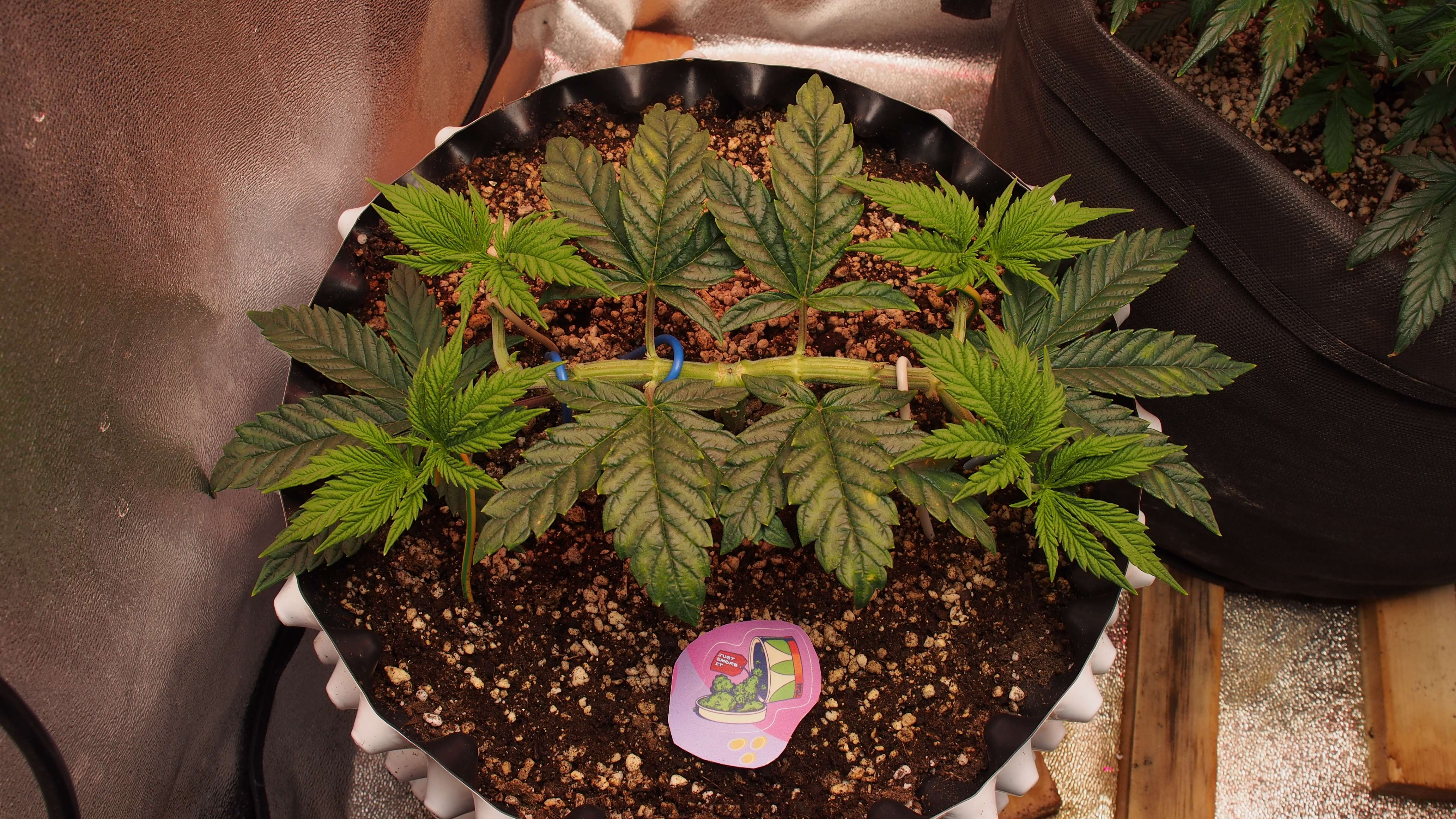 Полив идёт 1,5-2.0 литра через 2-3 дня. Каждый раз с удобрениями. Использую фактически весь свой арсенал стимуляторов для веги: витамины, Carboload, BudCandy, Sensyzim, ProRoot, Voodoo Juice, Fulvic.