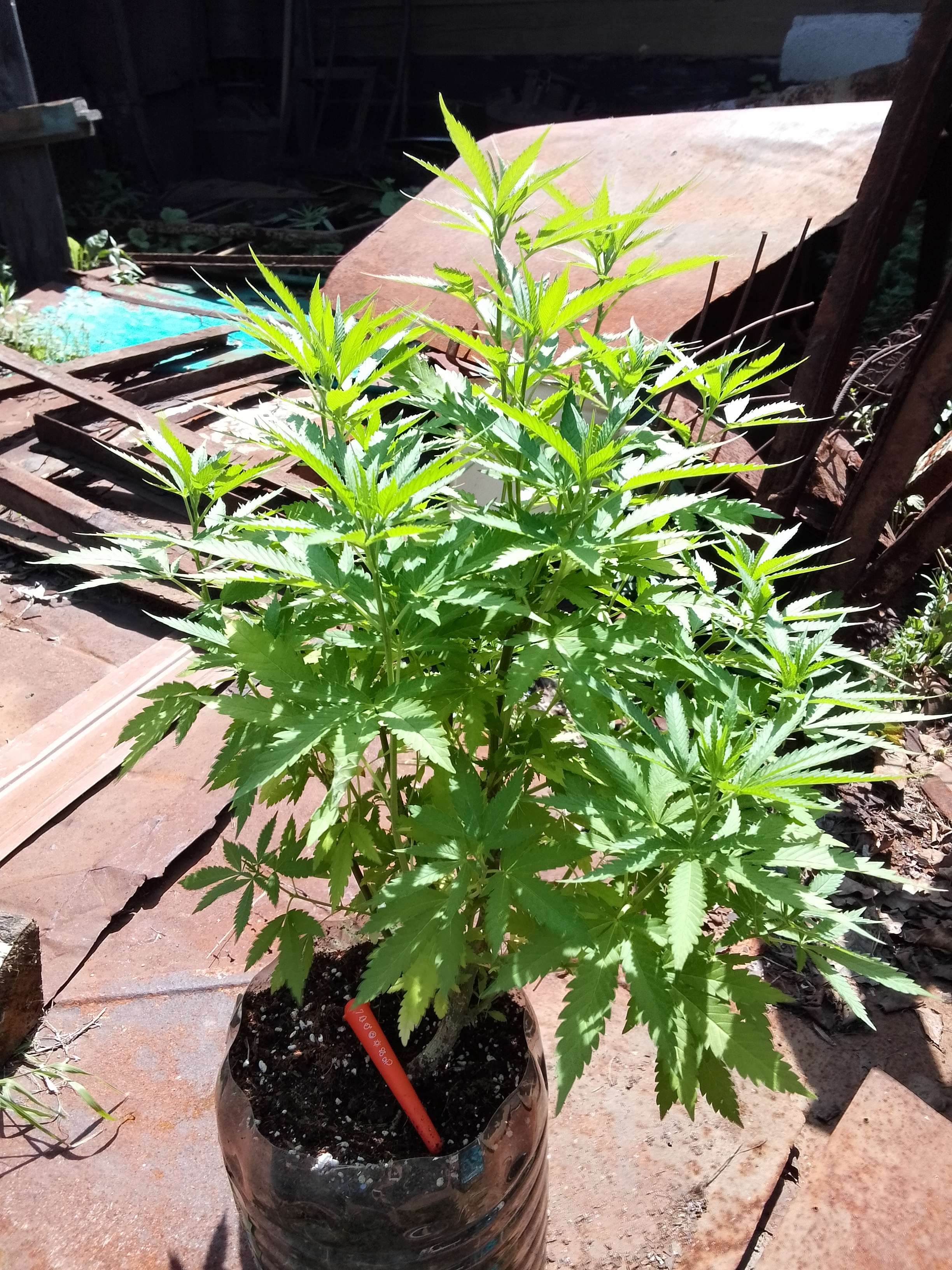 А что баклажка у тебя прозрачная? Замотай её тряпкой, грунту и корням полегче буде.