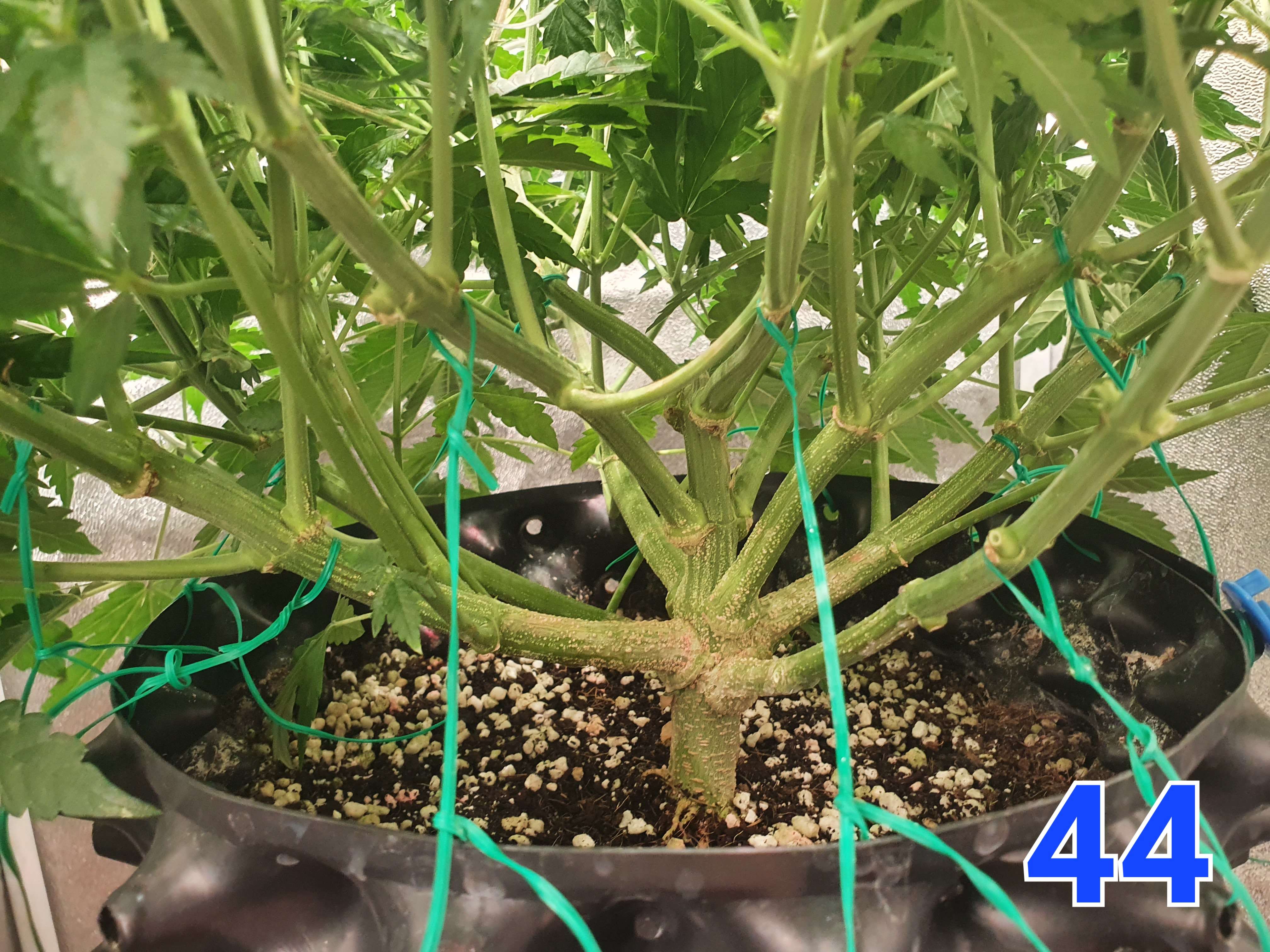 На 45й день ещё оборвал листвы и слабые колы. Пока остановлюсь, пусть куст полноценно зацветет, там уже сделаю финальную легкую дефолиацию.