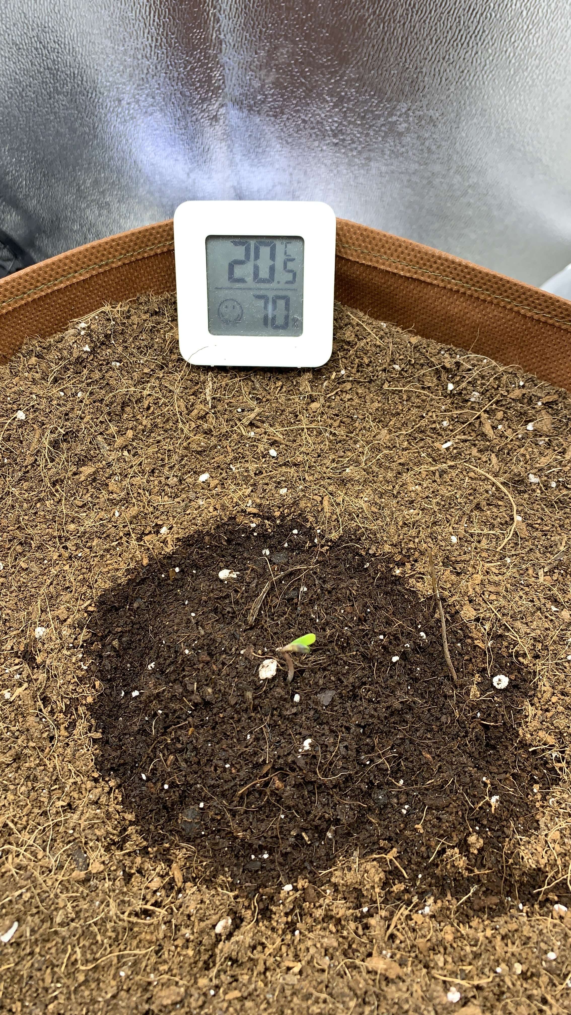 пшикнул грунт и накрывашку включил лампу, температура 22 градуса, влажность 75. В течении дня пшикал накрывашку несколько раз, грунт вокруг растишки влажный.