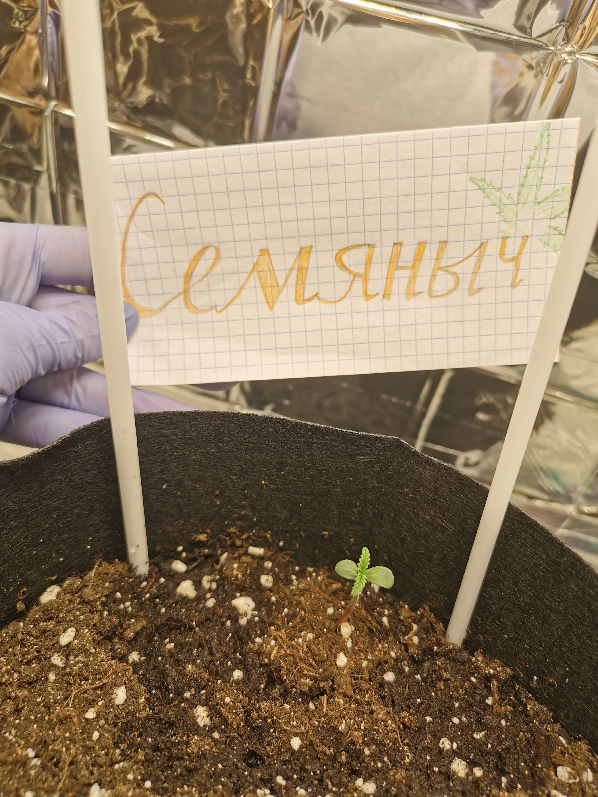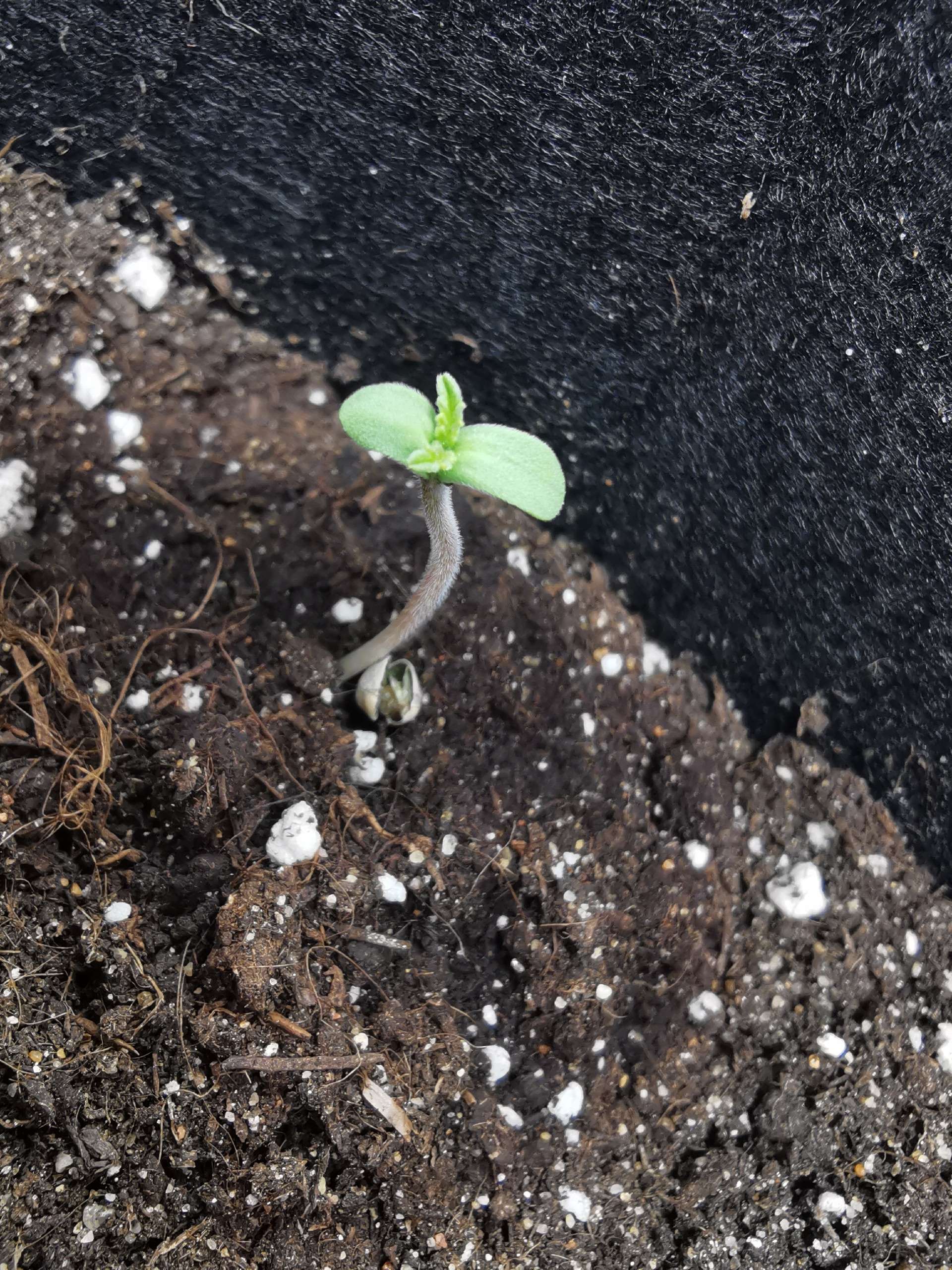 Итак, 5.10 малышка появилась на свет, скинув каску. Пшыкала из пульвика обычной водой с ровным пш. Вечером второго дня пролила 200мл вокруг малышки. Сегодня - Завтра подсыплю землю под семядоли. Думаю, по расположению растения в горшке понятно, что планируется лст. В первую очередь, чтобы уместить ее в невысокий бокс, во вторую очередь, чтобы угостить светом все колы почти в равной степени.