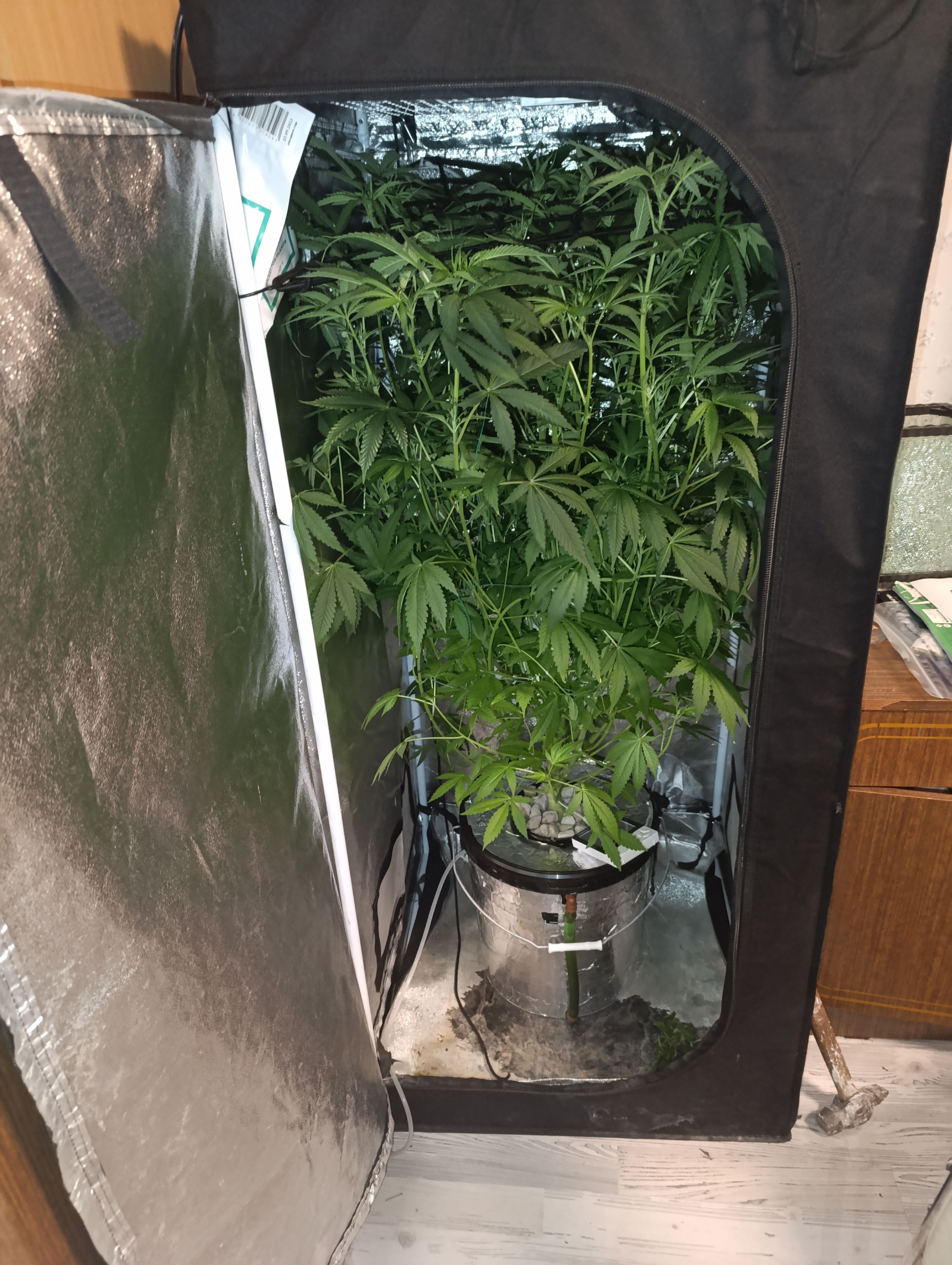 Растиха поперла слишком сильно, в день прибавляет по 5 см. Реальный рост не знаю, так как очень сильно подгибаю сверху. Придется покупать бокс по больше. Верхние листья начали подгорать от лампы.