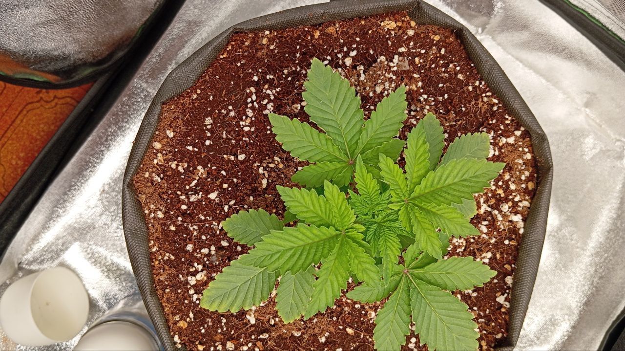 Растишка выздоровела и выглядит очень хорошо . За время ее "болезни " я ее не трогал . Под конец недели принимаю решение "настало время для тренировок" . За данный промежуток времени подросла хорошо . Первым делом делаю топпинг все что выше 3 этажа . Через пару дней боковые побеги окрепли и подросли начал их гнуть и делать мейнлинг . На следующий день удалил все первые узлы с побегов , тем самым дал больше воздушного пространства в будущем . Также были удалены все побеги которые смотрели в низ горшка ( они нам в будущем роли не сыграют , а энергию на свой рост тратить будут ).