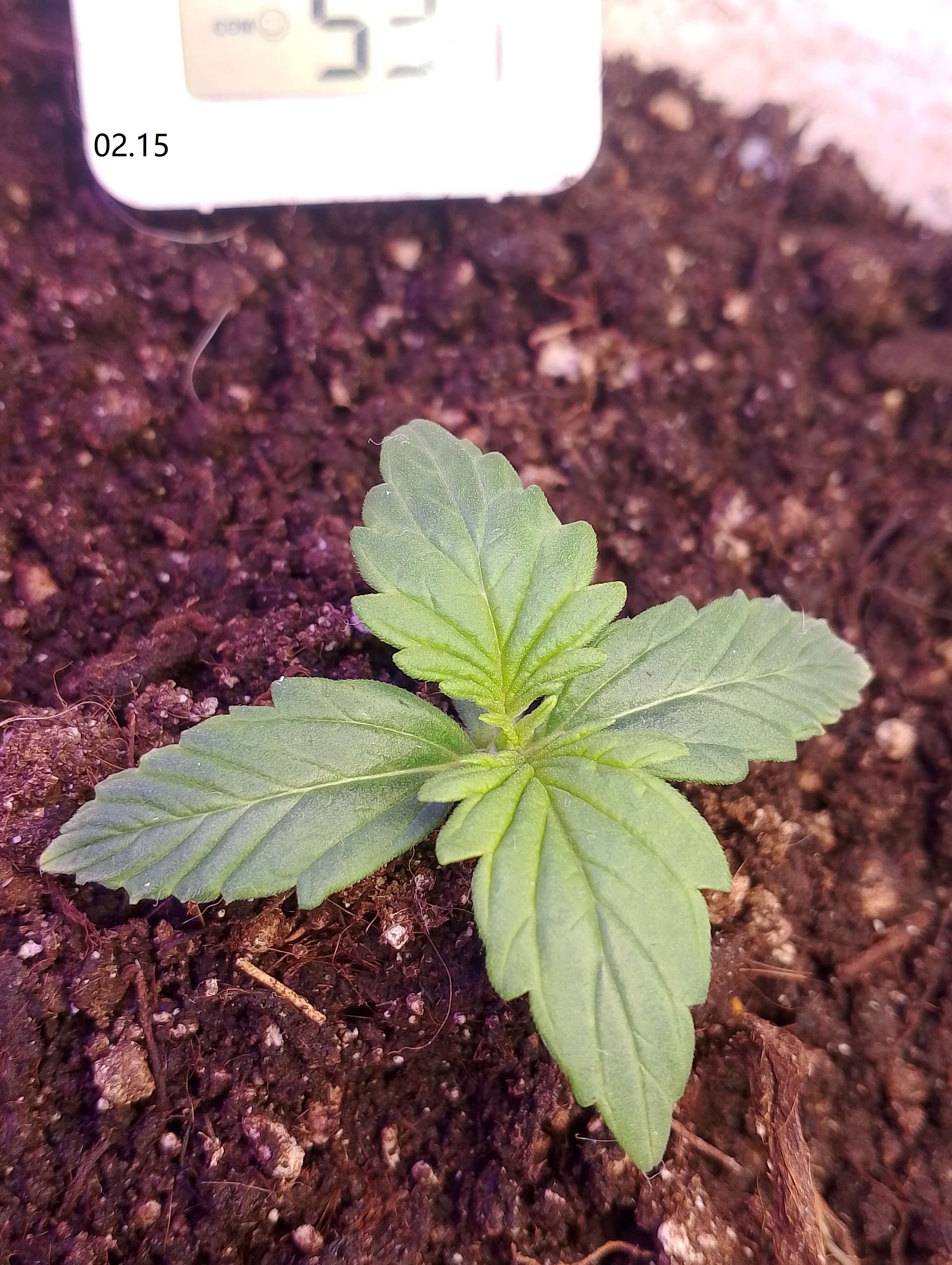 02.17 Проснулся с надеждой что куст жив, открыв коробку выдохнул...Но заметил что нижняя пара на краях слегка пожелтела, а верхняя пара по бокам пожухла. Темпа днем 26-27. В остальном без изменений.