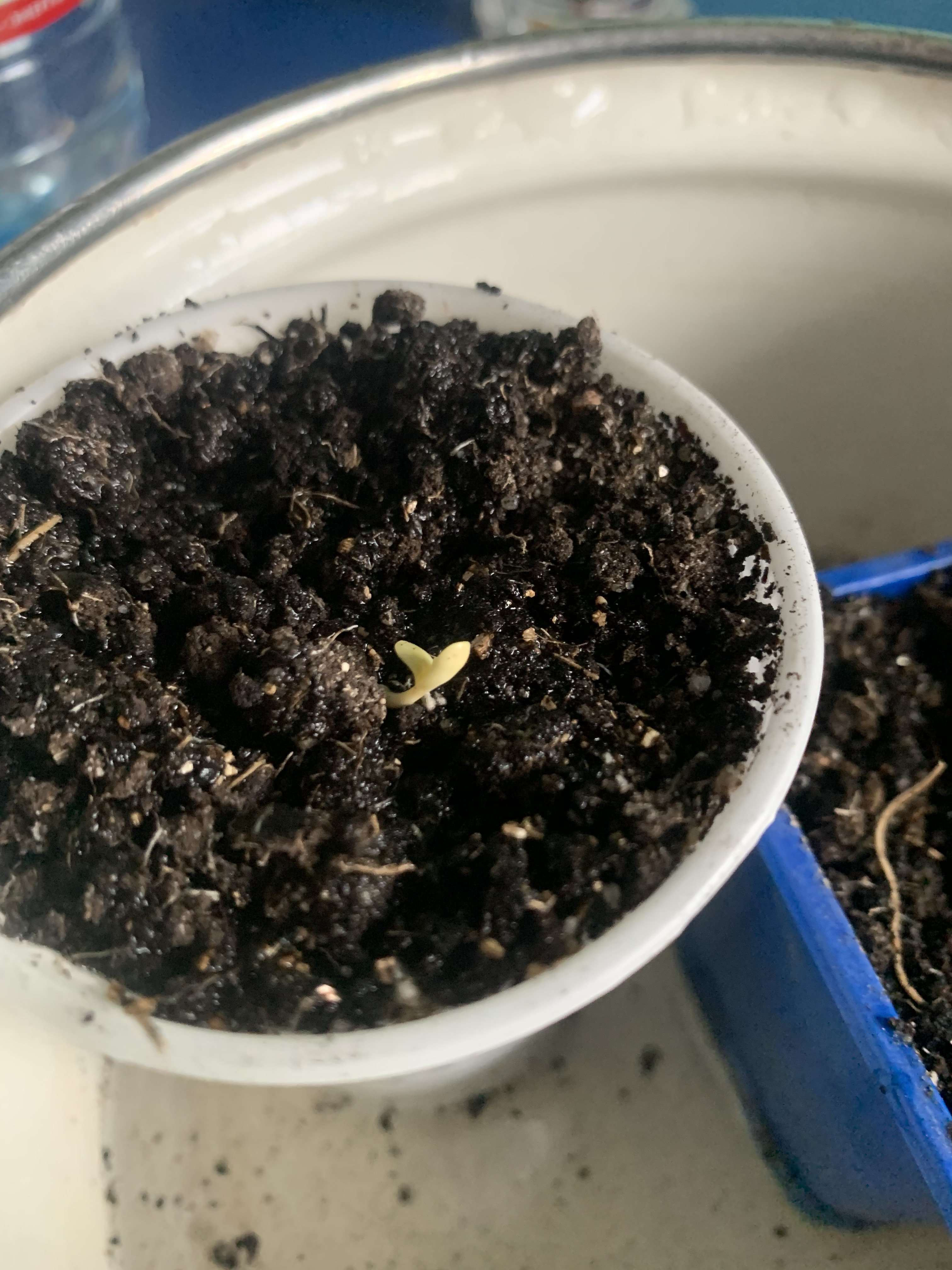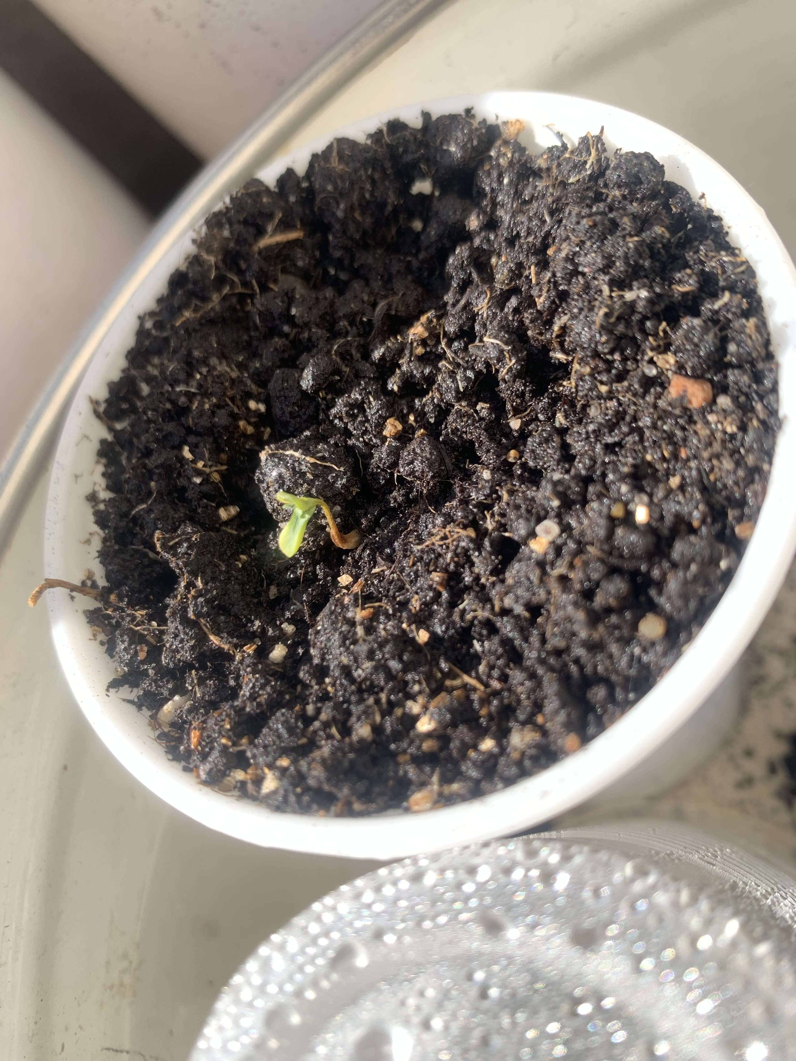 и тут после 24 часов молчания, глянула еще через 12 - а один росток 🌱 сразу в белом цвете вылез полностью (я вообще такое не люблю, доселе это не приводило к жизнеспособным растишкам)