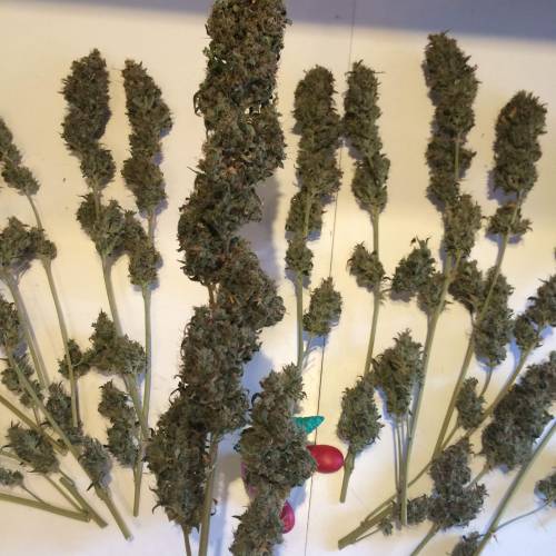 Высокий фенотип Мазара может и был не совсем удобен для выращивания в гроубоксе, но зато такой размер прямо пропорционально отразился на количестве полученного урожая. Автор репорта сушил срезанные шишки в том же гроубоксе, где они и росли. После просушки и пролечки вес соцветий составлял 78 грамм.