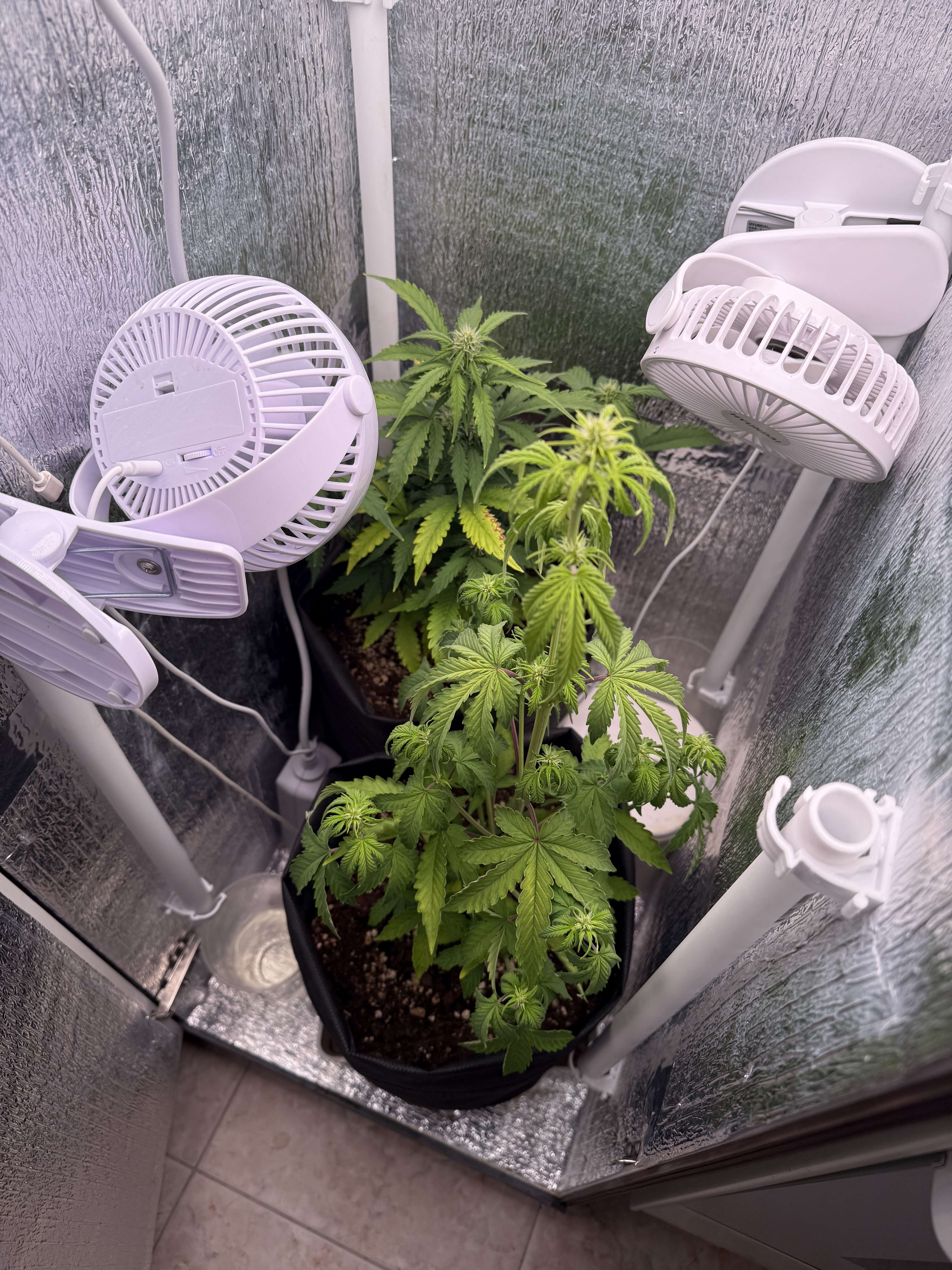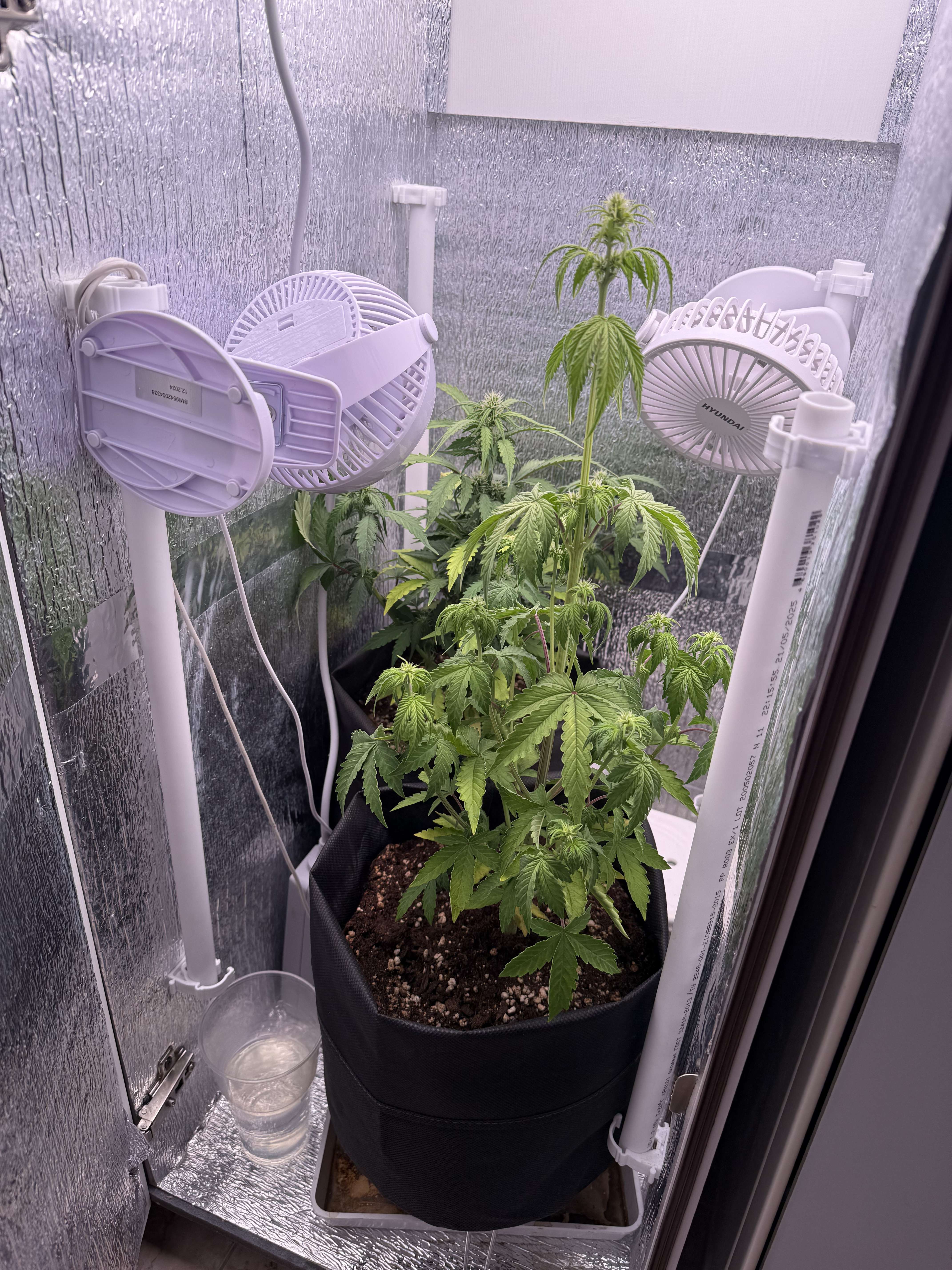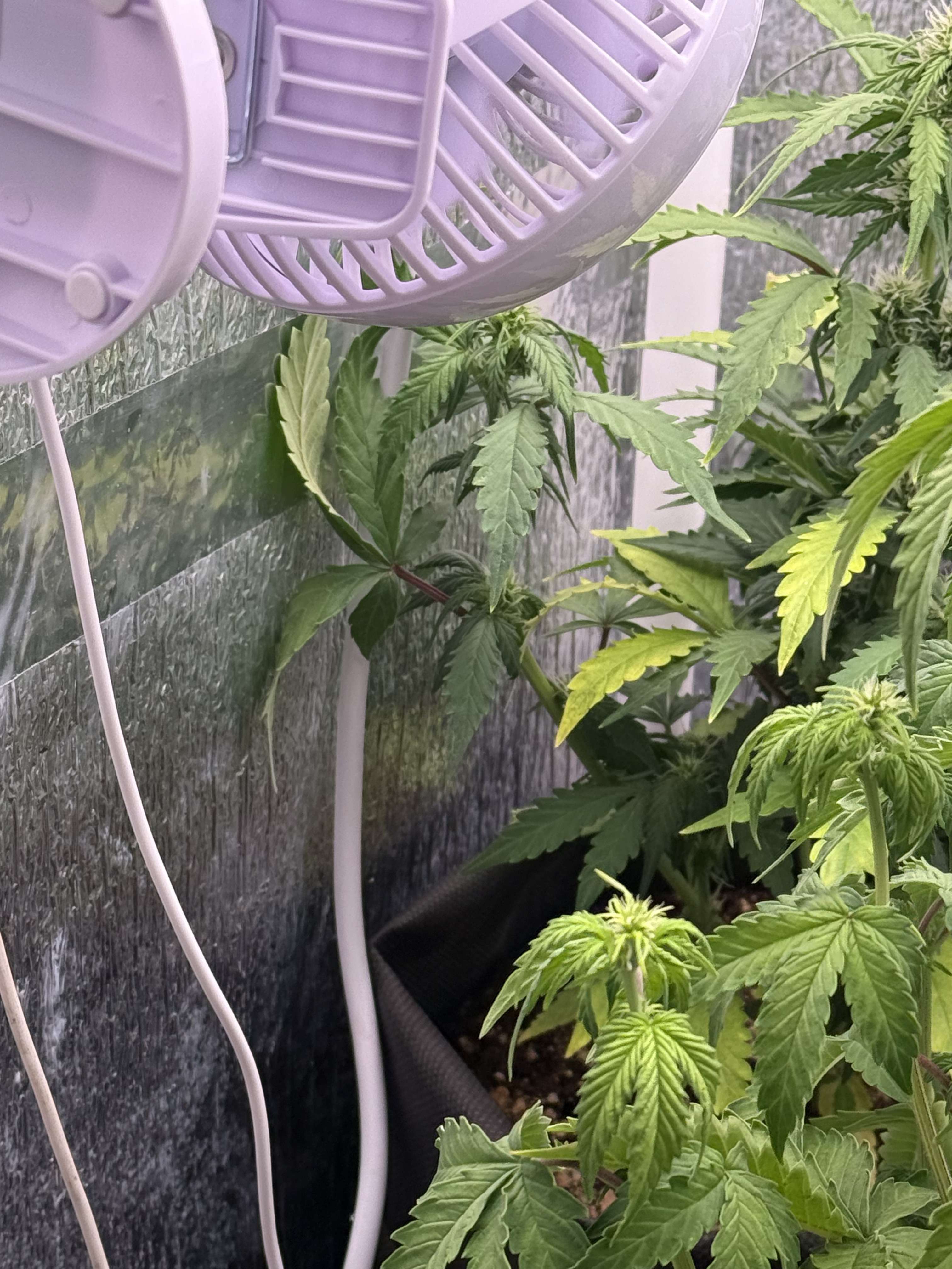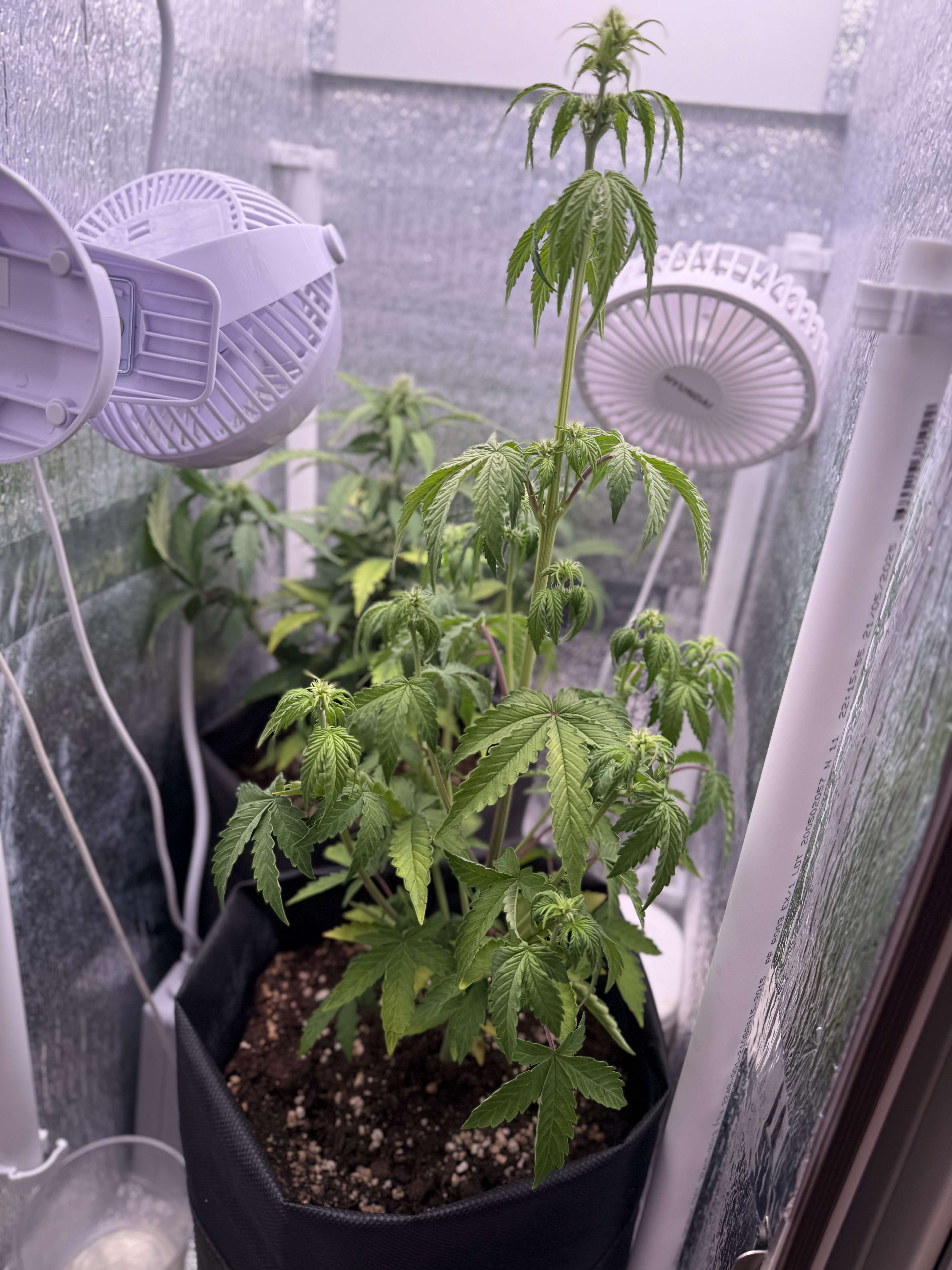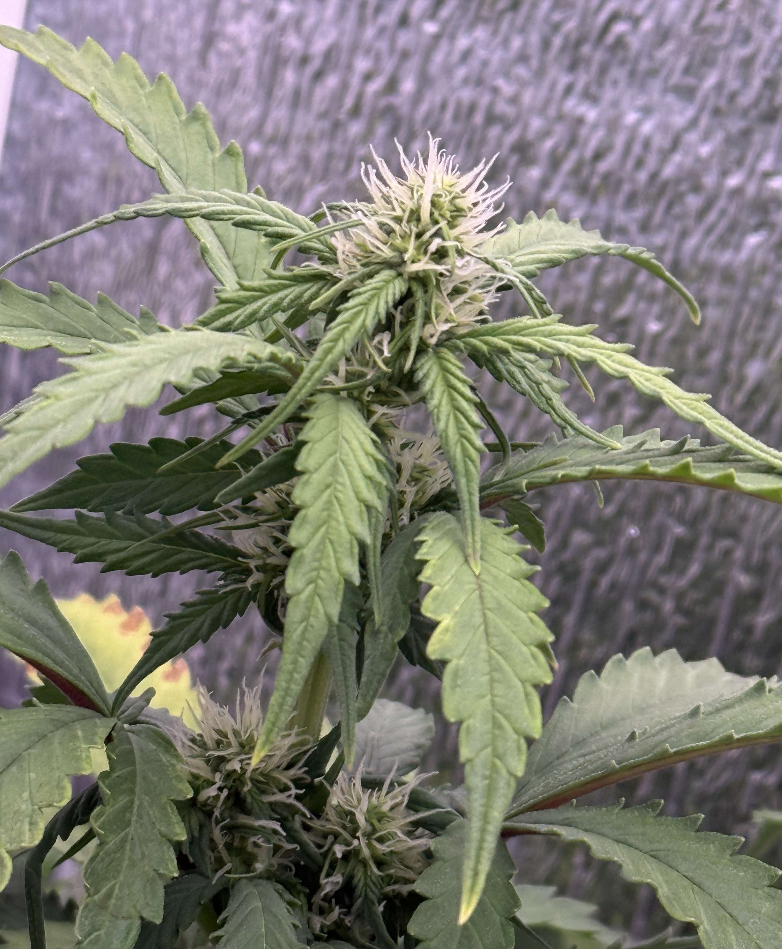 Такая длинная "удочка" под светильник является проблемой: во-первых, все нижние соцветия получают мало гормонов роста. Мало света. Во-вторых, вершинная кола получает "пересвет" и может всю растишку потянуть в гермофродитизм. И происходит это именно на второй фазе цветения.