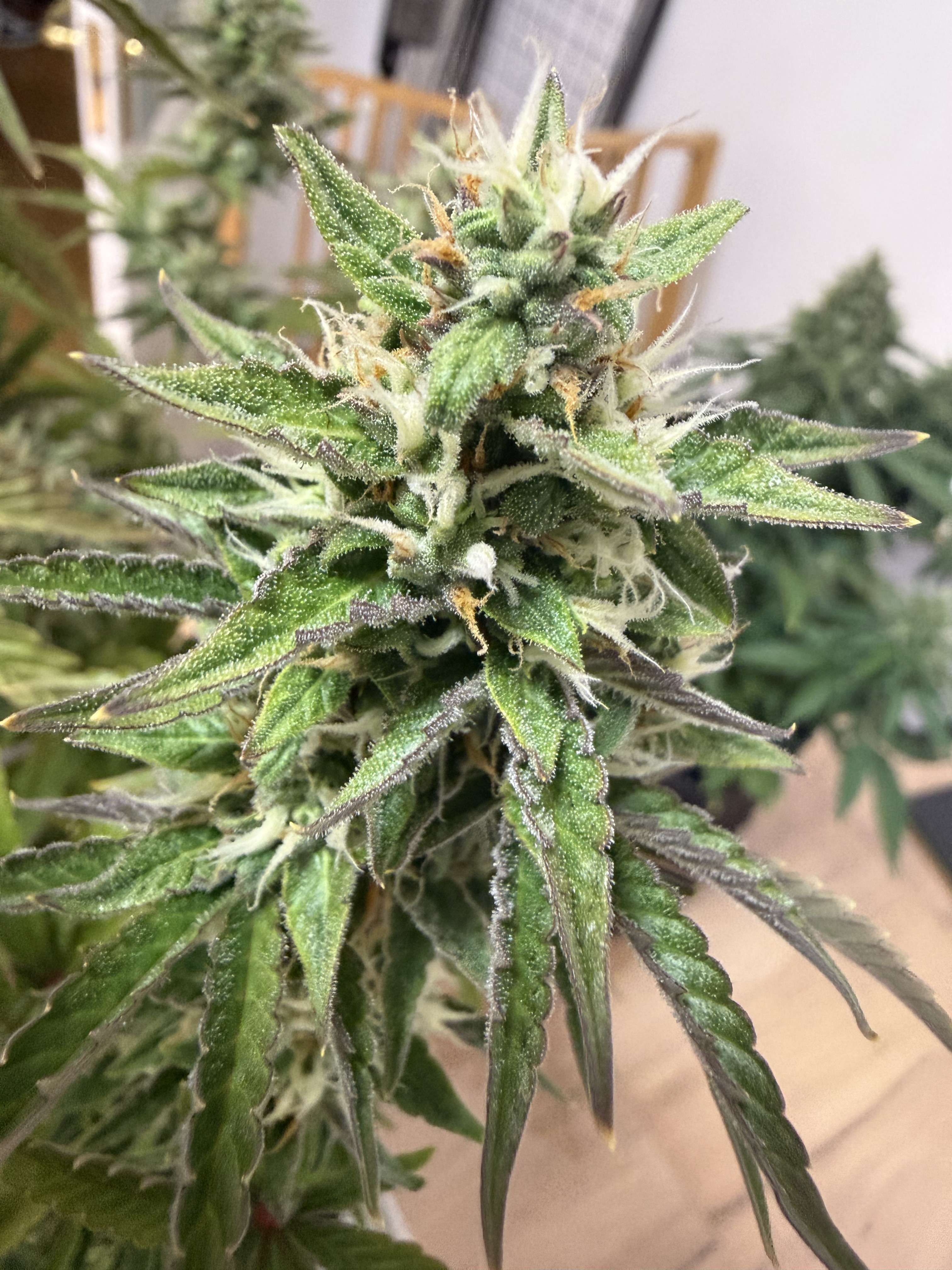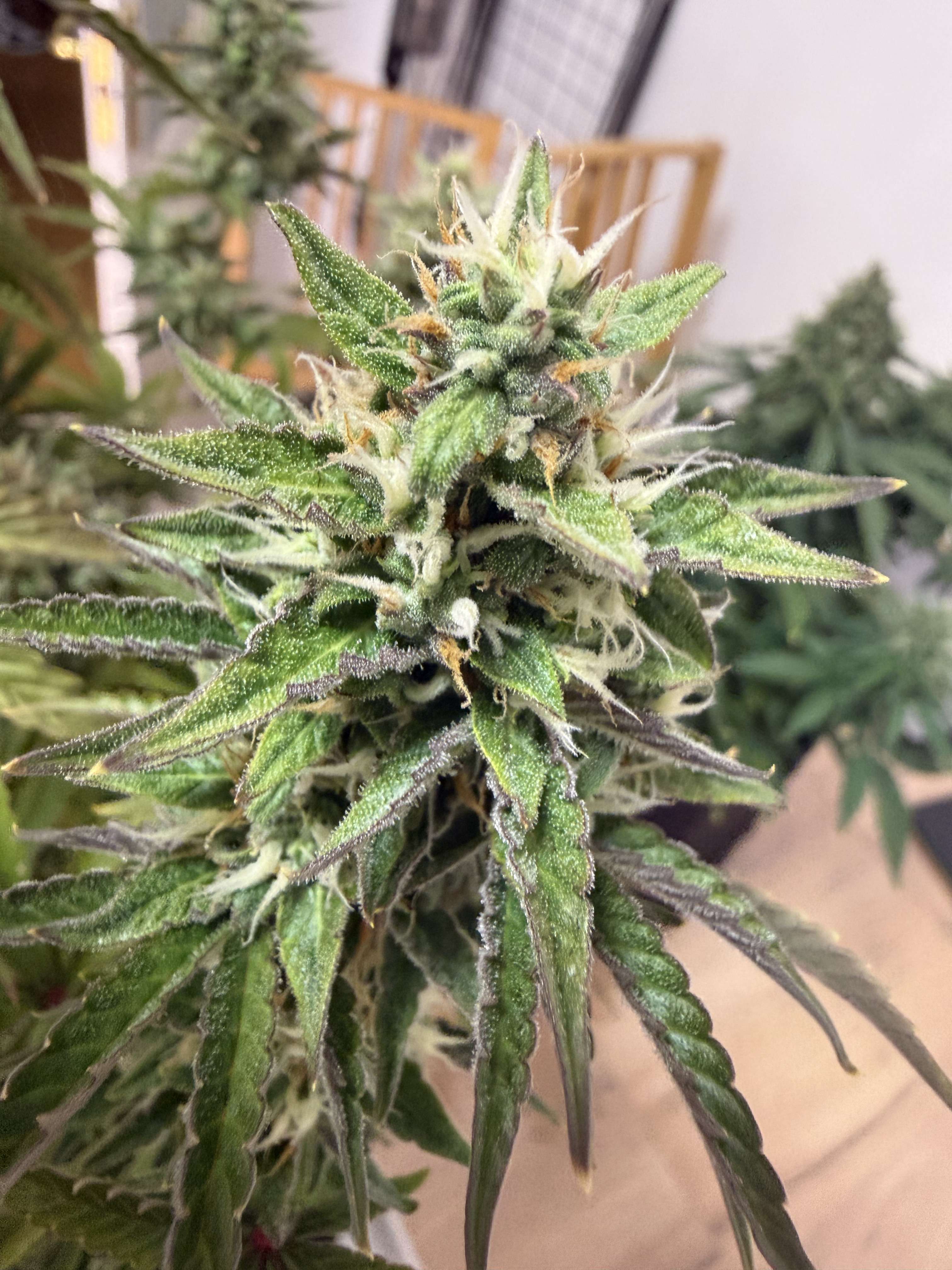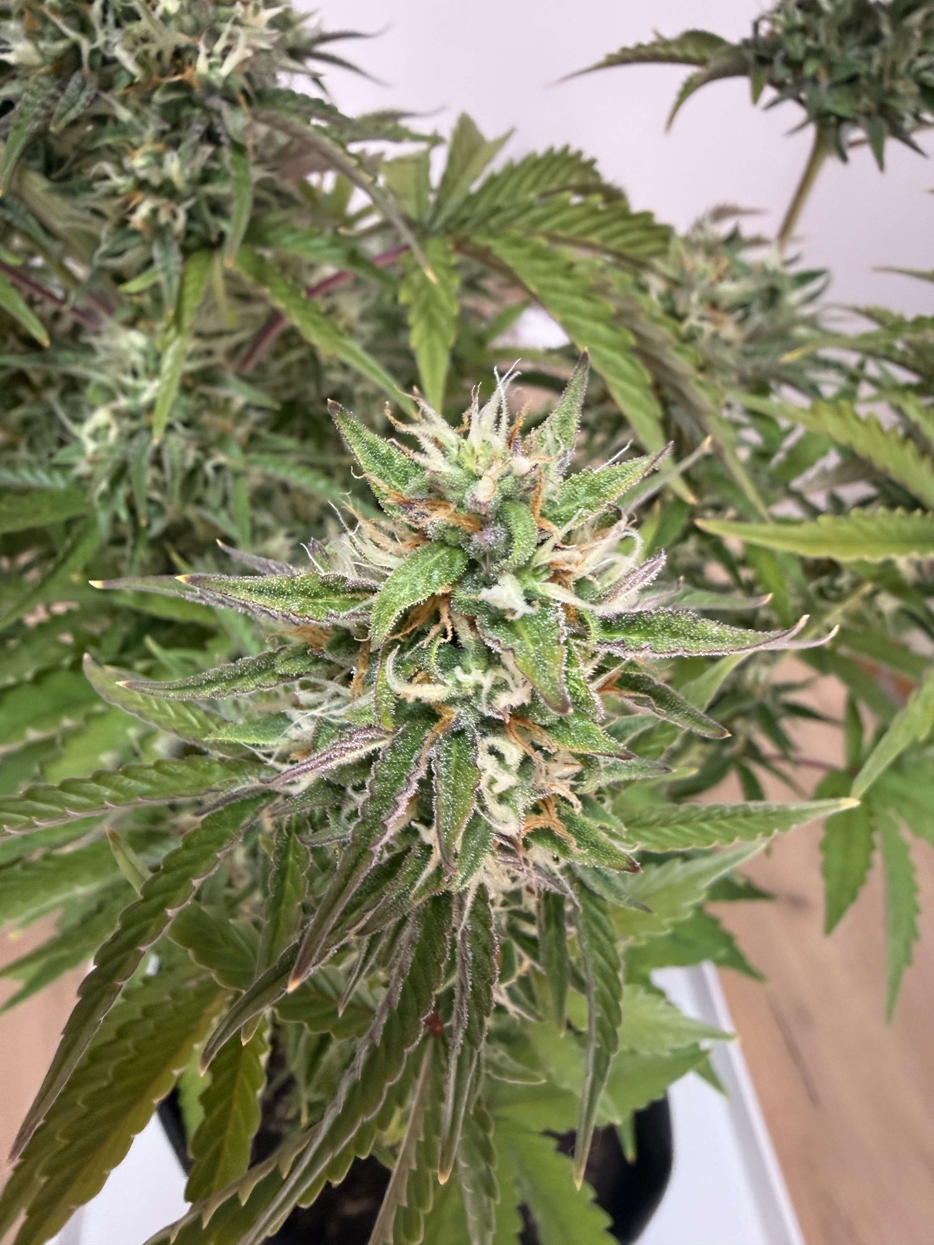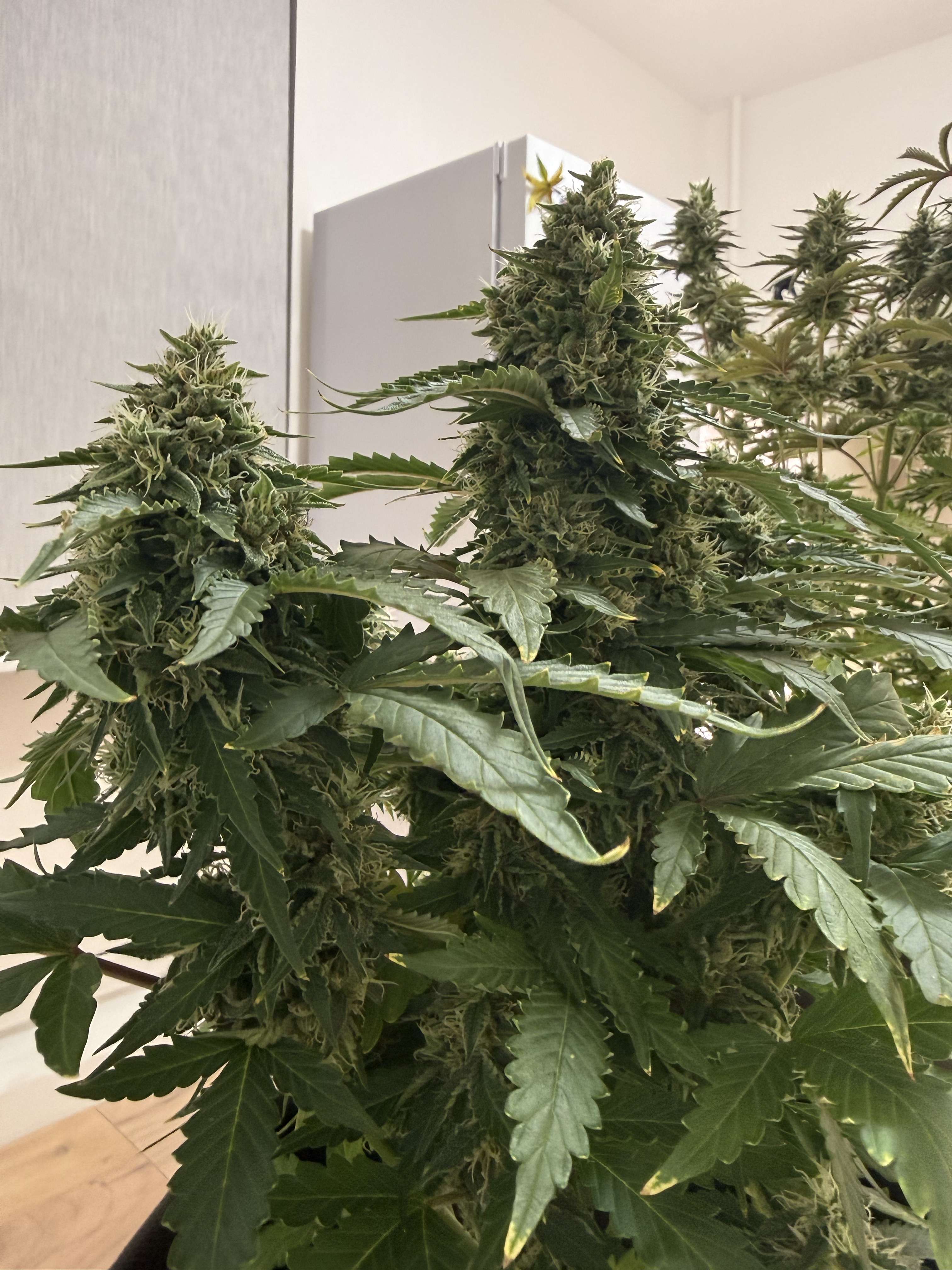 Привет бро, судя по стигмам еще зреть и зреть ей, с месяц примерно. Понятно что и так накуривает, но если хочешь реально топовый стаф тогда придется подождать, а на нг так же ветку можно срезать числа 24, чтоб просохло. Трихомы тоже конечно надо смотреть ну я думаю мутные прозрачные еще. Кусты хорошо выглядят вот бы еще довести дело до конца