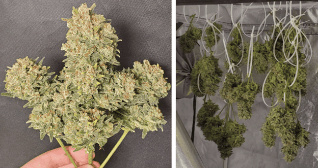 Харвест гровер проводил постепенно, срезая каждую ветвь по отдельности. Затем он проманикюрил их и отправил на сушку в гроутент, подвесив вверх ногами. Через неделю они были готовы к пролечки. Вес сухого урожая составлял 98 грамм первоклассных шишек. Они были очень липкими и плотными, а также имели насыщенный аромат.