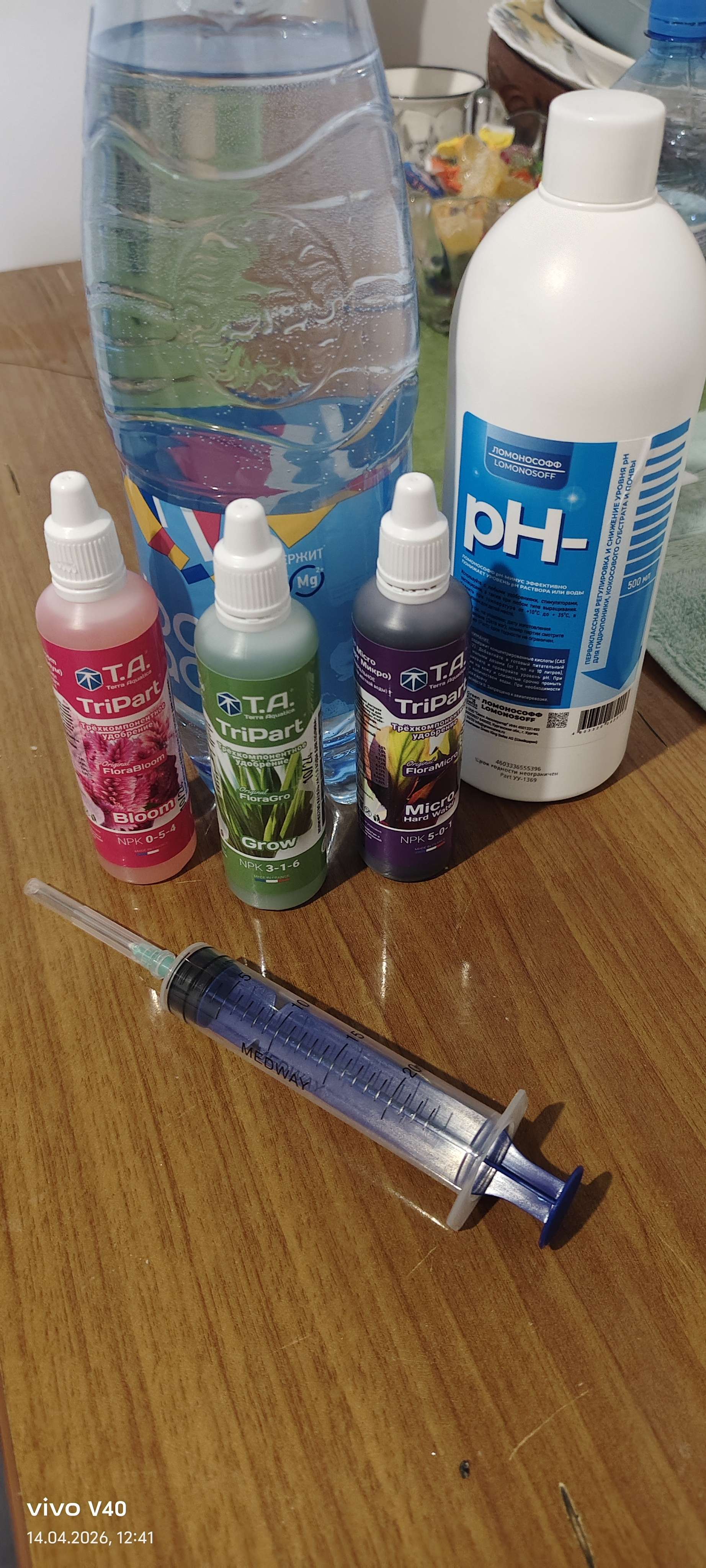 На 12 день полил удобрением Tripart, 1/2 от производителя по каплям ! Полил 1 литром с ровным Пш ,сегодня ему ровно 14 дней ,следующий полив компотом намешал в мл/л по таблице