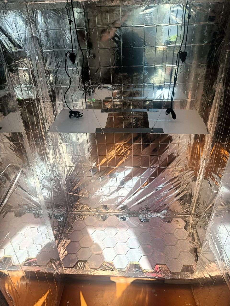 Всем доброго времени суток.Решил заняться,читал ,смотрел, форум чуть больше 3 недель, закал семки, 20.03 замочил в рюмке с 10 каплями перекиси 3% , через 2.5 дня дали корни , оба , посадил в горшки по 10л , предварительно пролил , и в шкаф, в темноту , шкаф собирал 2 дня , обклеил ,все проклеил алюминиевым скотчем,свет led полный спектр по 85вт 2 штуки диоды на Samsung 281+ вывел все оборудование наружу, установил вытяжной вентилятор на 95кубов,внизу кулер из блока питания с компа ,с этого же блока срезал провода и использовал ,для кулера 120мм ,на вход вентиляции снаружи прилепил угольный фильтр для кухонных вытяжке ,таймеры две штуки на свет и вентиляцию,заказал термометр для регуляции вентиляции и пару удобрений, ghe пробники плюс отдельно докупил micro sw,ph down , водой пролил кипячёной,сделал домик для датчика гигрометра