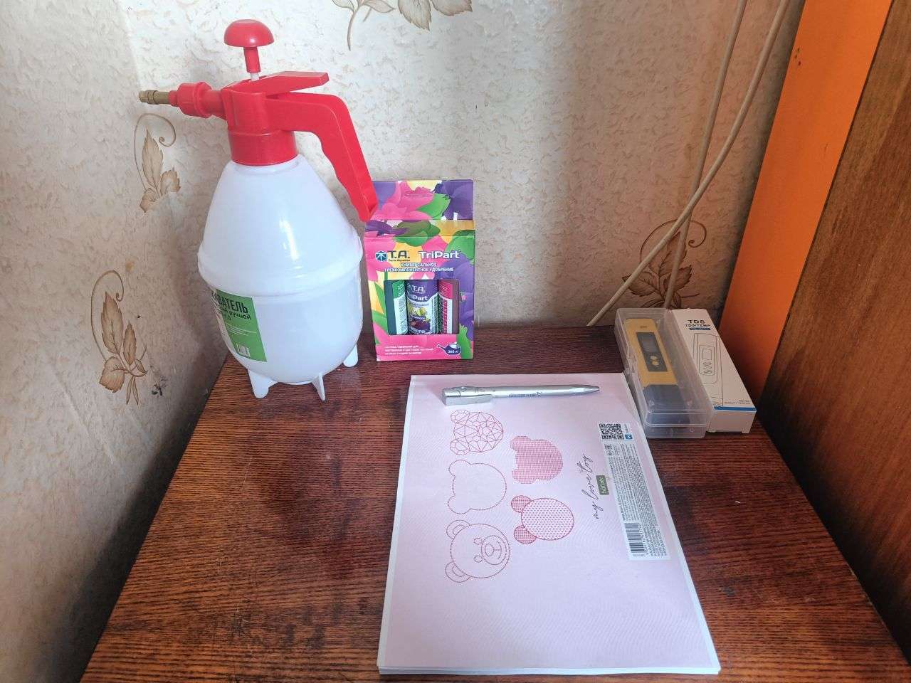 Ph 6.7 250ppm ,ph down до 6.3 ,пролил и в бокс , может поэтому и чуть долго растут ,что не сразу свет включил)