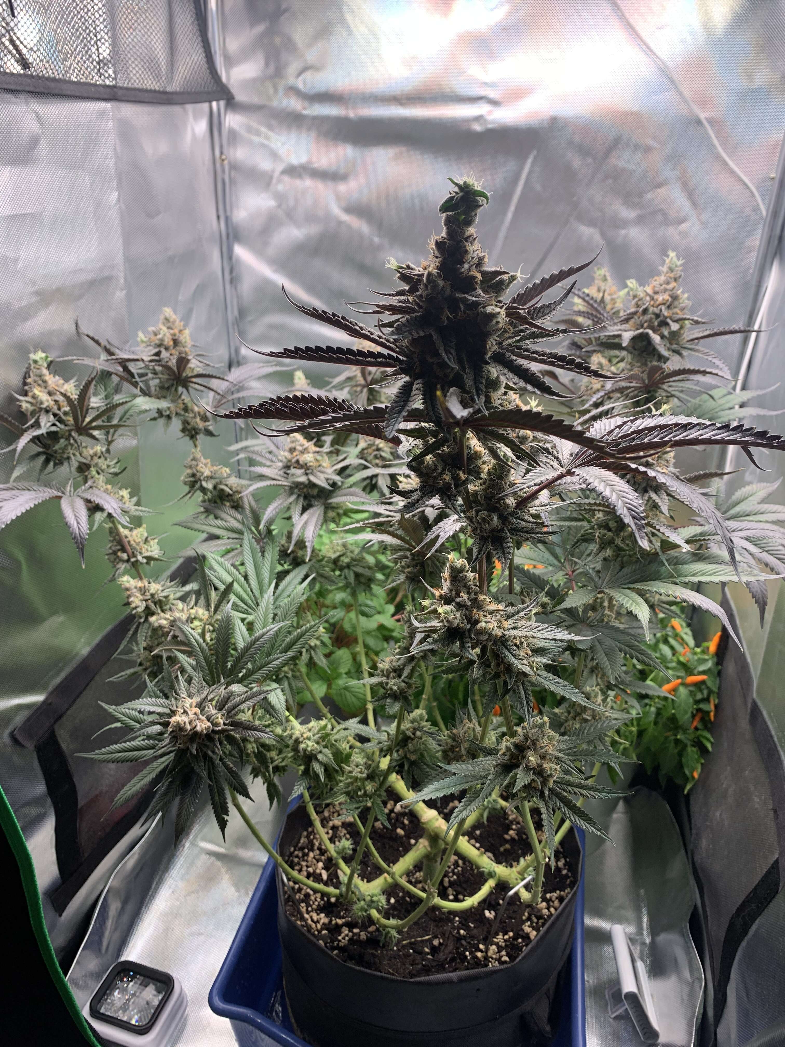 Роскошно выглядят, чёрные листья. В стиле афганских сортов.
