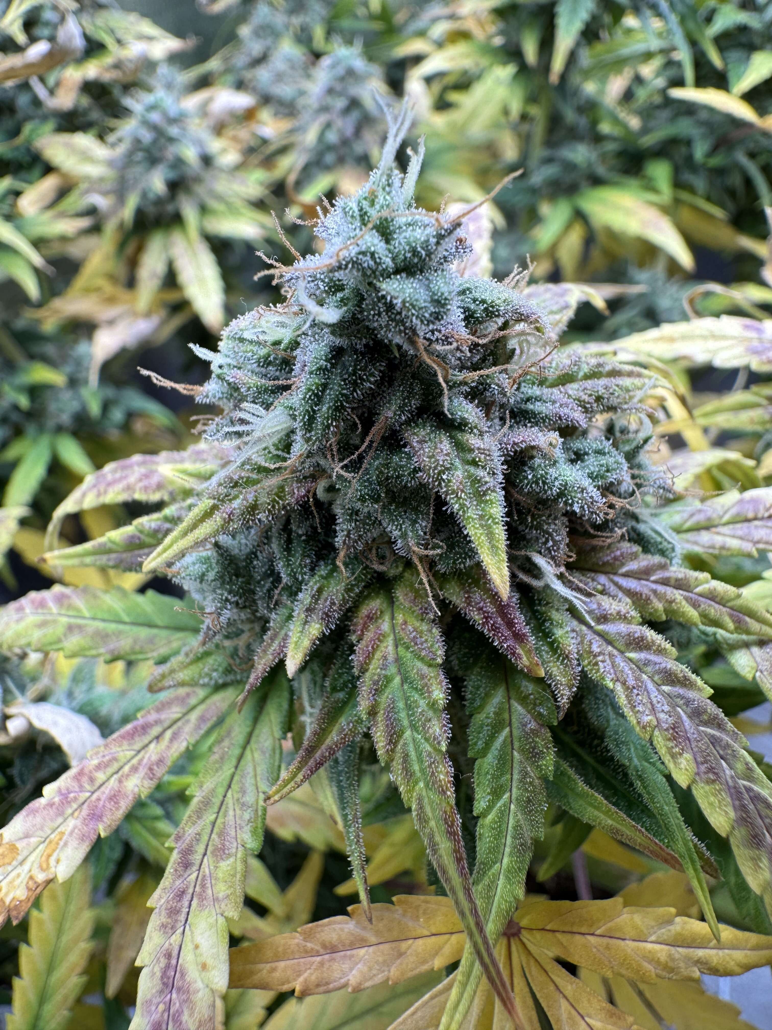 Как видите, на этапе роста (в начале цветения) словил жесткий деф, из-за чего хлороз и некроз, но, к счастью, не полная смерть. Ожидаю.