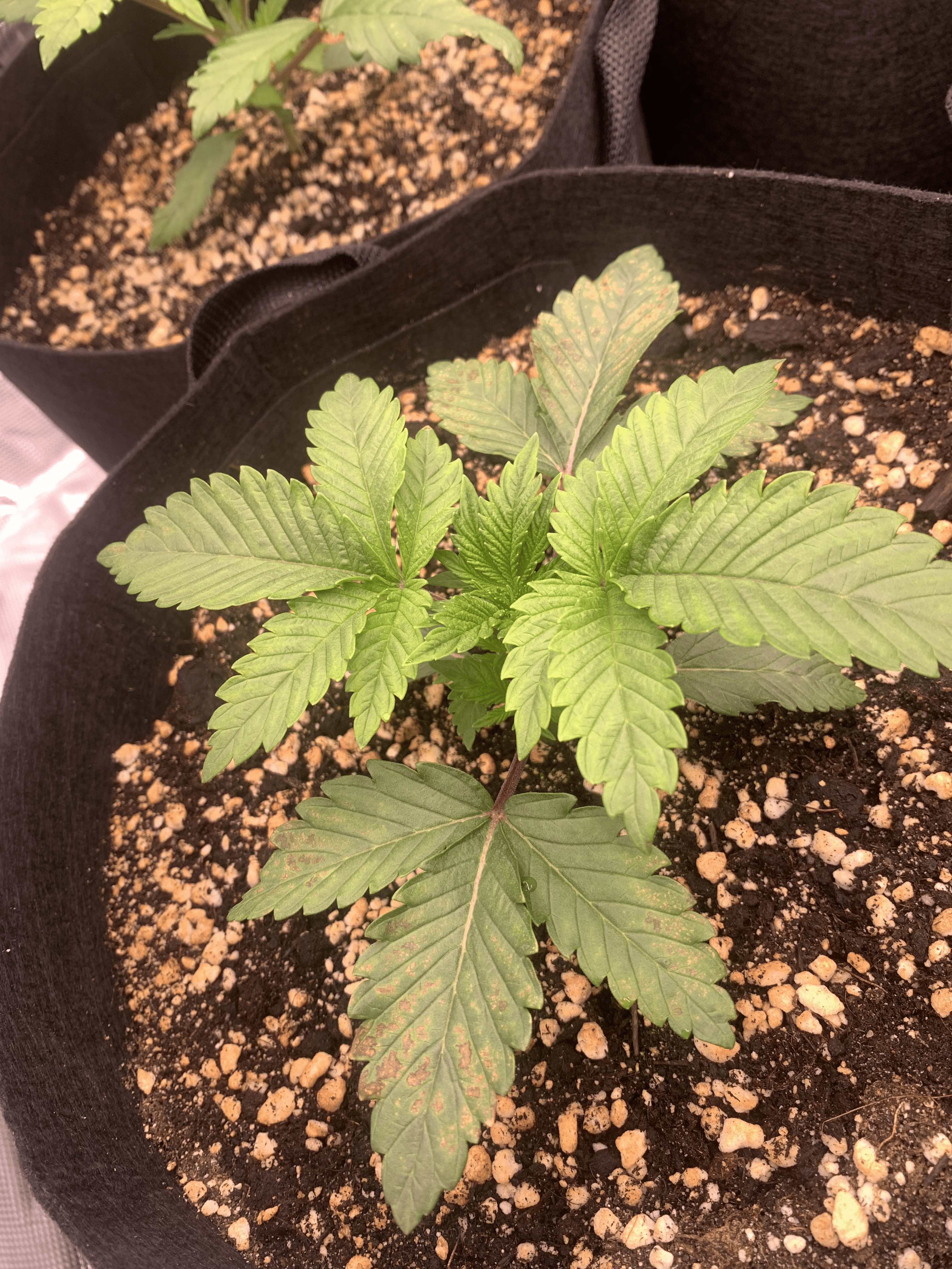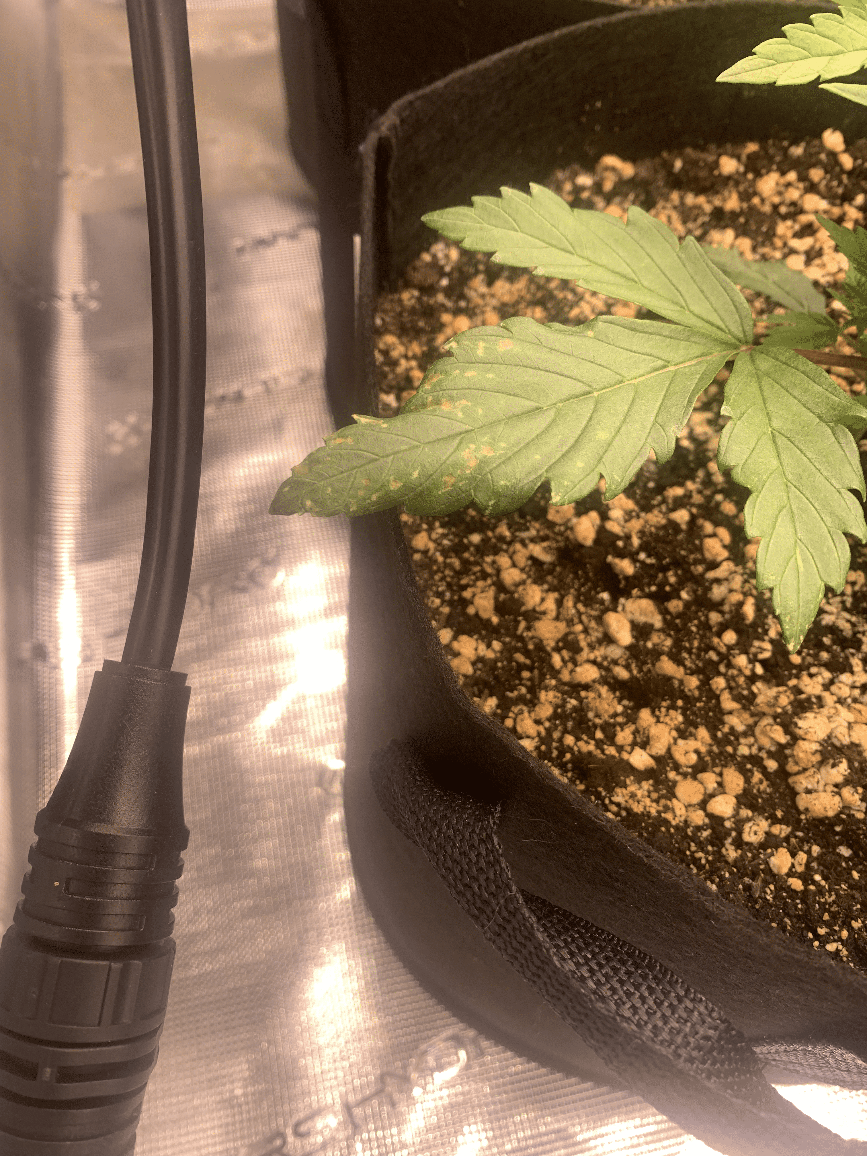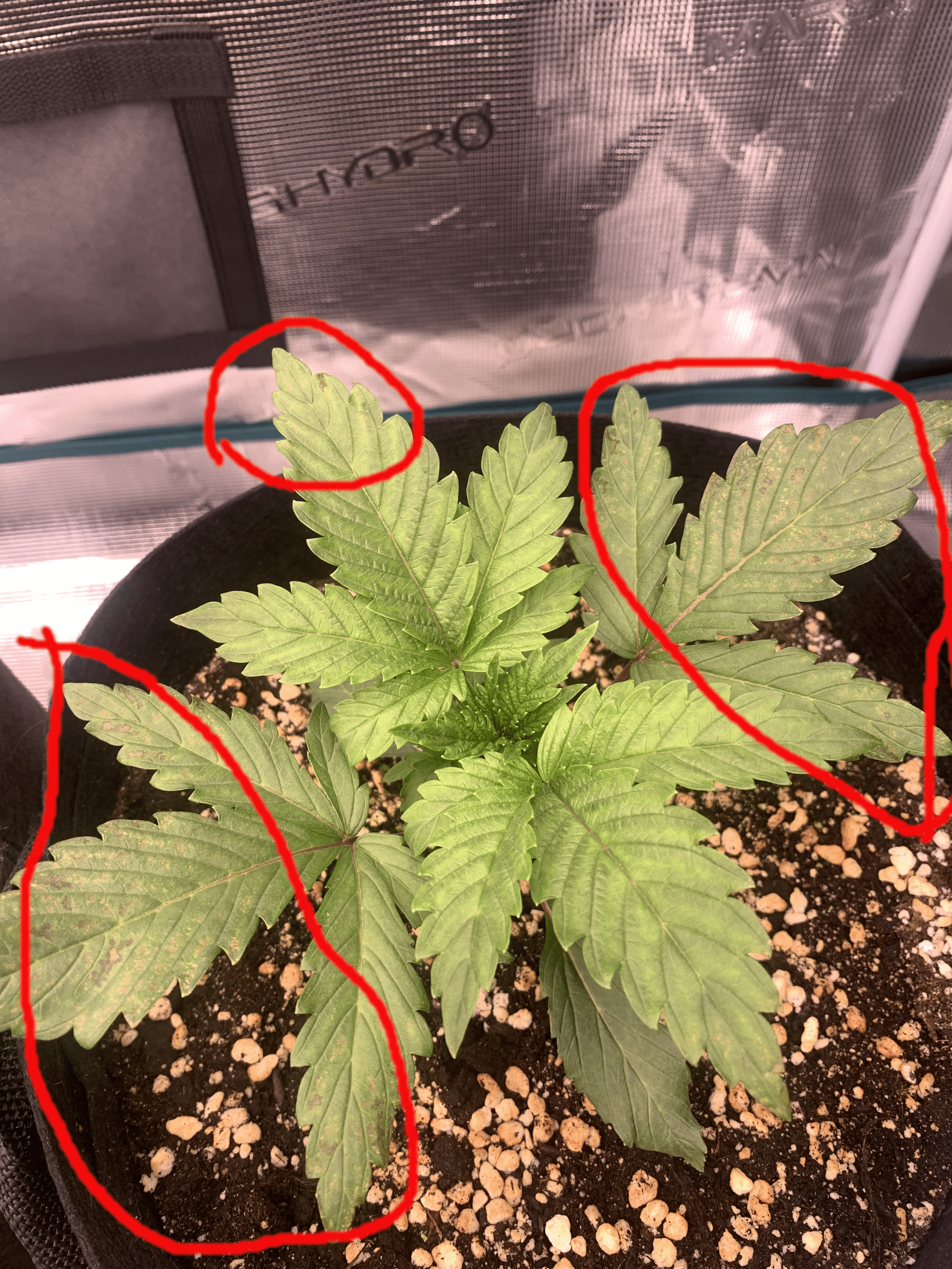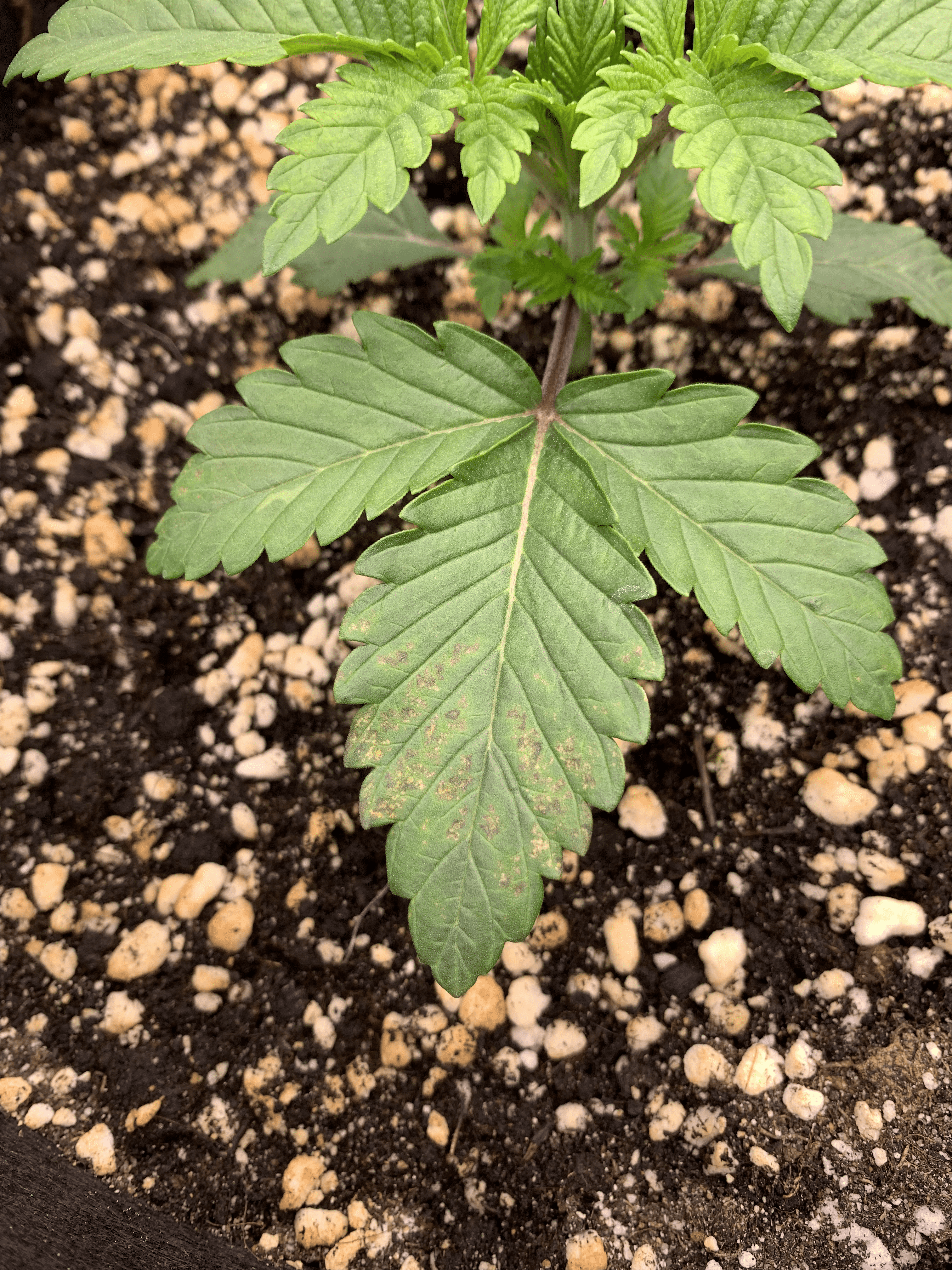 На листиках появились маленькие пятна, возможно из за того что PH повчы высокий, но проверить это не получается так как небыло дренажа.
