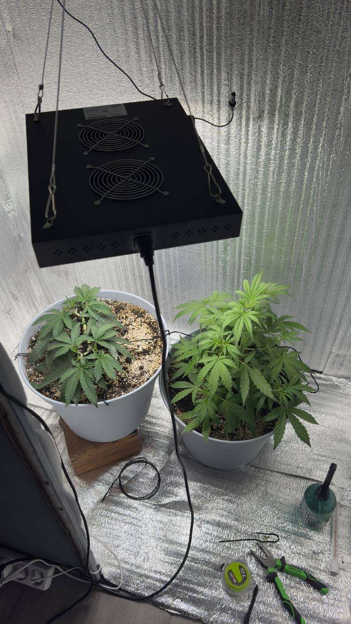 Танджи лопухи раскинул, низа все перекрыл, там около 2к было, в итоге принял решение чикнуть их, 3 пары срезал, многовато, зато 9к теперь в зарослях, лампу опустил ниже, до 30 см и сбавил мощность до 60%, все замеры уже на этой мощности, сегодня смотрел где парнишка растил 2 автика одного сорта, в одинаковых условиях, но один общипывал по 2-3 листочка на Веге, а на втором серьезную такую дефолиацию разом применял, так вот на 43 день разница колоссальная была, жаль я это видео увидел после удаления 6 листов, упс😅