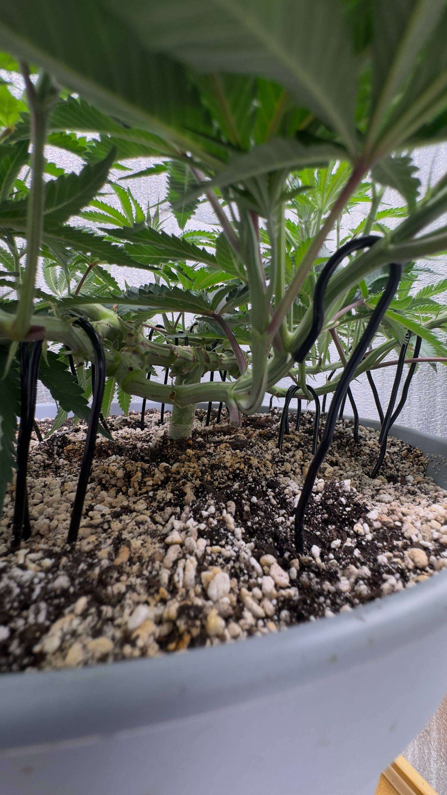 Бро, к тебе вопрос: когда ты "согнул" стебель по горизонтали, то сделал разветвление на 3-ем узле.. а после третьего узла и финального разветвления сделал на 1-ом узле? Почему на первом? Можно ли в таких сутациях тянуть до 2-го или третьего узла? Не нарушиться ли общая проводимость жидкости по стеблю к верхушкам кол?