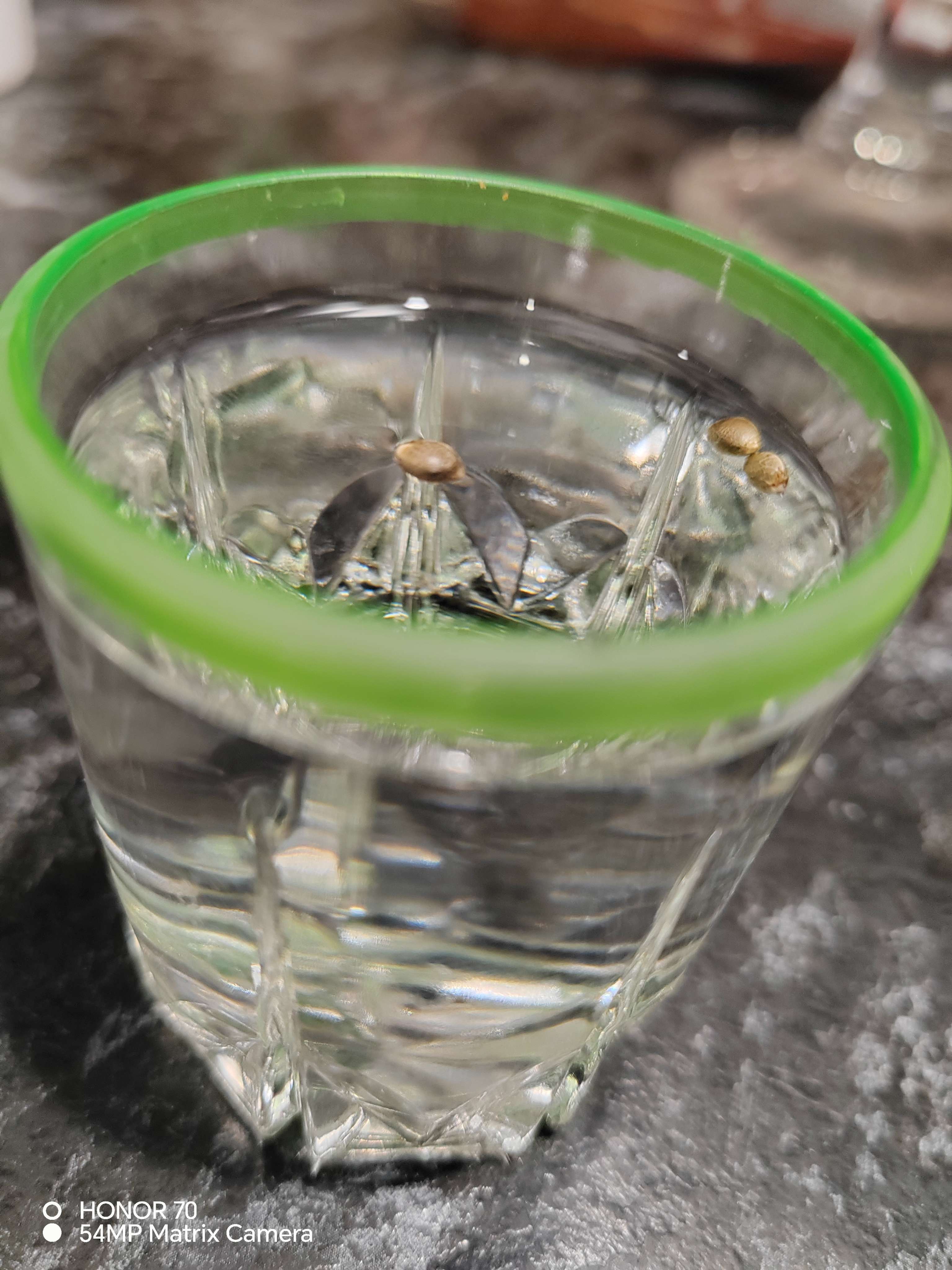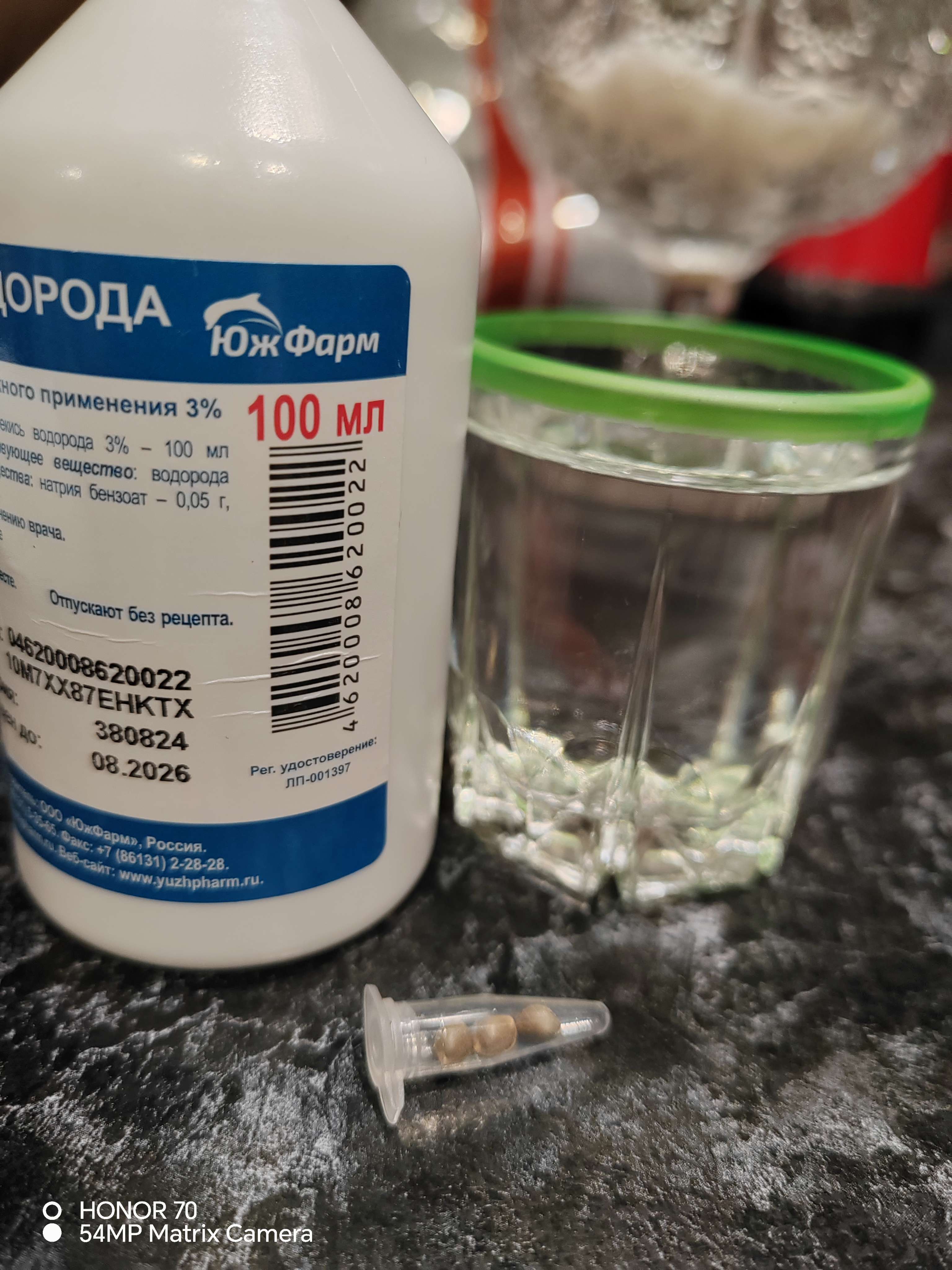 После проведённых праздников, решил закинуть семена в 2:00 ночи,😂а че нет?! Стопка, 50 мл воды с водомата +перекись водорода 3% +семена, ну и в ящик на кухне всё это.В обед проснулся, переложил семена в ватные диски и туда же.