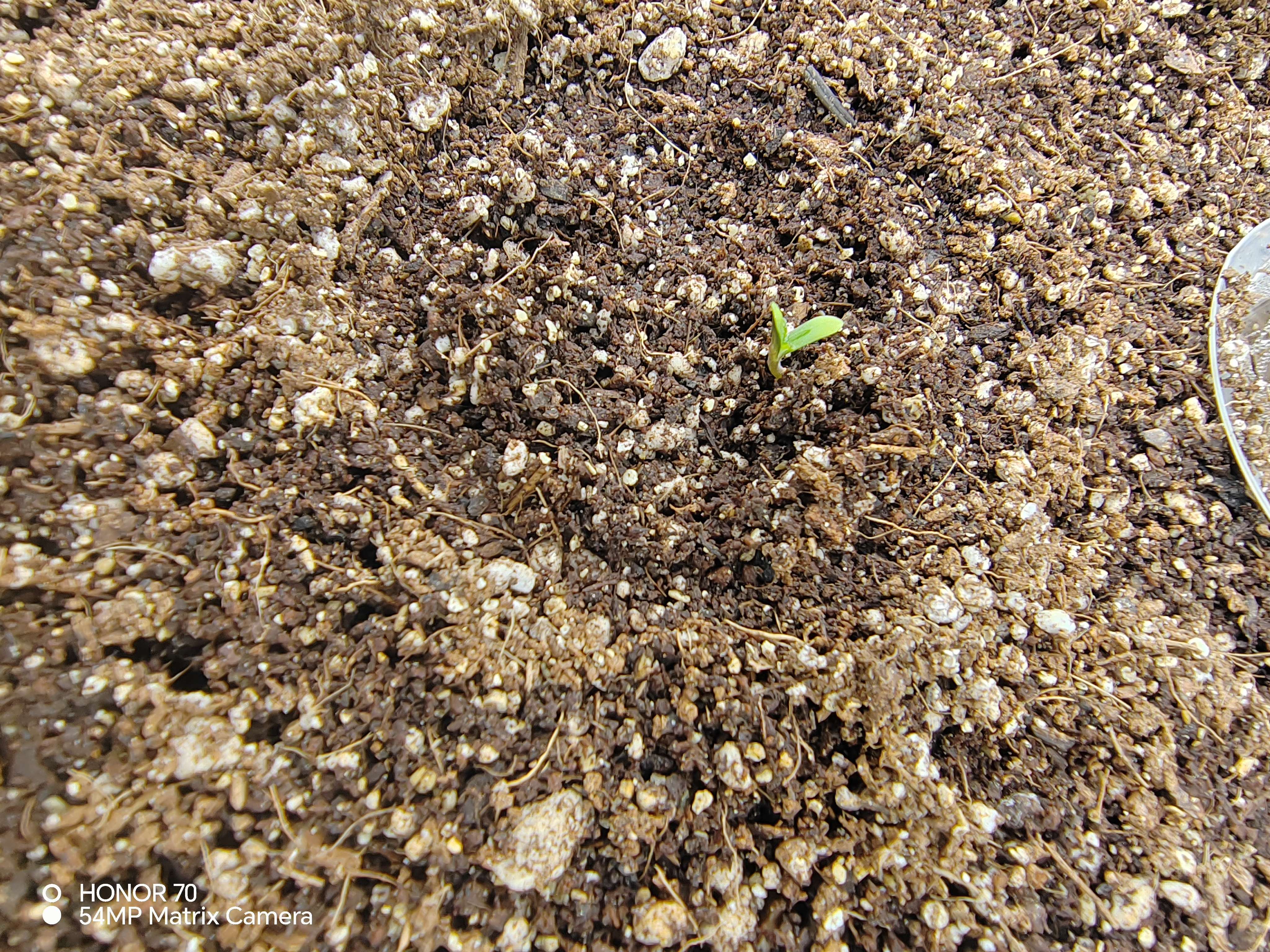 В 17:00 перемешала субстрат, 50 литров промытого BioBiz Coco Mix, непомню почему выбрал именно его,и линейку удобрений Simplex🤷 после промывки было 40-45 литров кокоса +-,с перлитом 15л. И вермикулитом 5 л. Подготовил два ведра сорока литровых в них 20 литров воды с водомата Ppm 10-15, Ph 6,3+-,добавил Simplex Coco A 25 мл и Simplex Coco B 25мл,чуть понизил Ph.показания раствора Ppm400, Ph5,8. Замочил субстрат на час, дал стеч лишней воде, и раскидал по горшкам Aero Pot 15 литров. 11.05.20205 семена дали корешки и в 15:00 полетели по горшкам. Забыл сфоткать, но проросли все👌13.05.2025 в 8 утра заглянул в бокс, 2 из трех только только вылезли, но сразу без касок🤷третий пока сидит...