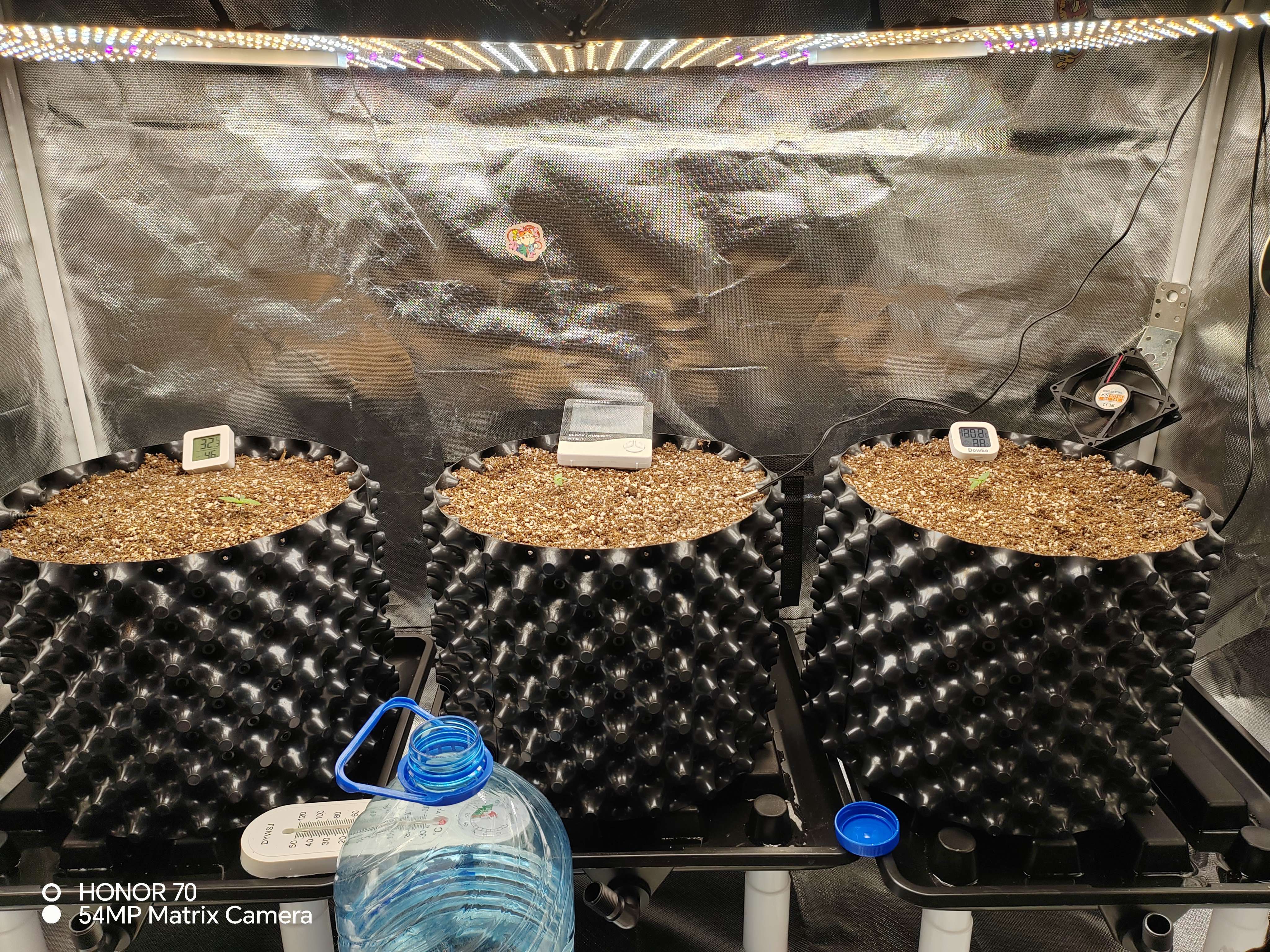 Раздвинул немного лампы, поднял их на 55 см от растихи, и убавил мощность. А то стояли на плную.