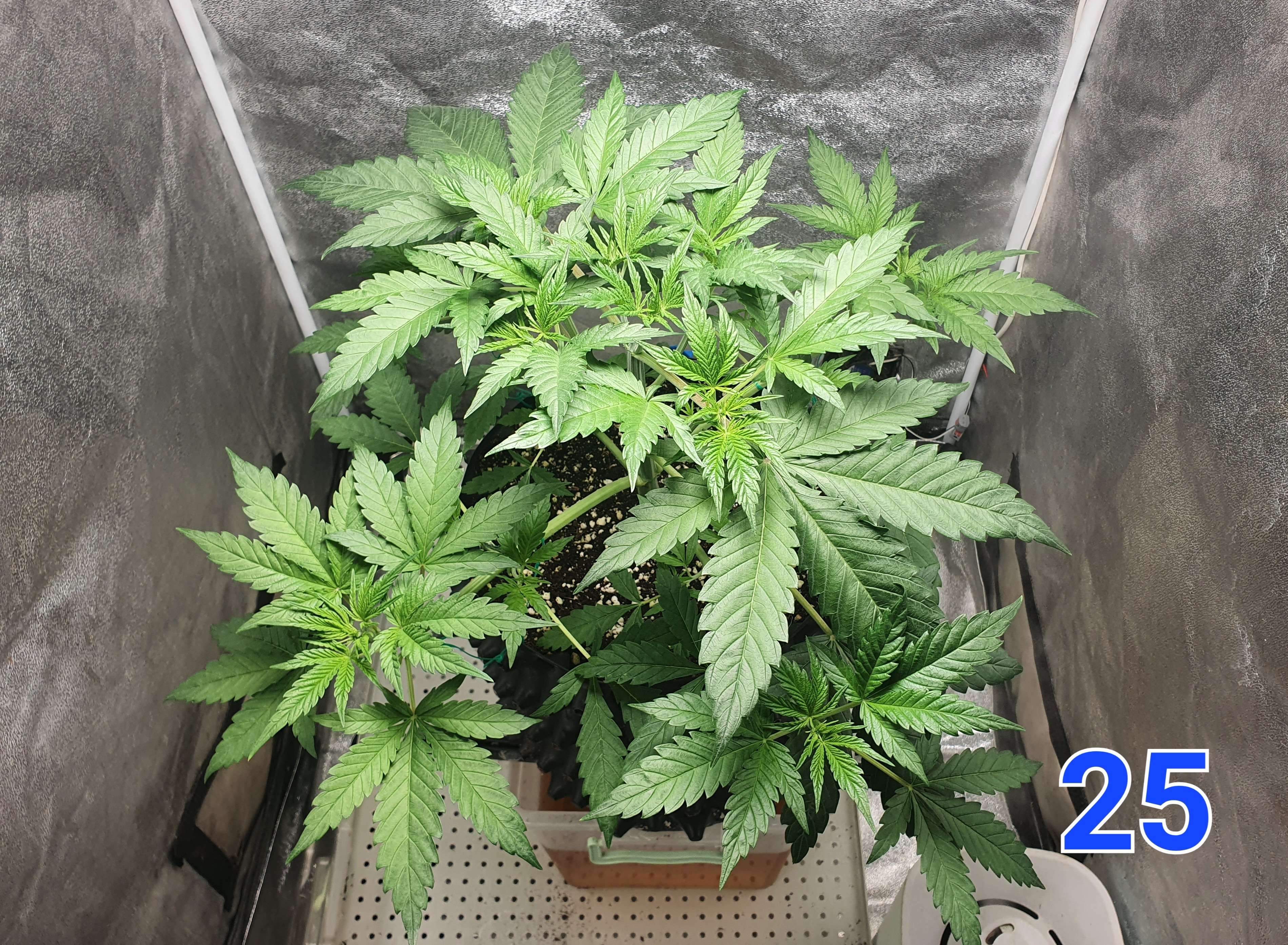 На 24й день растянул первые два этажа растишки и убрал 2 веерных листа. Те этажи что выше буду тянуть когда вырастут сильнее.