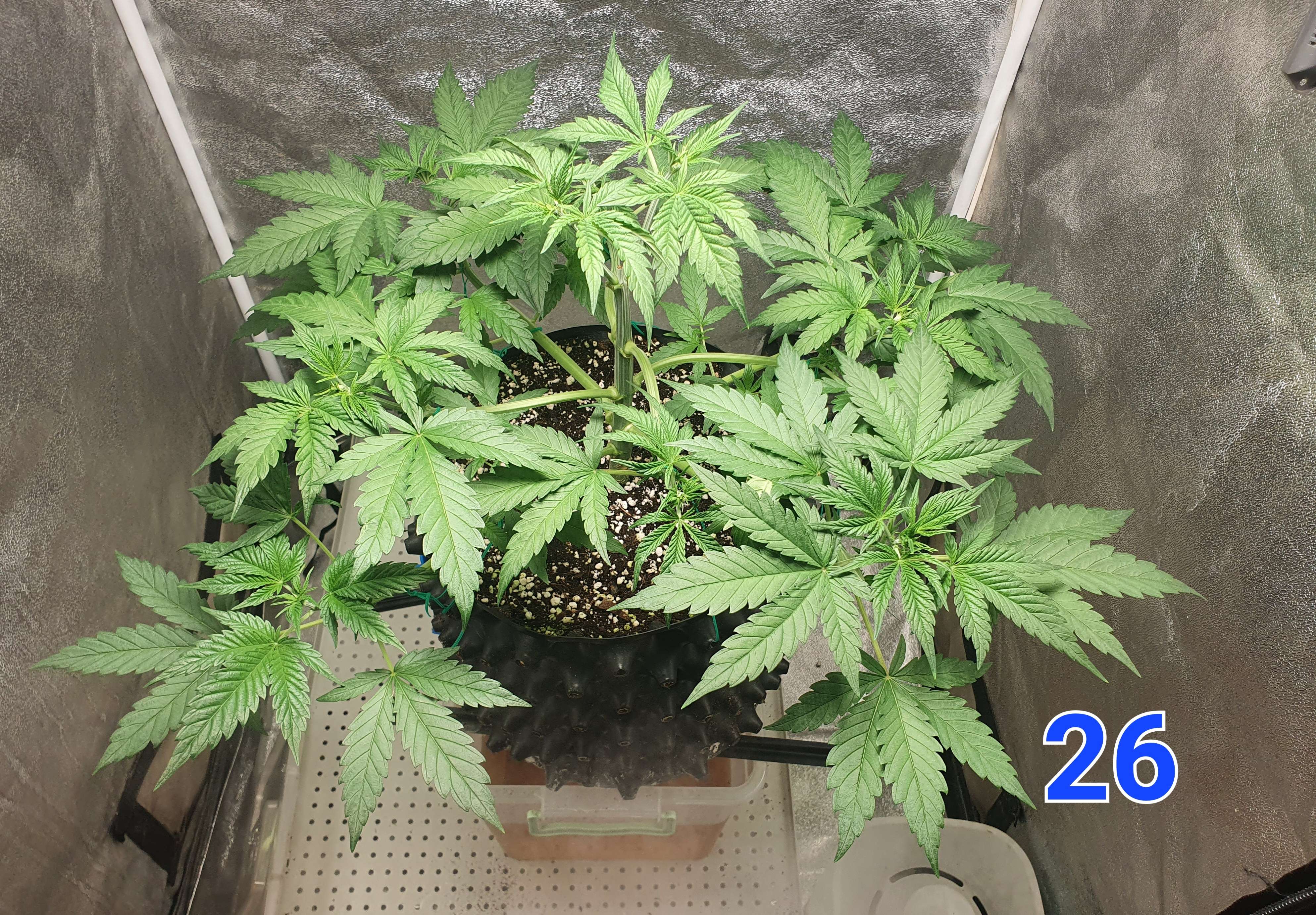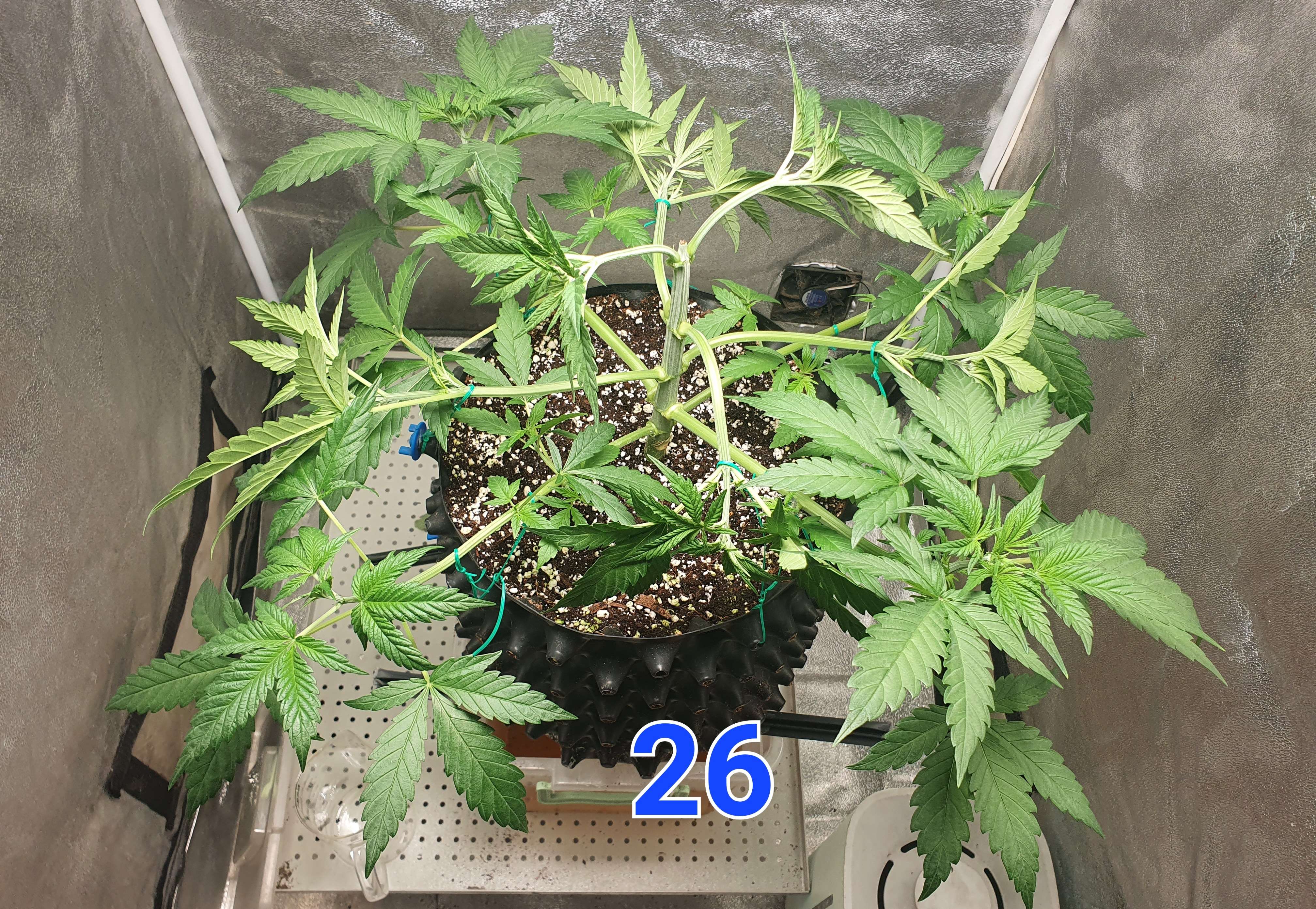 Всем привет. На 26 день растянул остальные этажи и убрал 4 огромных веерных листа. Расстояние междоузлий большое, чую колы-удочки будут)