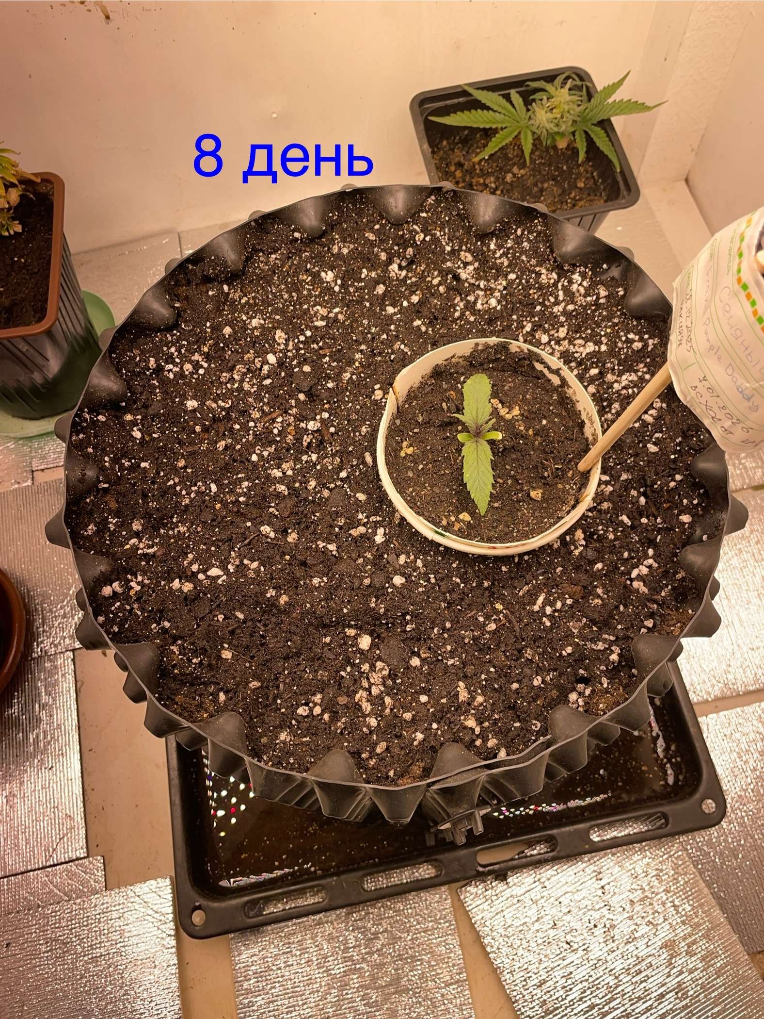 Пришел никакой с работы сфотал, экстренно принял решение пережитый и слегка подмороженный стаканчик с ростком пересадить в большой горшок, обьем субстрата больше меньше вероятности что промерзнет до корешка в такие форс мажорные обстоятельства.