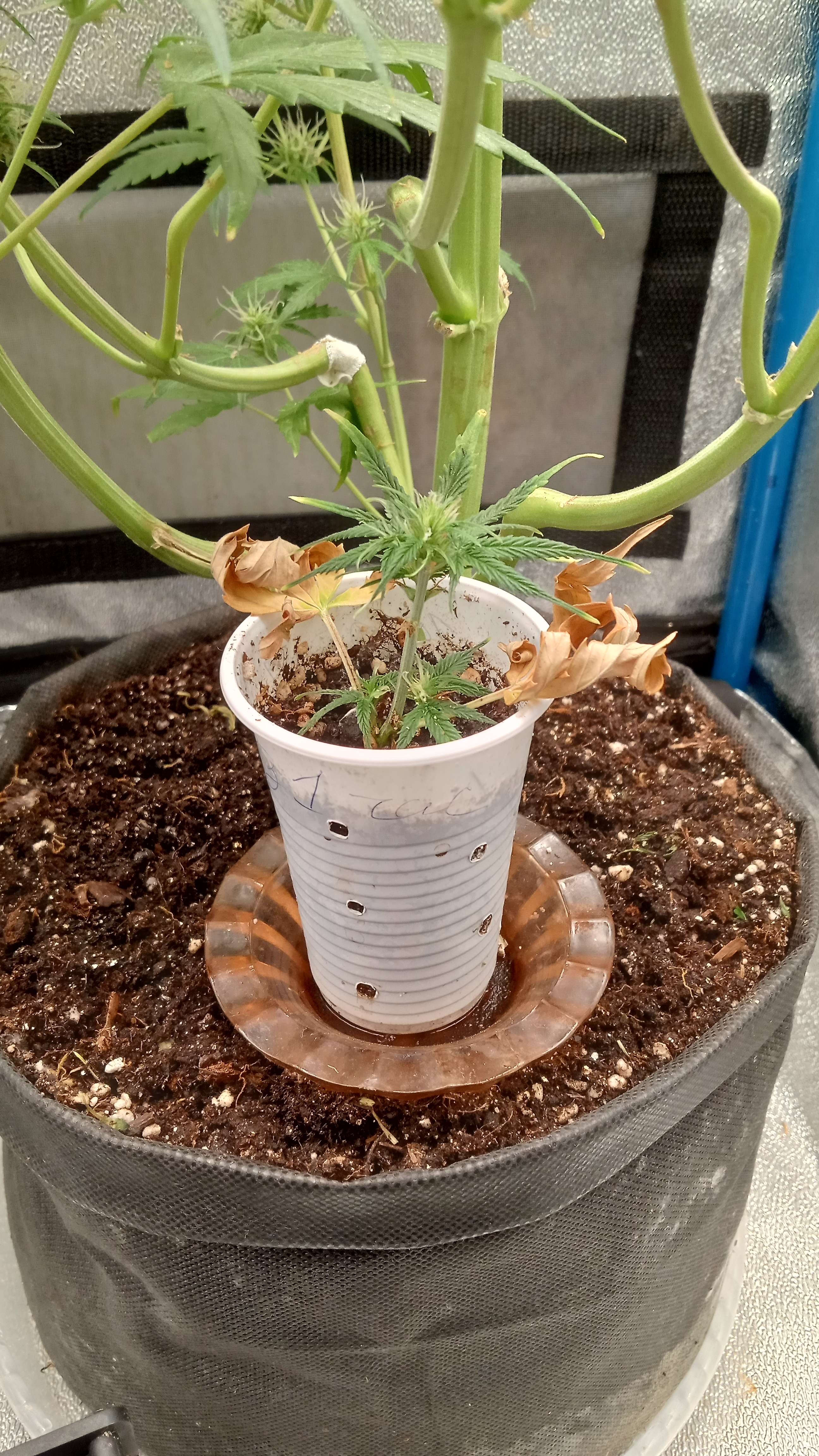 Тот кто занимался поливом, думал что "товарищ" спит ночью... 🤣🤣🤣... И я не туда? Позвонить, узнать... Был уверен, что 20/4... Мой стандартный формат грова этого... Пролил 2 литра ppm 090, ph 6.9. Без дренажа. Свет выставел 18/6. Подстриг, почистил, бокс прибрал слегка, lx 45 000. Щадящий свет... Никуда не торопимся, поправил скрог, покомфортнее условия...