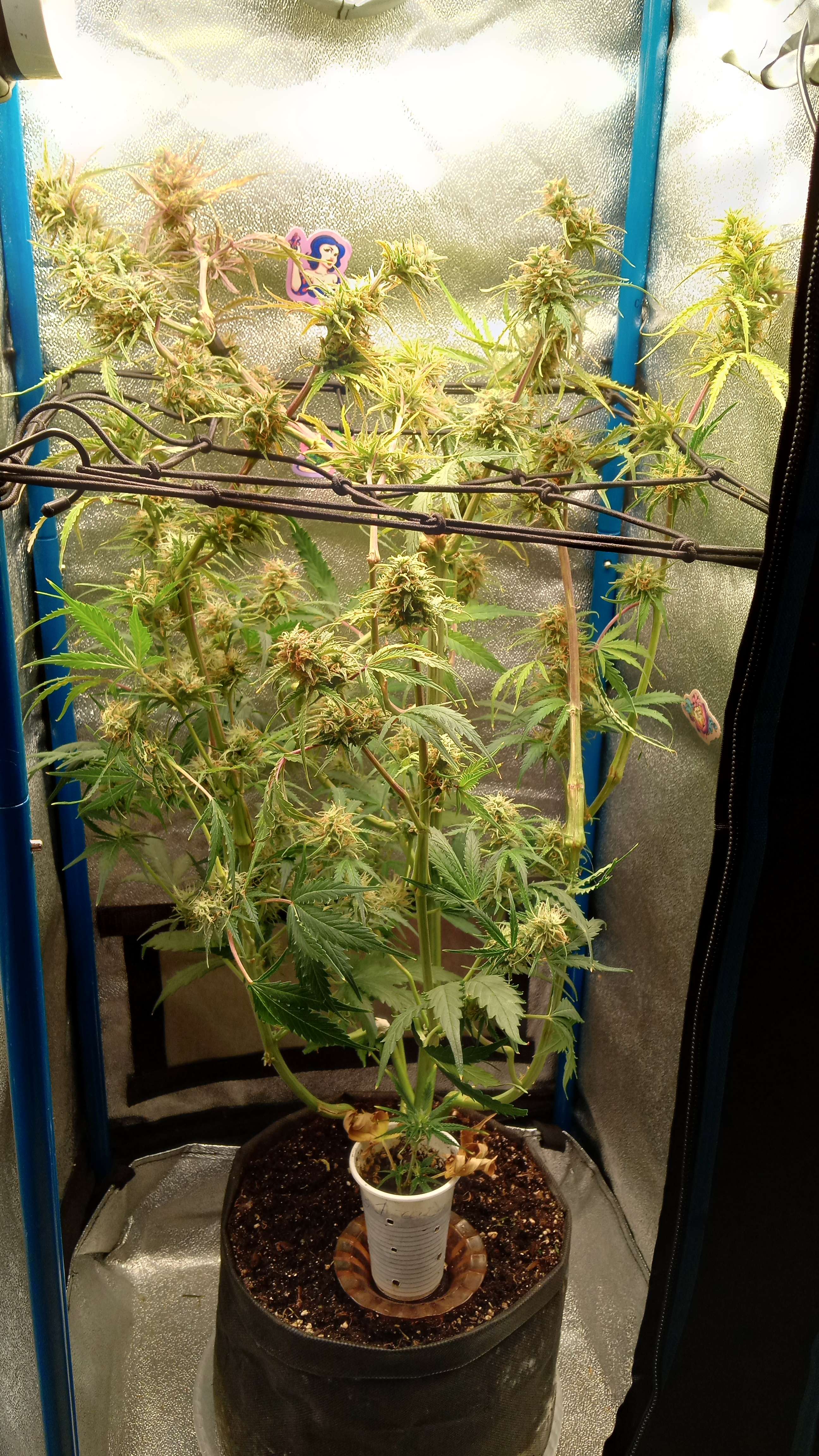 Привет народ! Утром пролил 1.5 литра с 3.0 мл. Мелассы. Ph 6.2, ppm 340 , без дренажа. Шишки верхние и дозревают и от светового шока подахерели, стигмы на нижние лопухи скидывает...