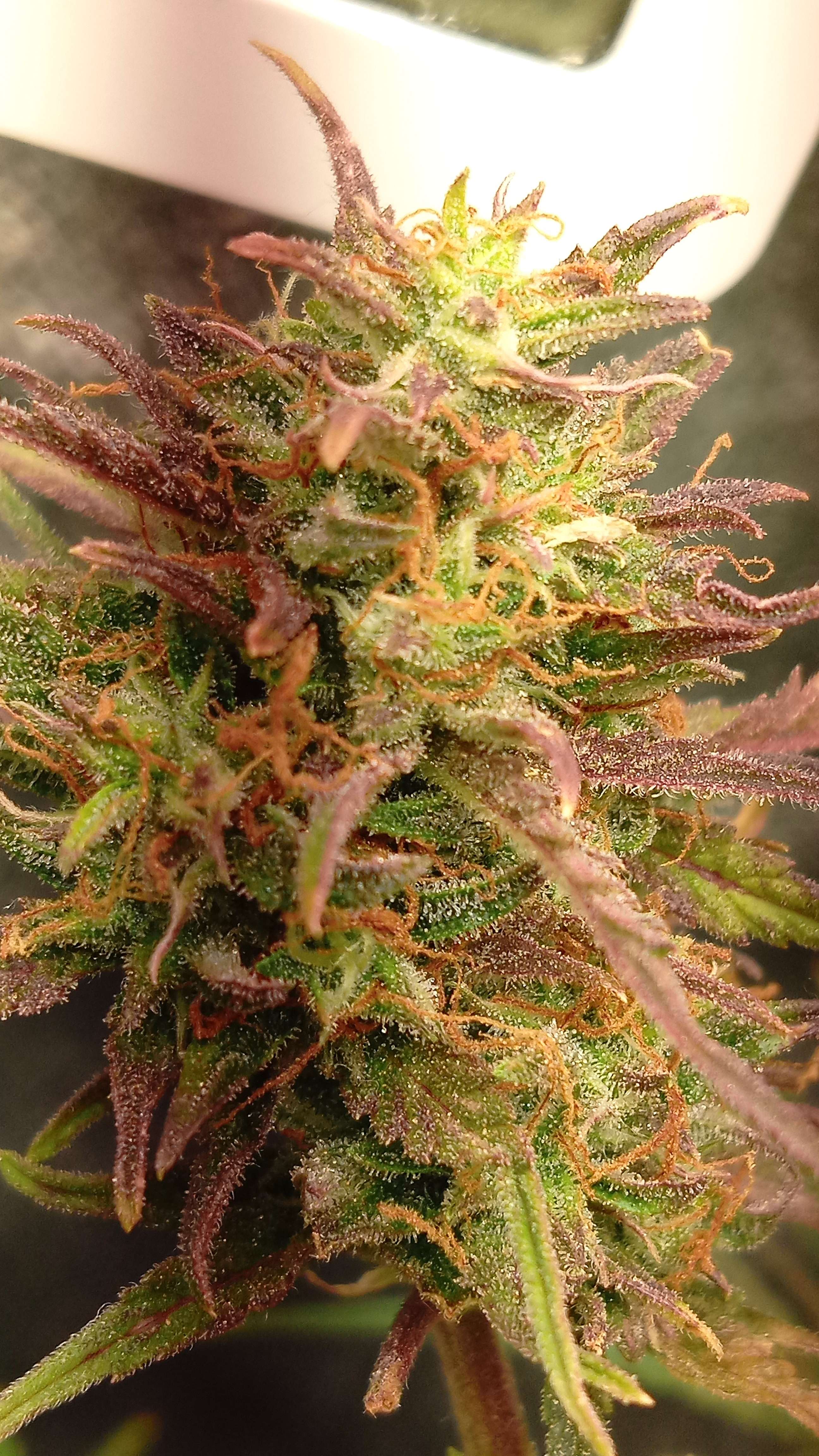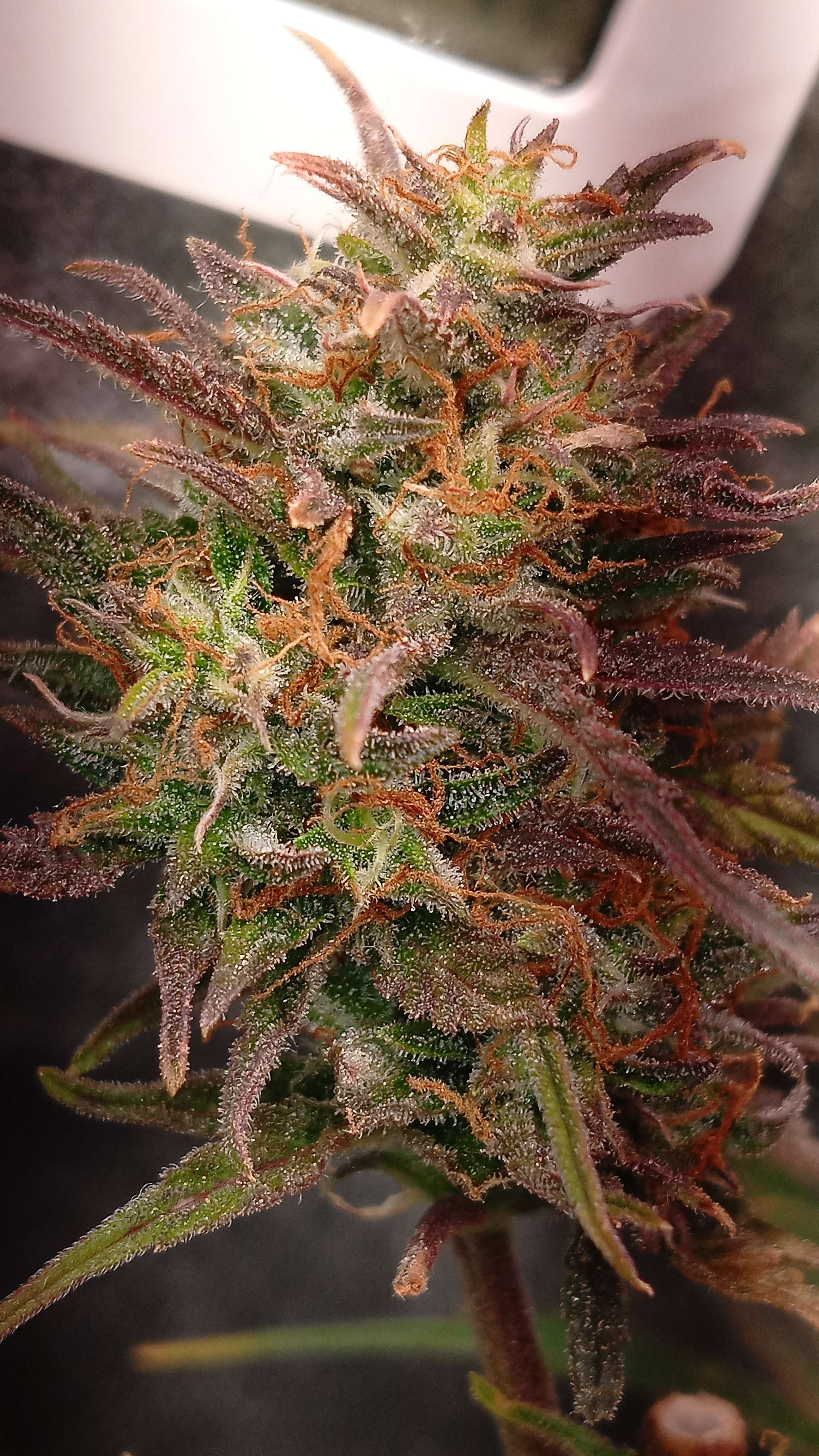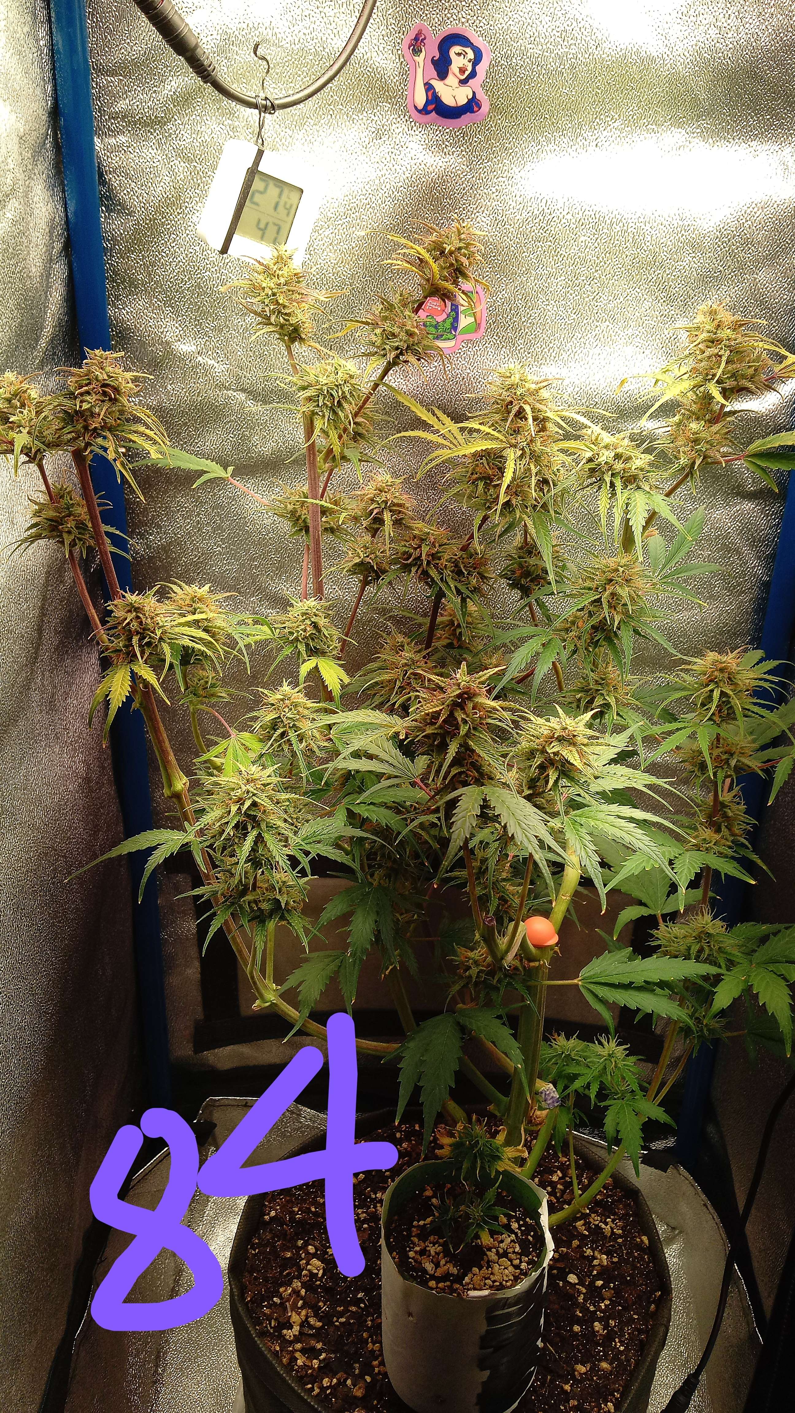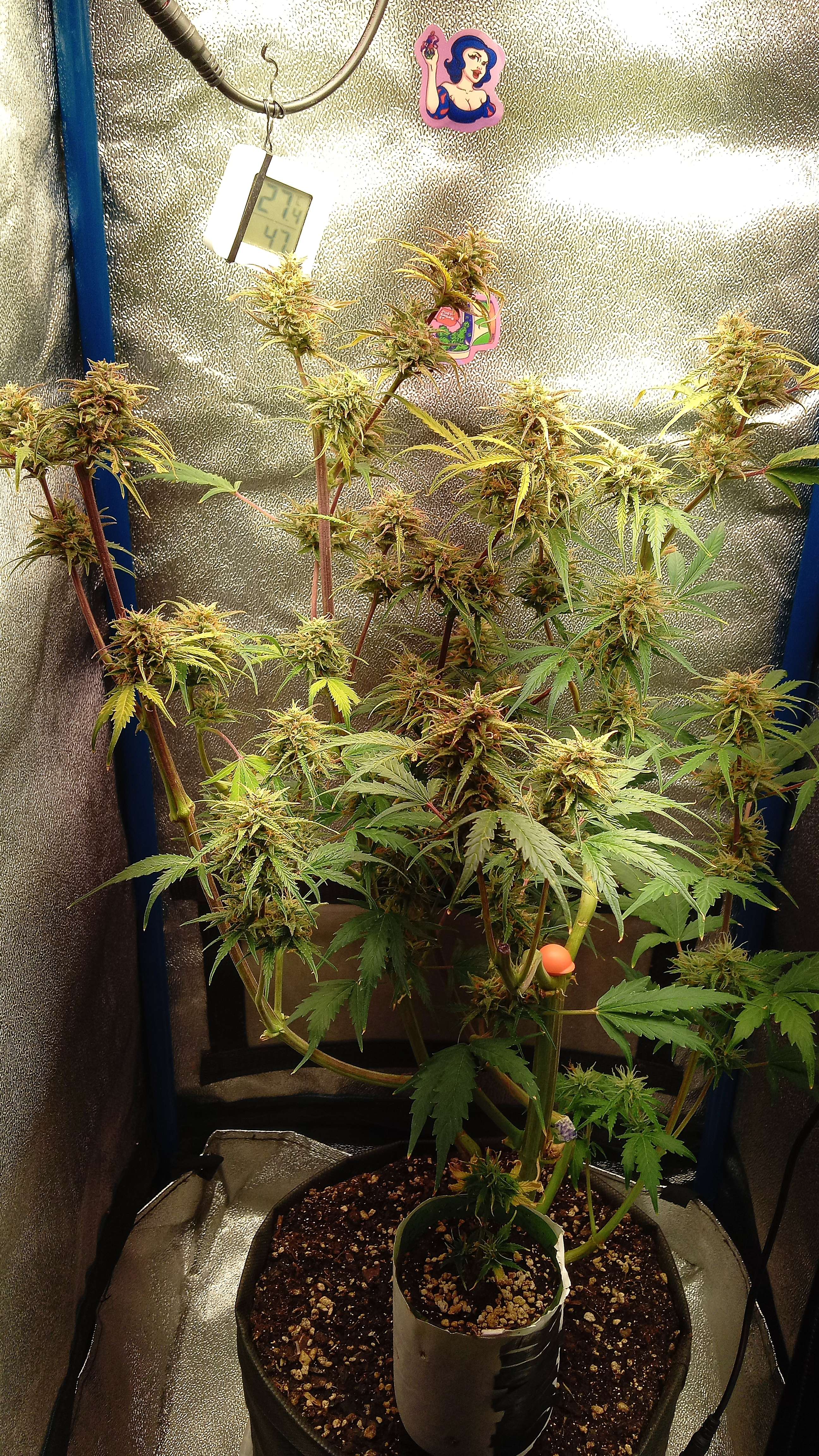 Привет 👋 народ. Последний, медовый полив растишки.1.3 литра. Без дренажа. Горшок влажный и тяжёлый. Нормально.Приехало УХО.🤣🤣🤣.Пару-тройку дней для растихи, заодно и мониторинг температуры и влажности, для следующего грова. Ну и соответственно трихомы темнеют.