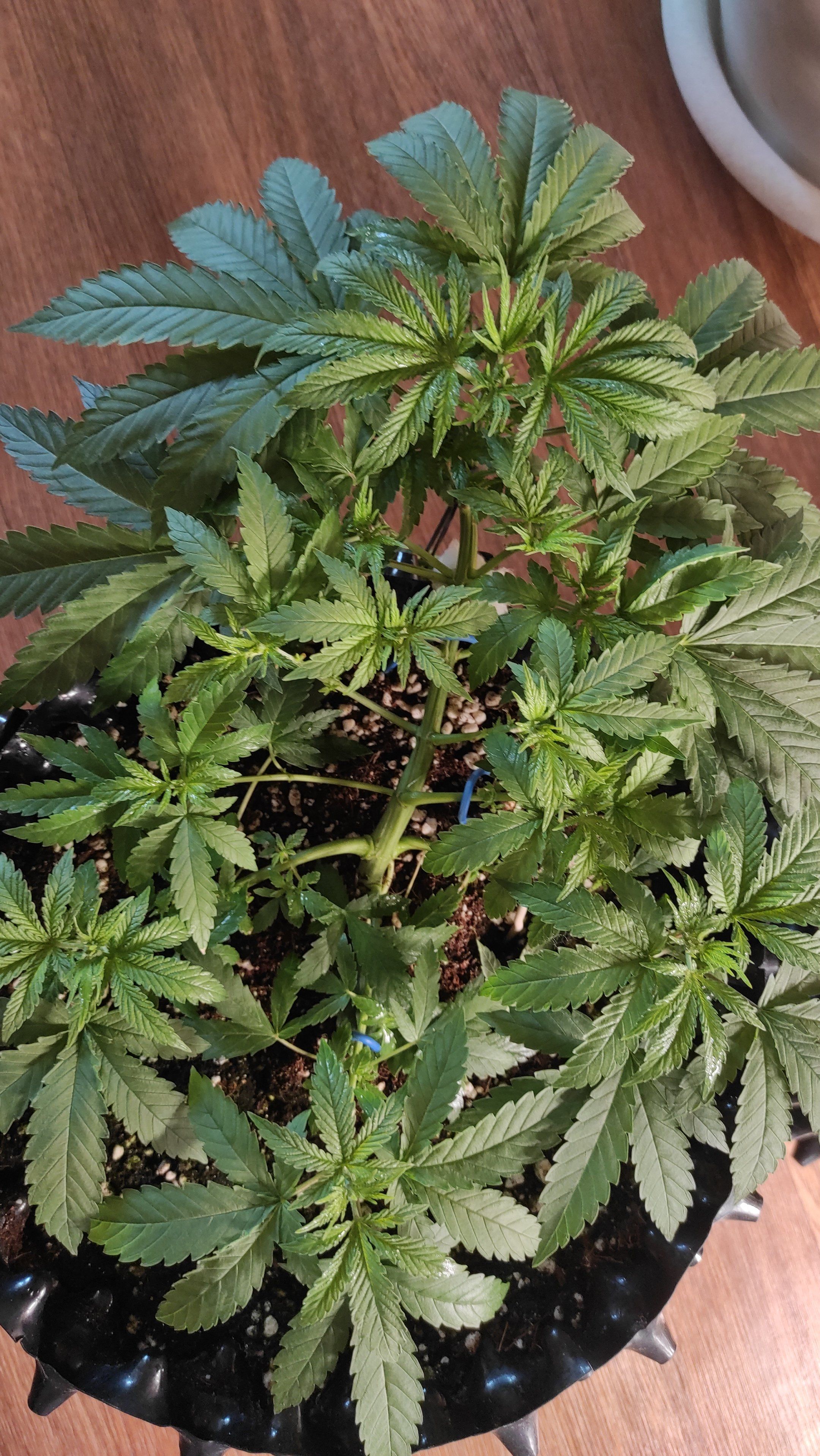 Растянул девочек по всей длине горшка, уложил ствол каждой под 90 градусов для равномерного заполнения пространства
