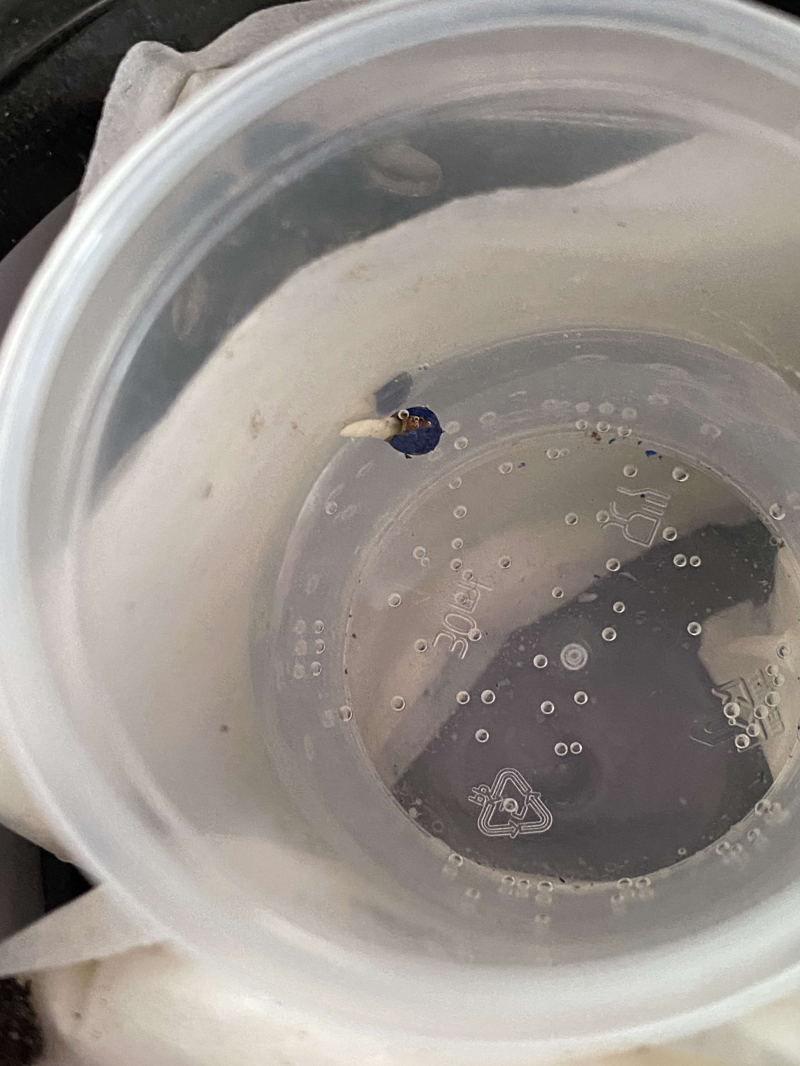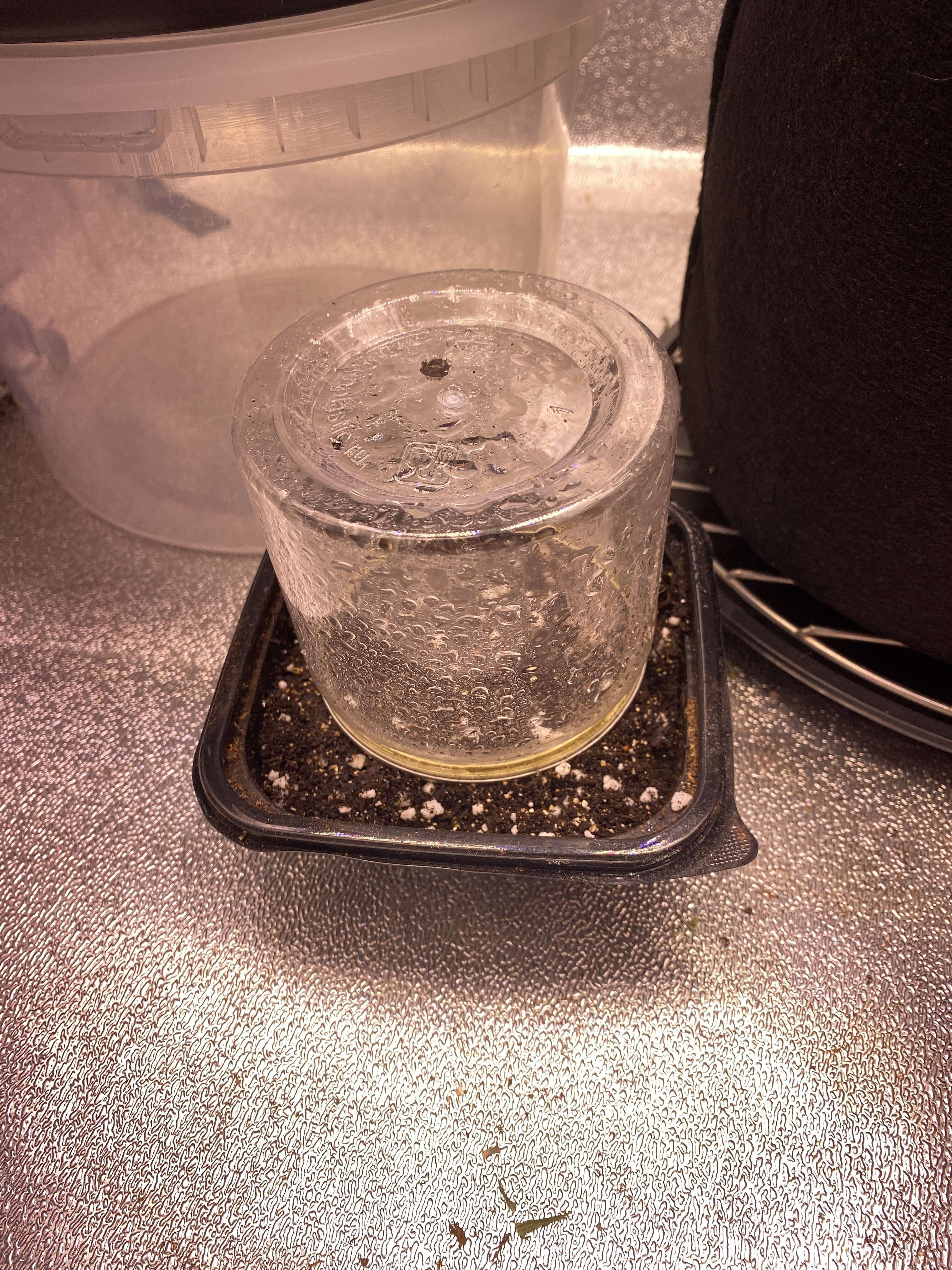 В новой попытке все более правильно. ...только убери (!!!) банку - она там сгорит, от жары и влажности. Не надо ростку баню. В стаканчиках делают дырки, чтобы была вентиляция и газообмен.