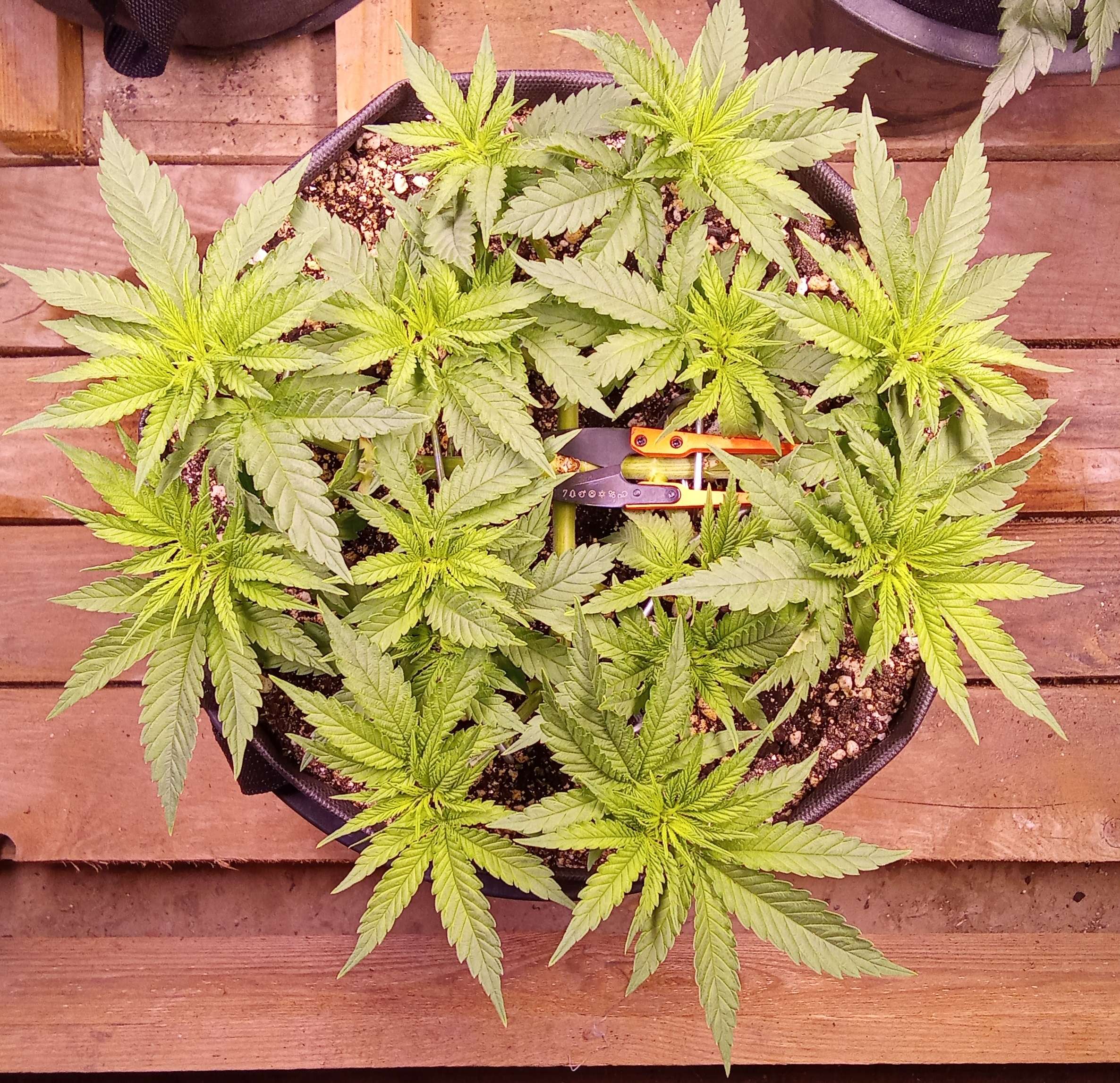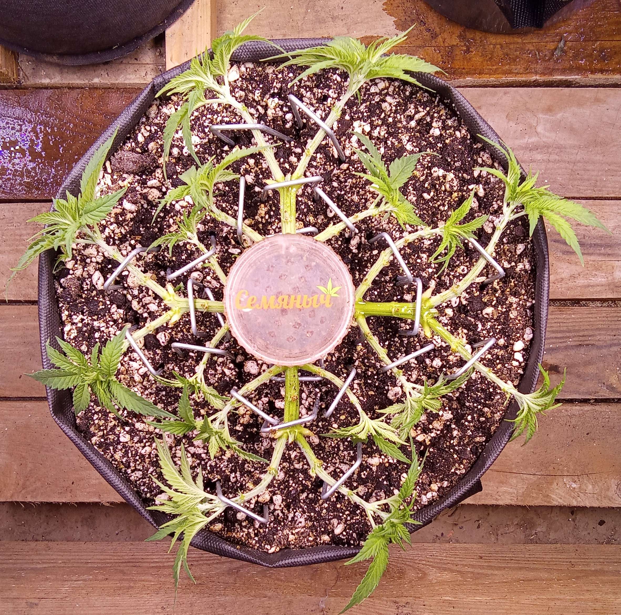 На этой неделе дал первую порцию удобрения: 1мл на 1л Grow; 0,5мл на 1л Bloom и 2мл на 1л Micro. Может в принципе и не обязательно, но решил всё-таки чутка подкормить) В остальном, все, как раньше - дефолиация и гнём и мнём и пригибаем)