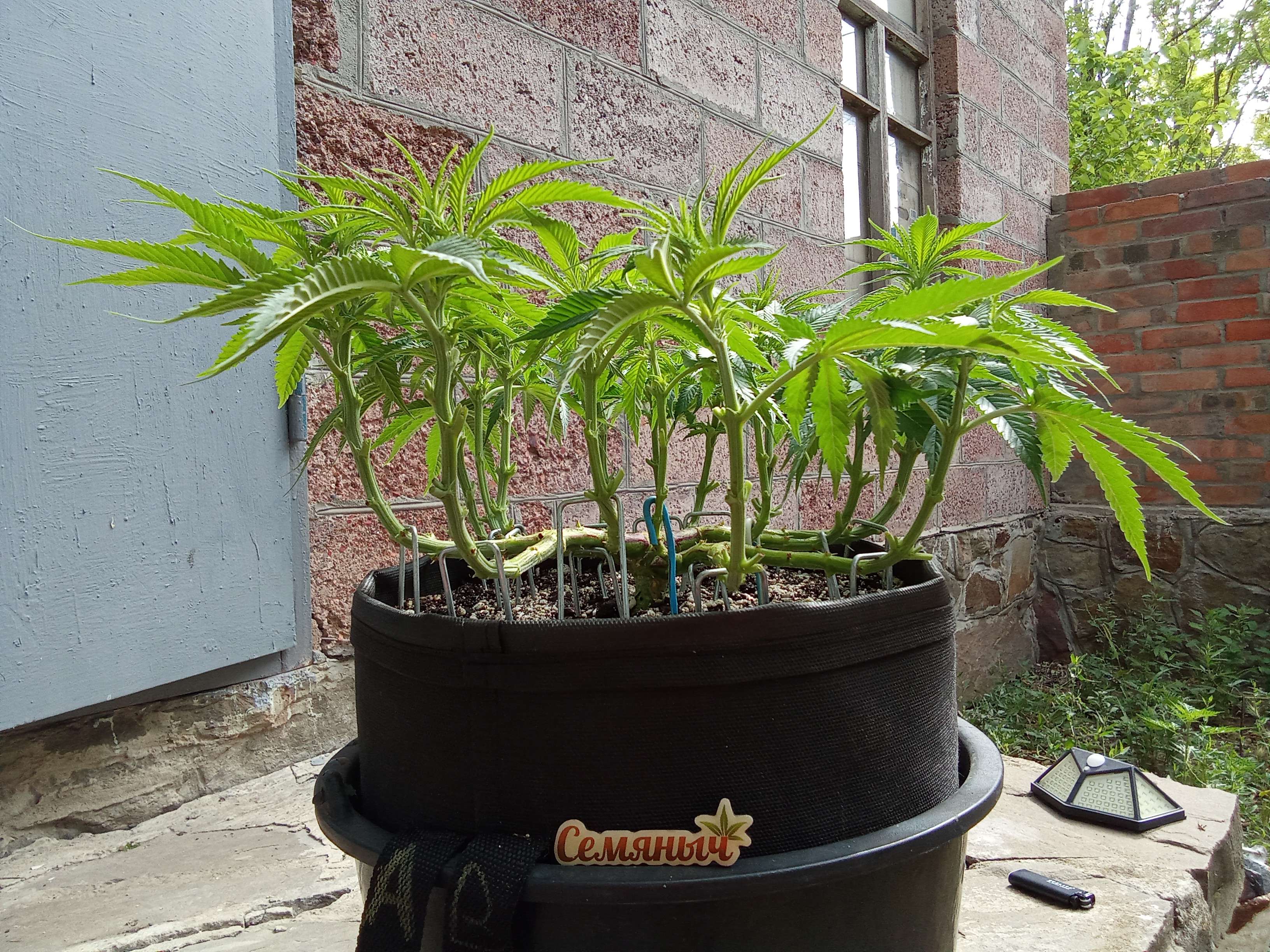 За эту неделю мы поливали растишку 3 раза по 2,5-3 литра, два раза компотом, один раз чистой водой. Температура и влажность в боксе почти оптимальные (разве что ночью малясь холодно (17-19), но не критично). Целую неделю я не трогал кустик, а в конце сделал обрезку (см. фото), и в принципе, мы готовы к цветению))) На фото нам 56 дней, до и после обрезки. Последнее фото - общий вид бокса)